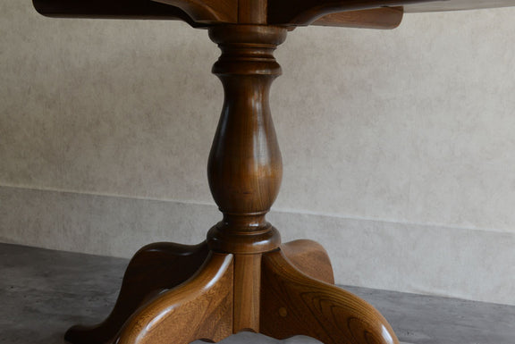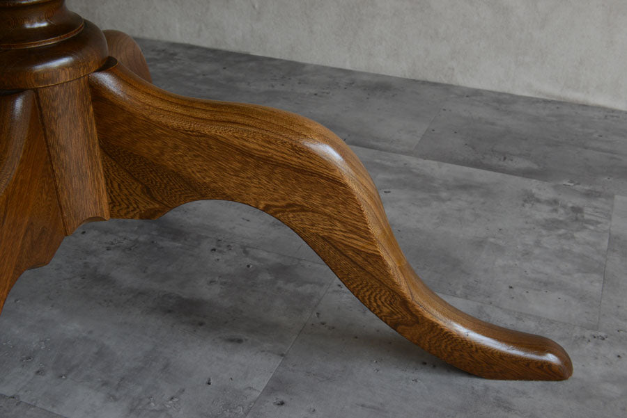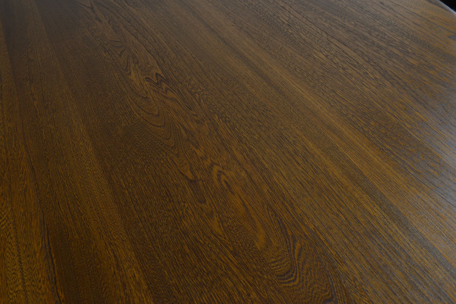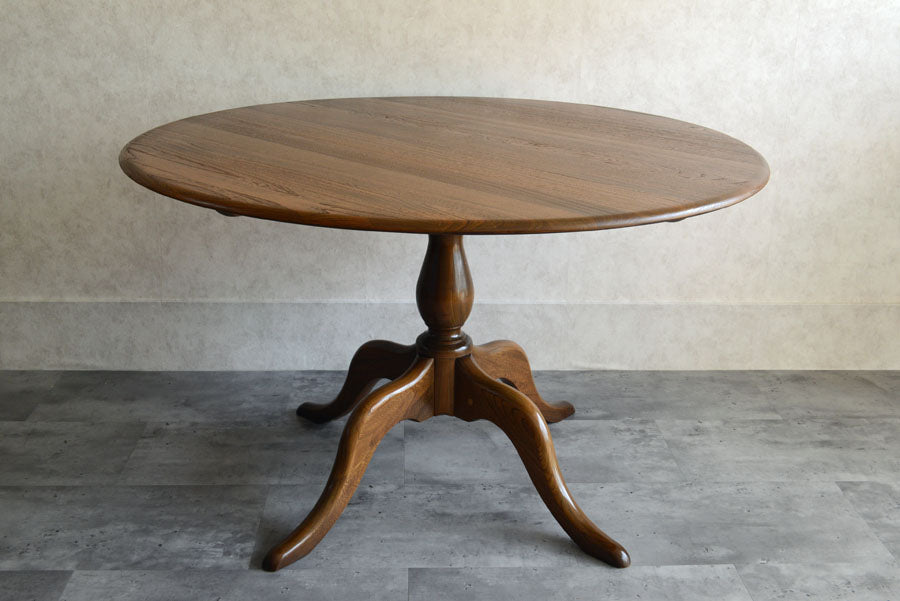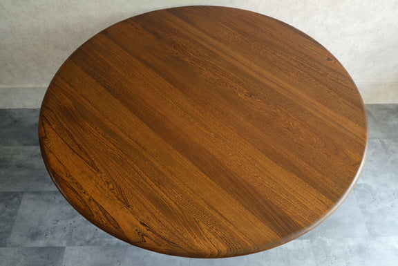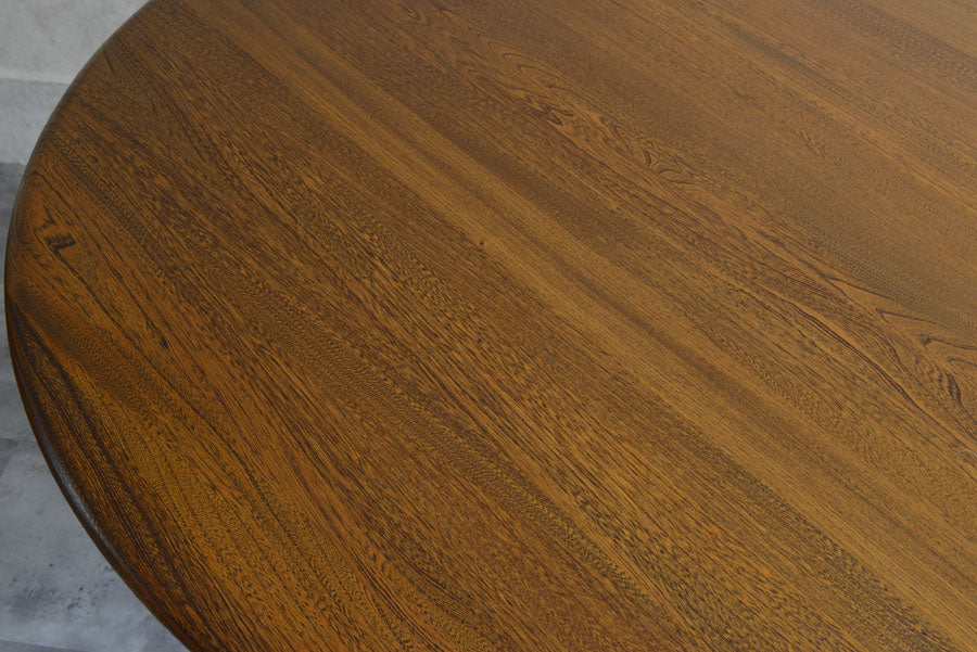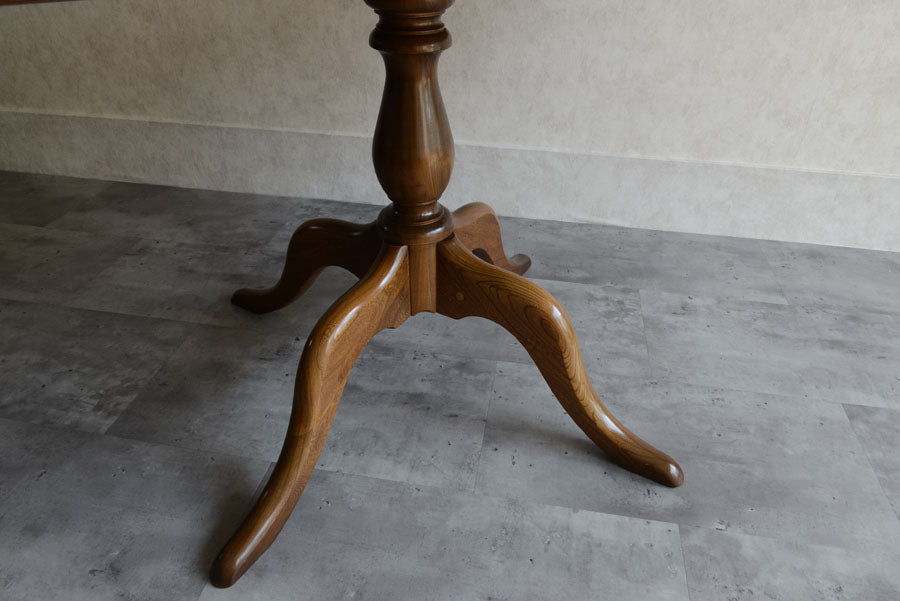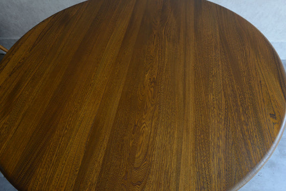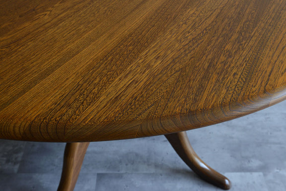 無垢のエルム材の木目が素晴らしいラウンドテーブル。