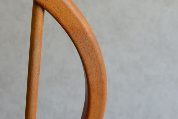 ブナの曲木加工と座面のエルム材の木目が美しいチェアです。