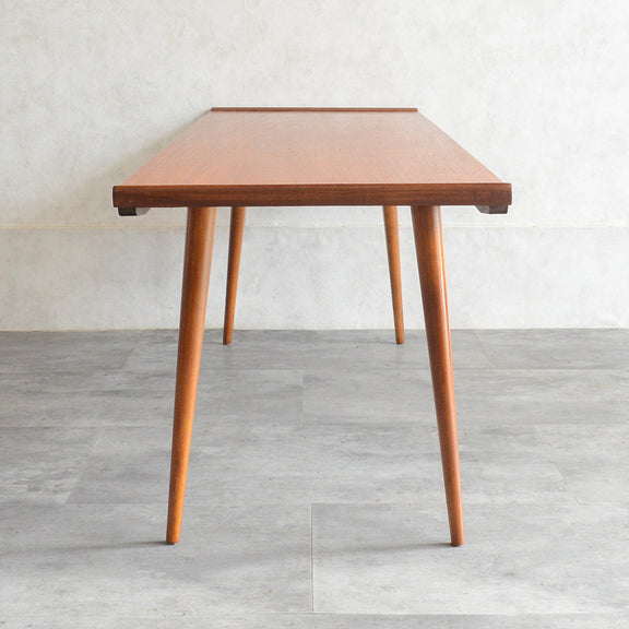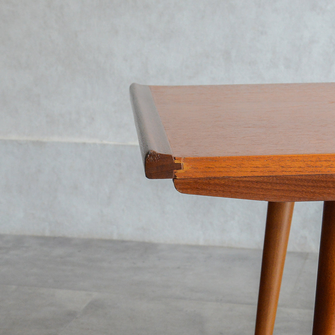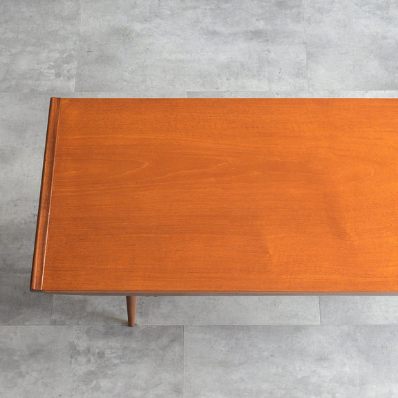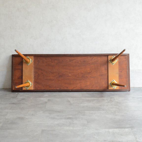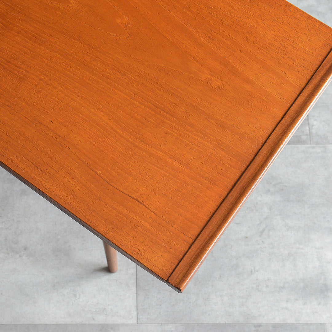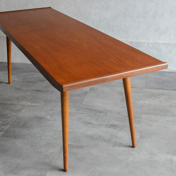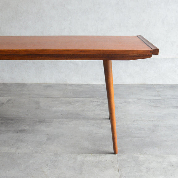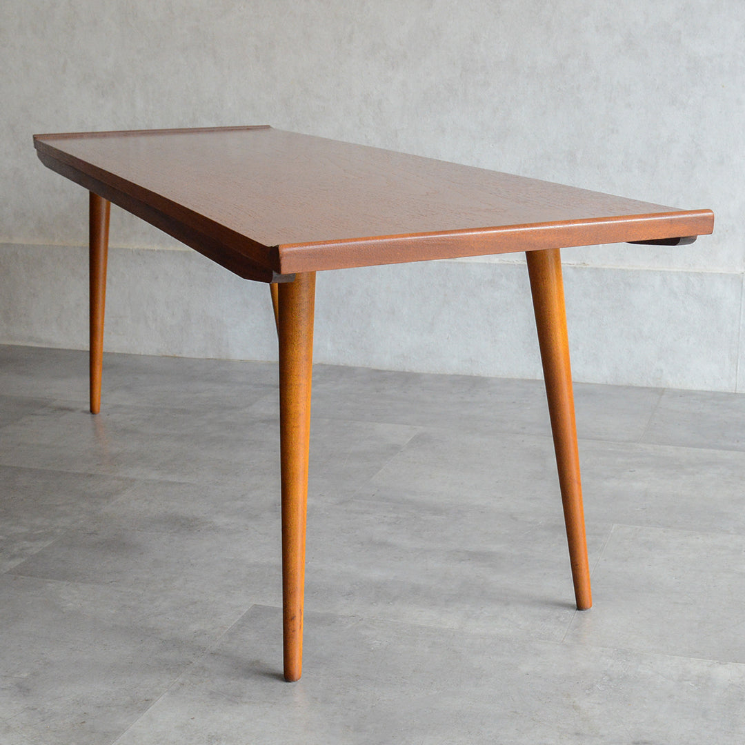 天板のチークの木目とスリムな丸脚のデザインが美しいセンターテーブル。