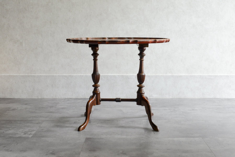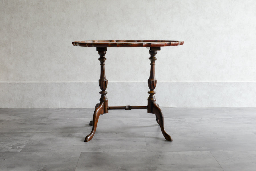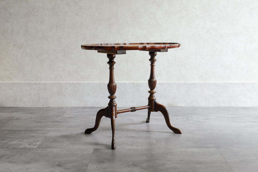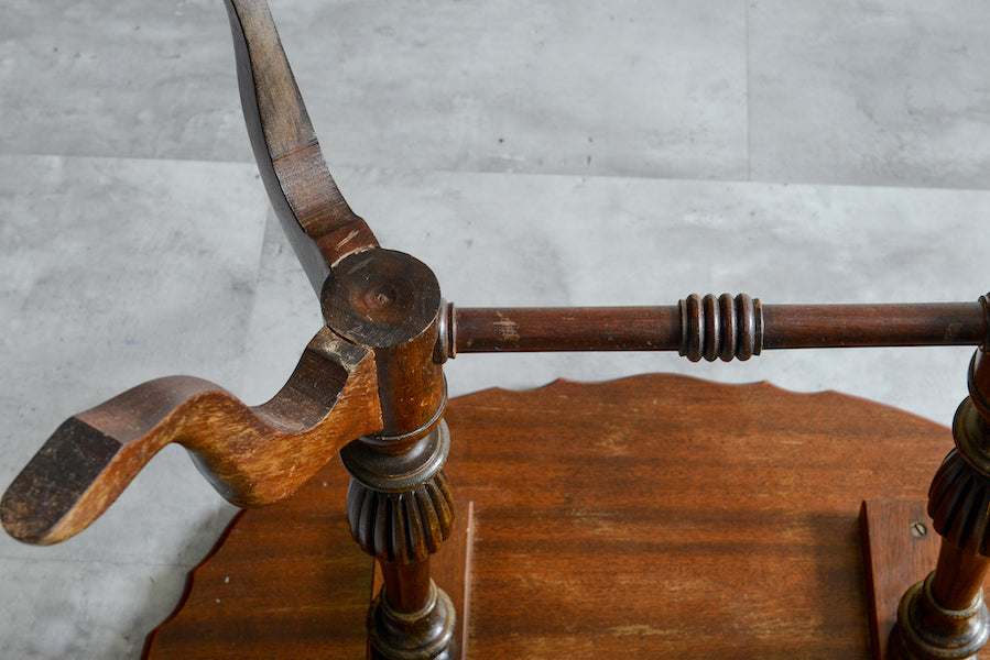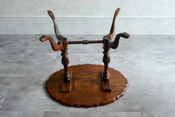 2連のトリポッドの美しい脚部と、経年変化によるウォルナット材の美しい杢目