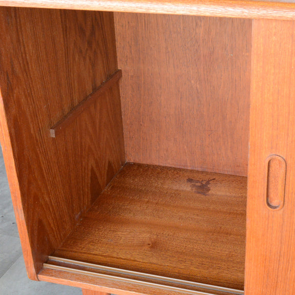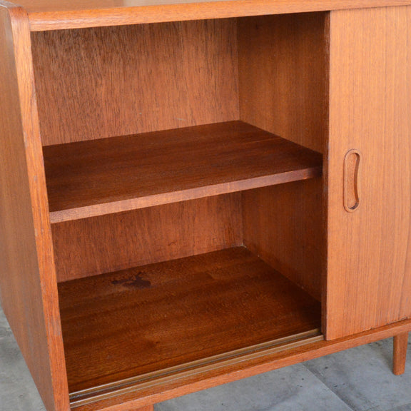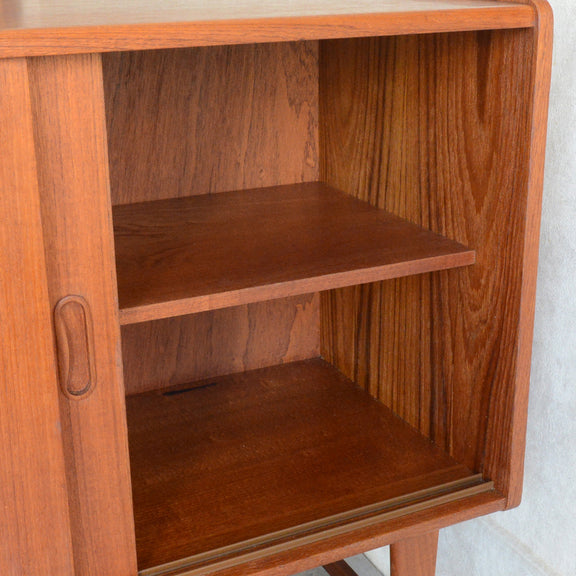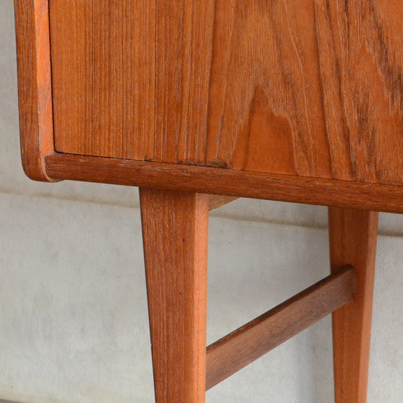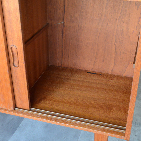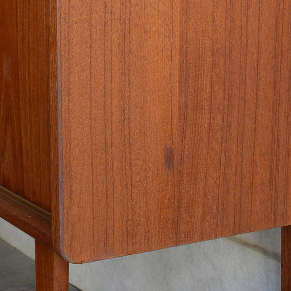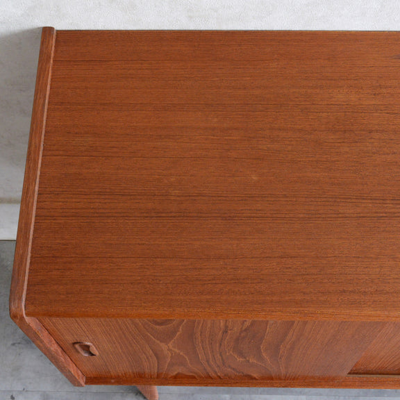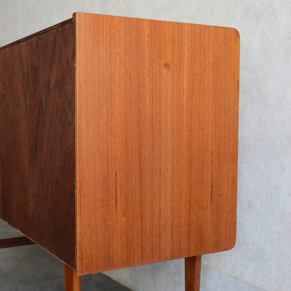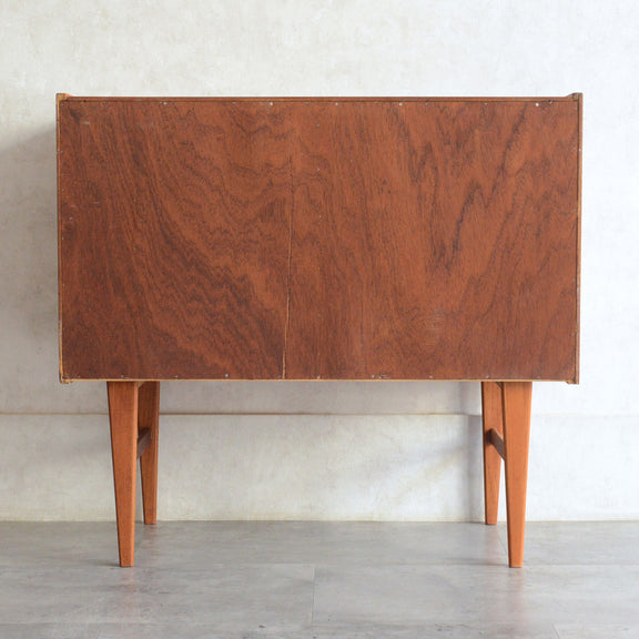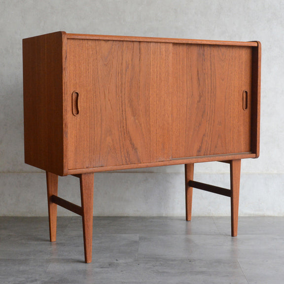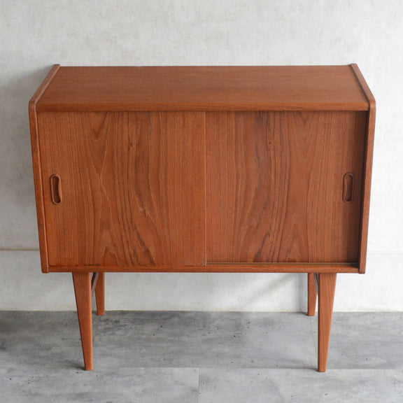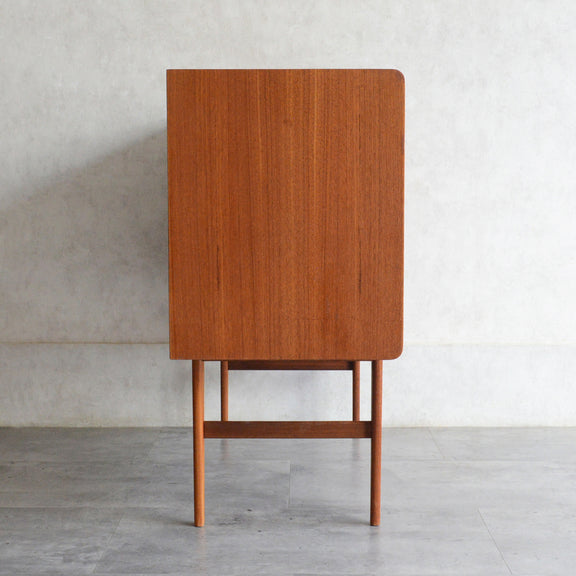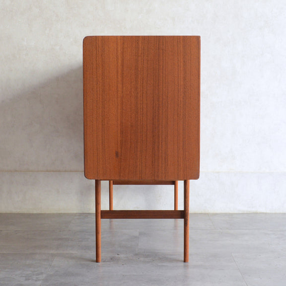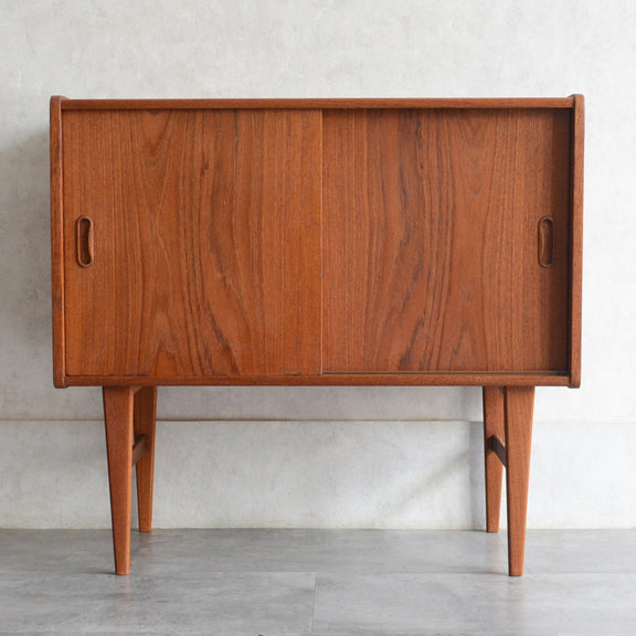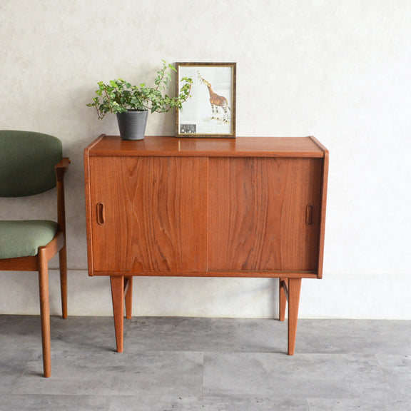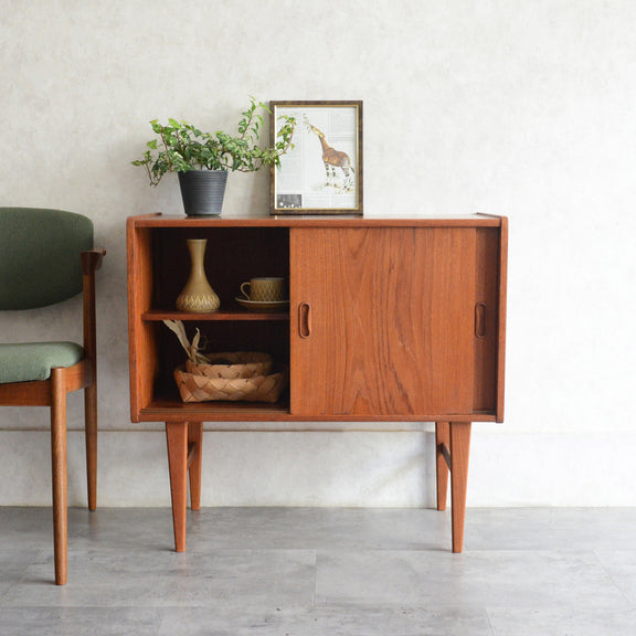 北欧らしい削出しの把手がアクセントとなった、脚部が美しいキャビネット