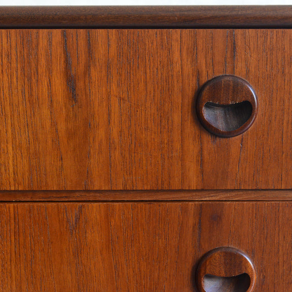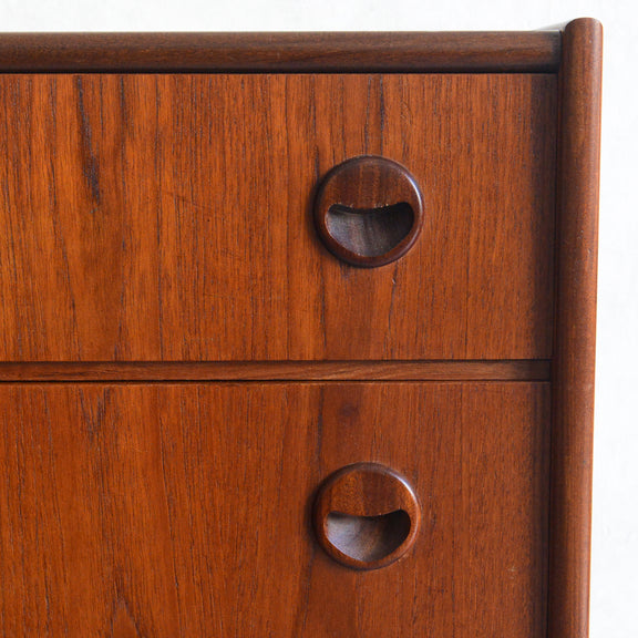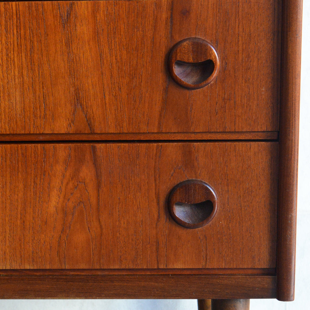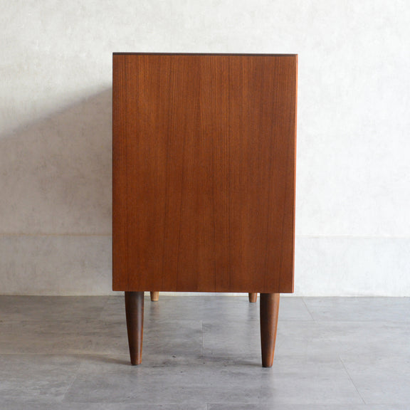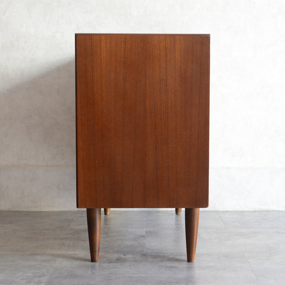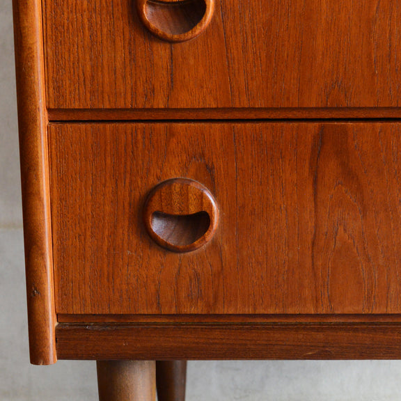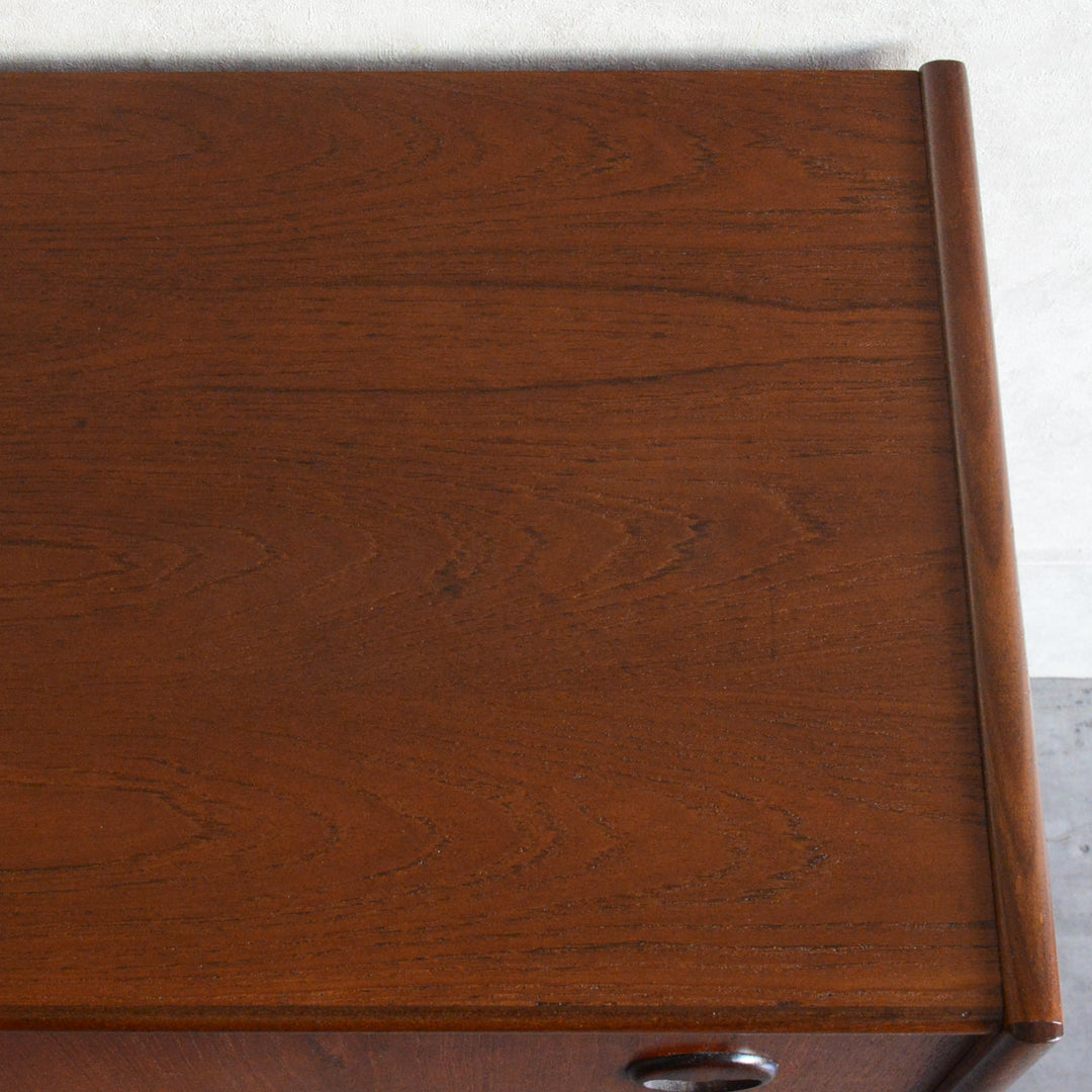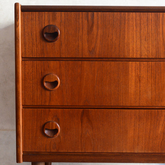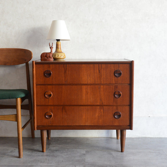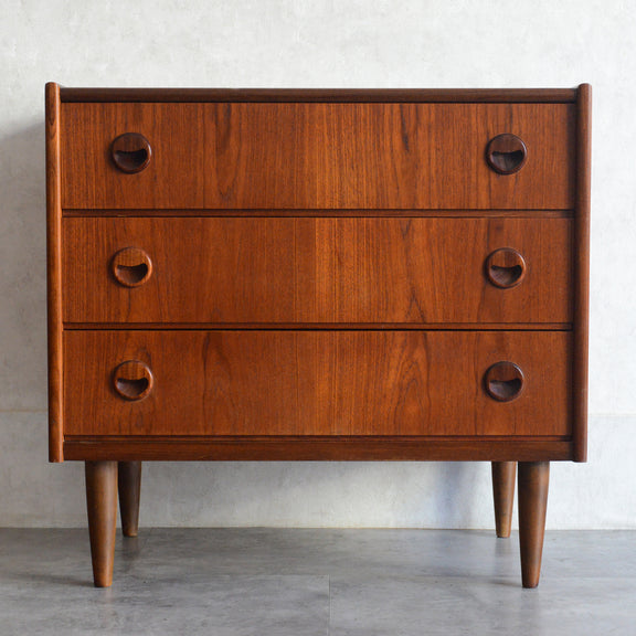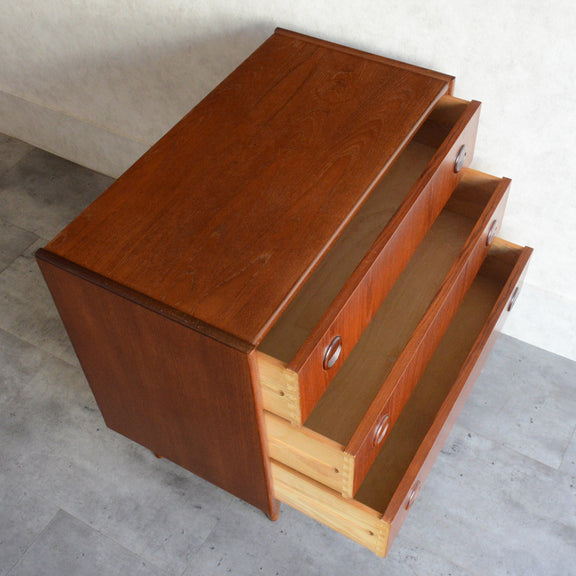 チーク材の濃いめの木目が美しい3段チェスト