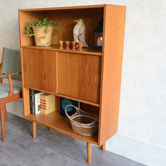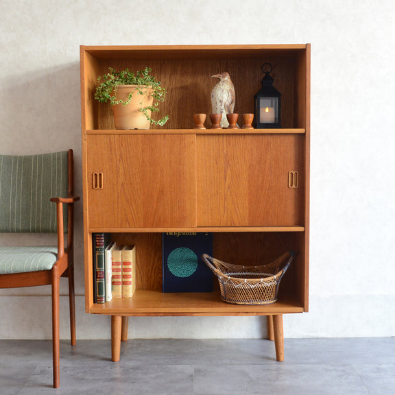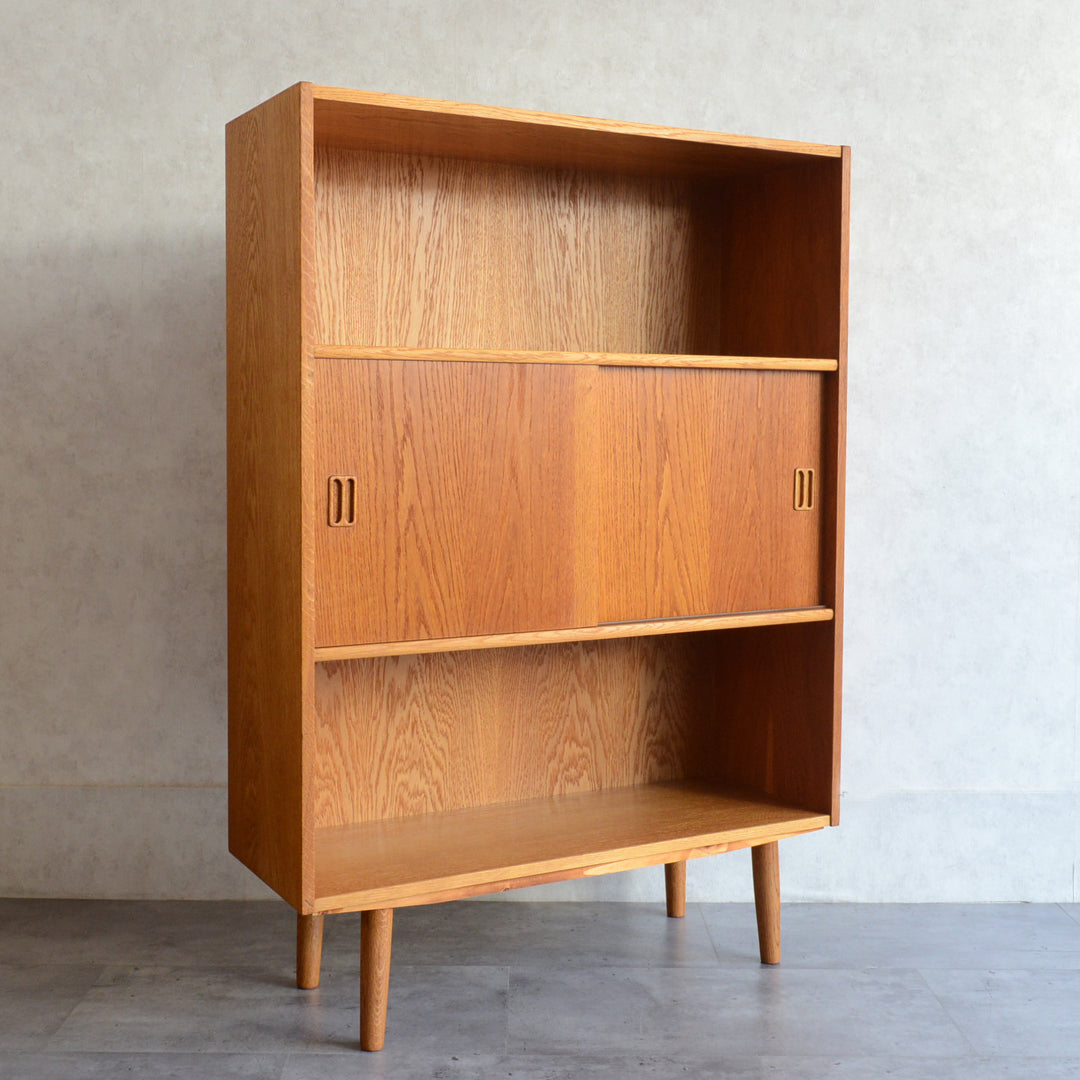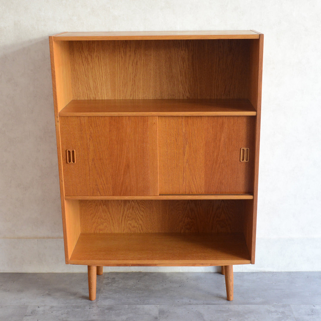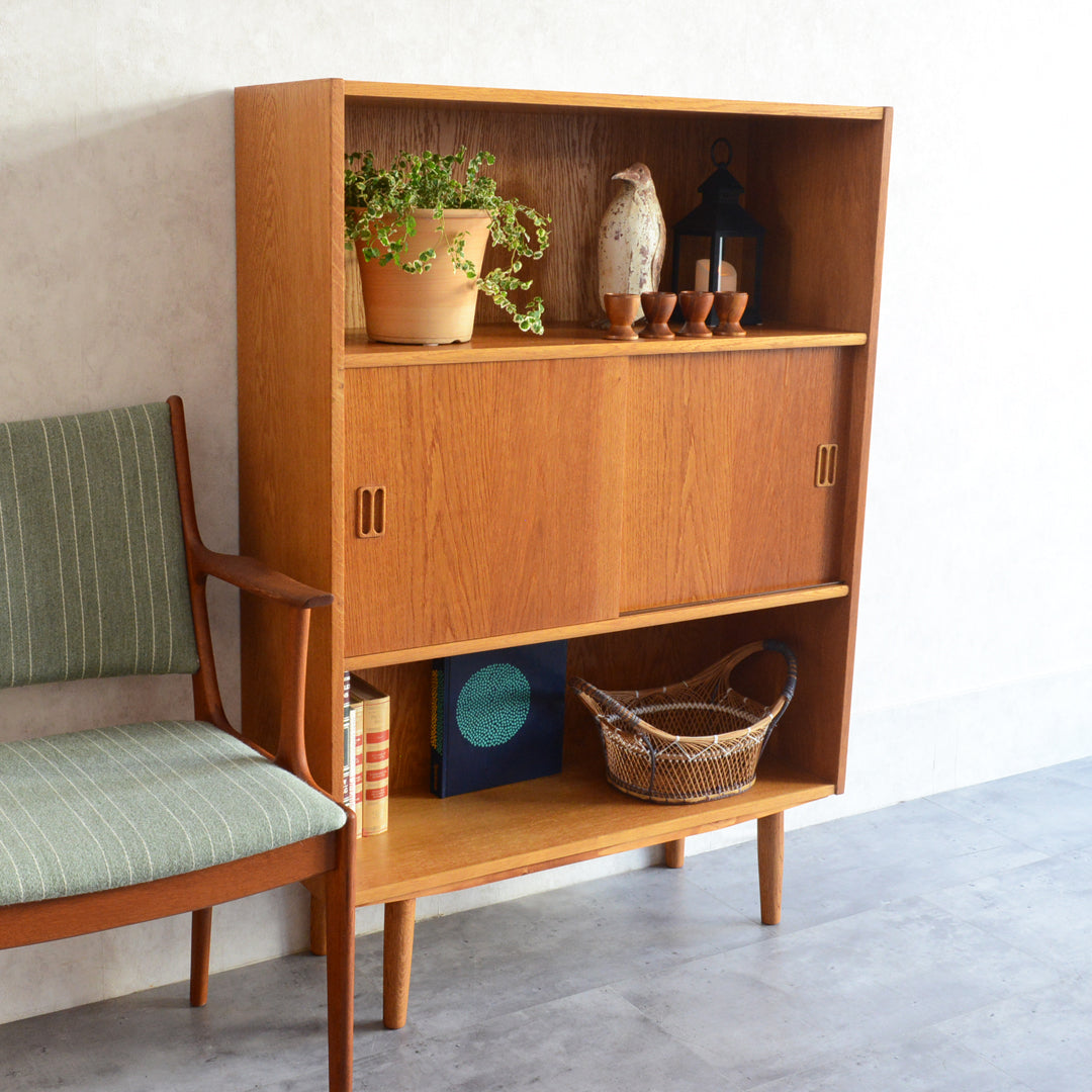 木製扉部分は横方向にスライドで開くタイプなので、奥行スペースがコンパクトな収納家具をお探しの方にもお勧めです。