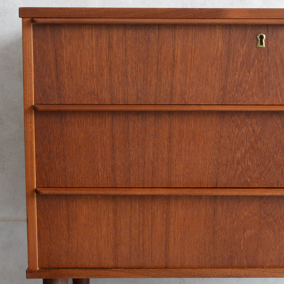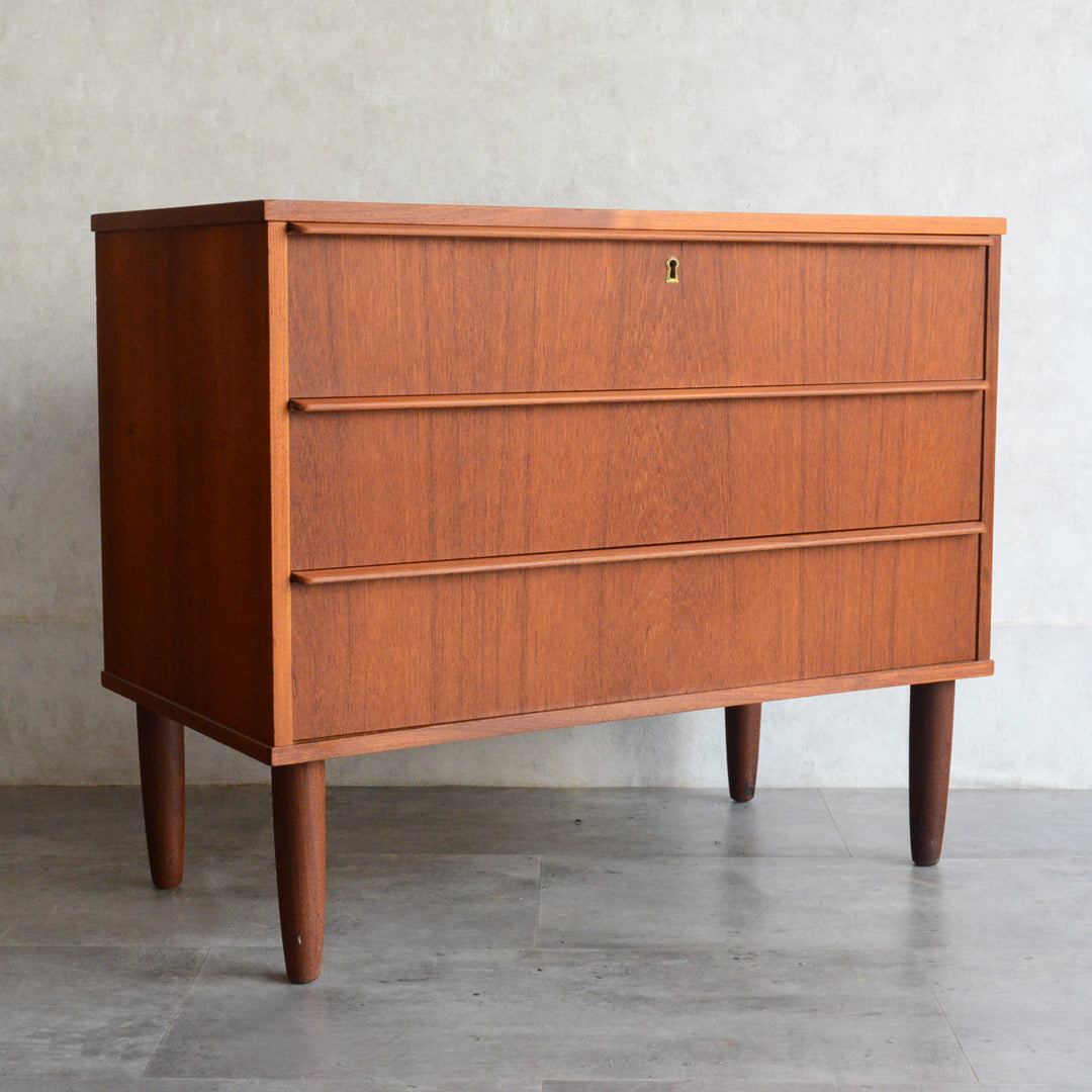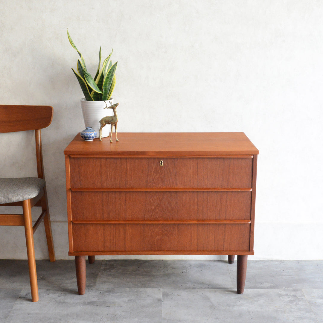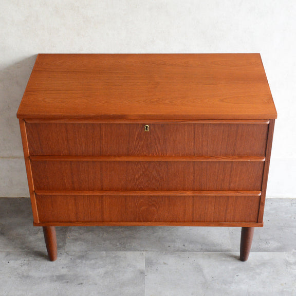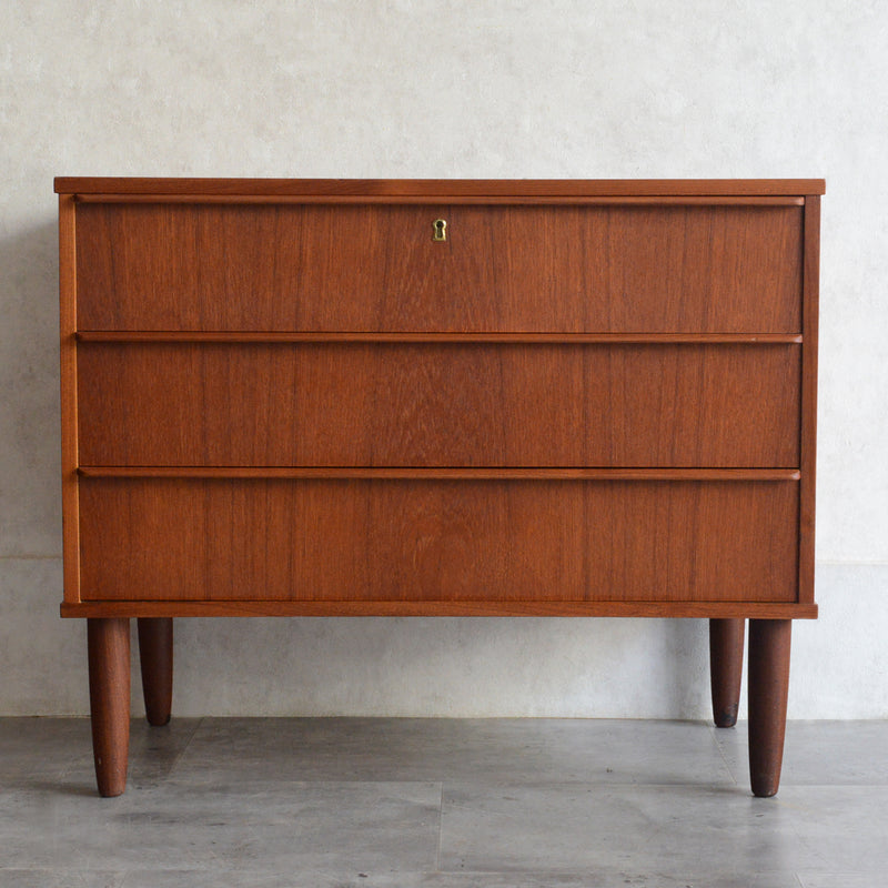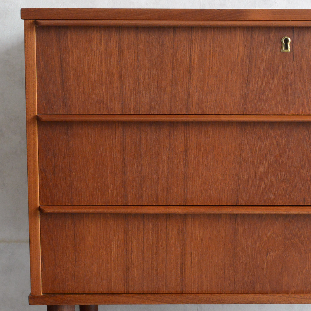 人気の真一文字の把手と鍵穴がアクセントとなっています。無垢のチークで造られたシンプルな真一文字の把手デザインも希少になりつつあります。