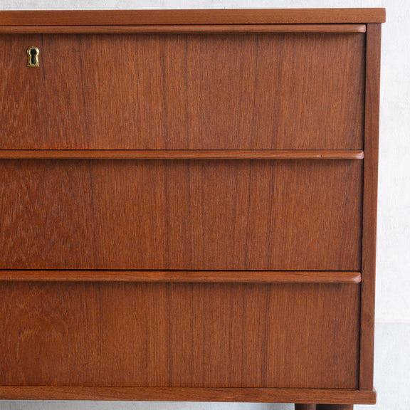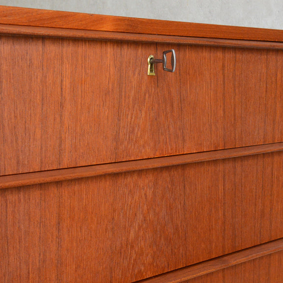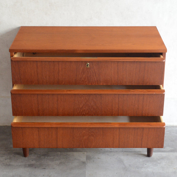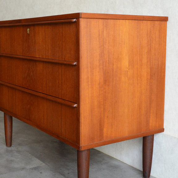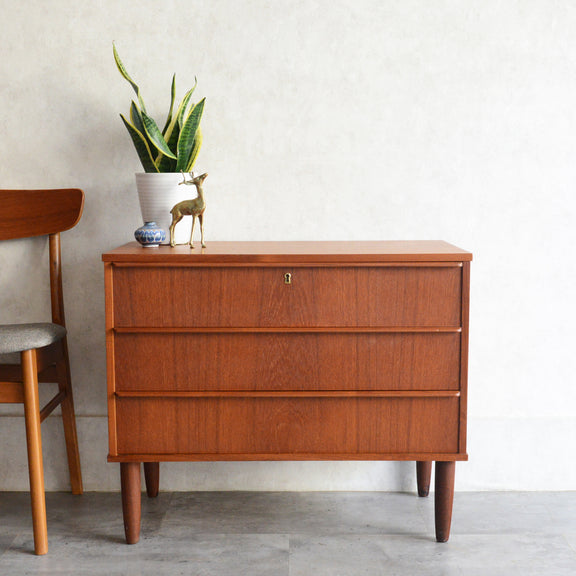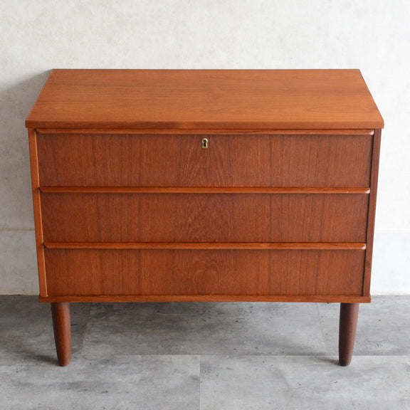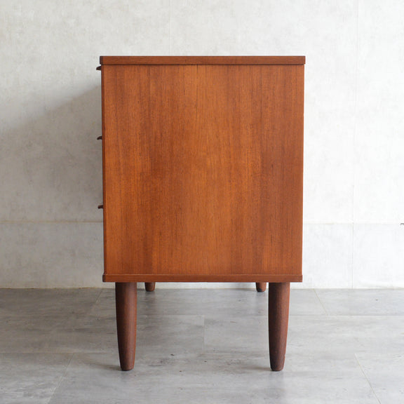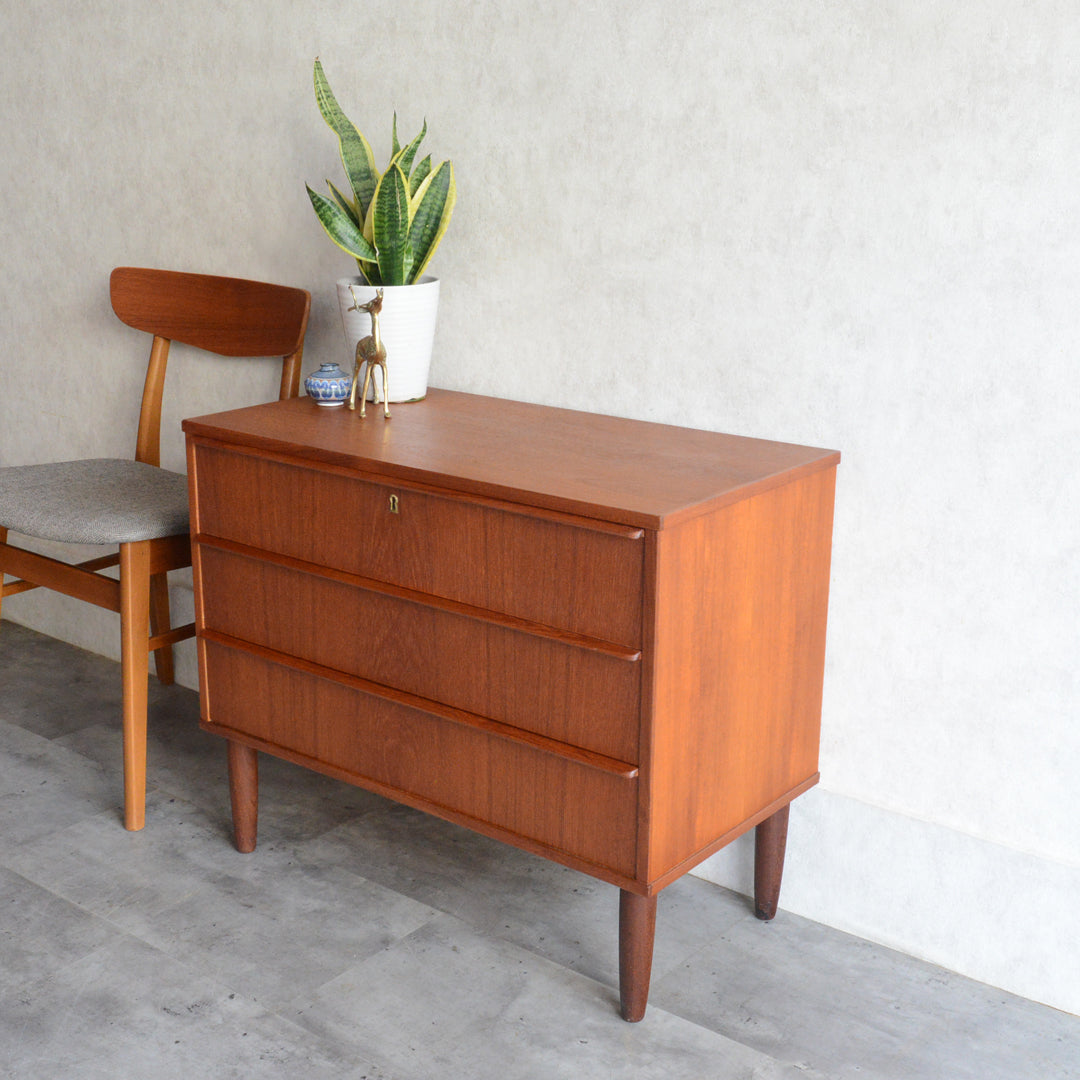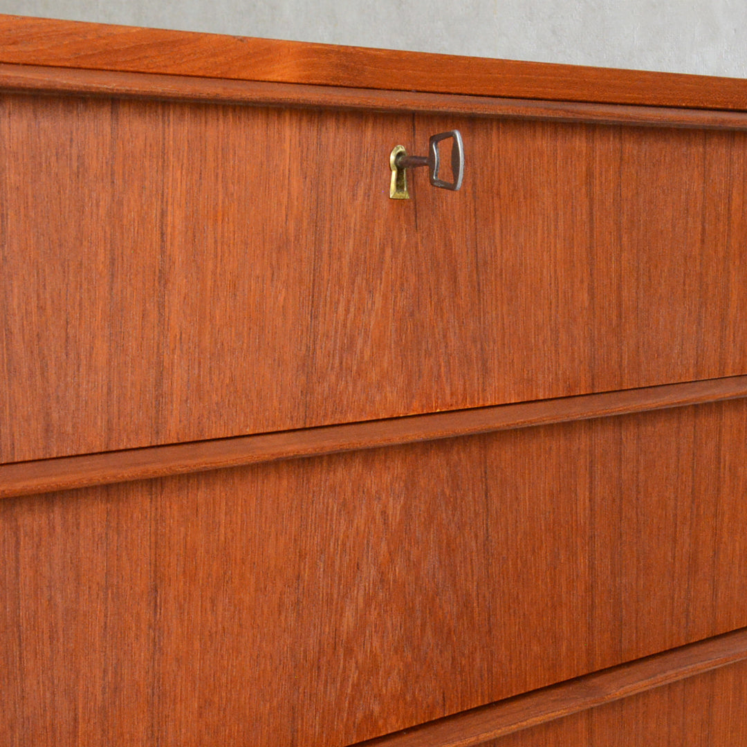 人気の真一文字の把手と鍵穴がアクセントとなっています。無垢のチークで造られたシンプルな真一文字の把手デザインも希少になりつつあります。