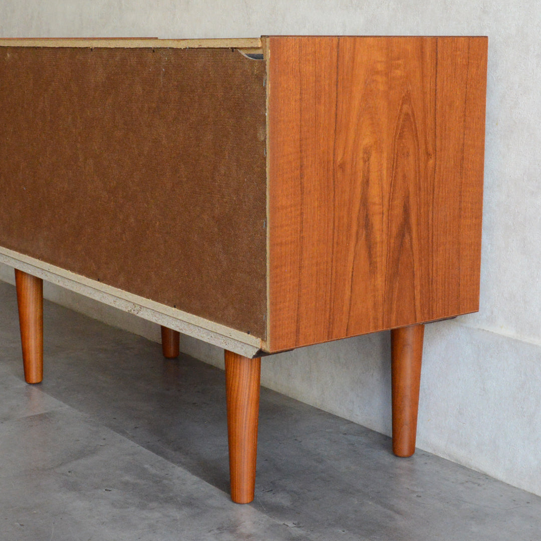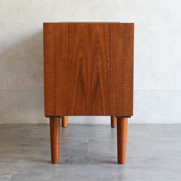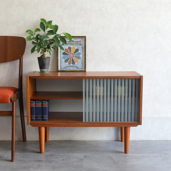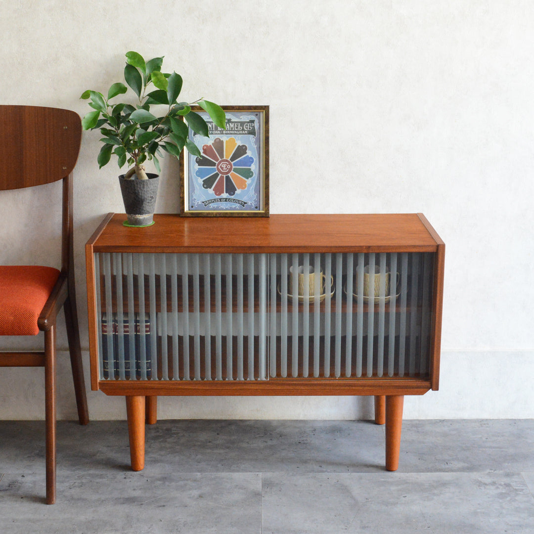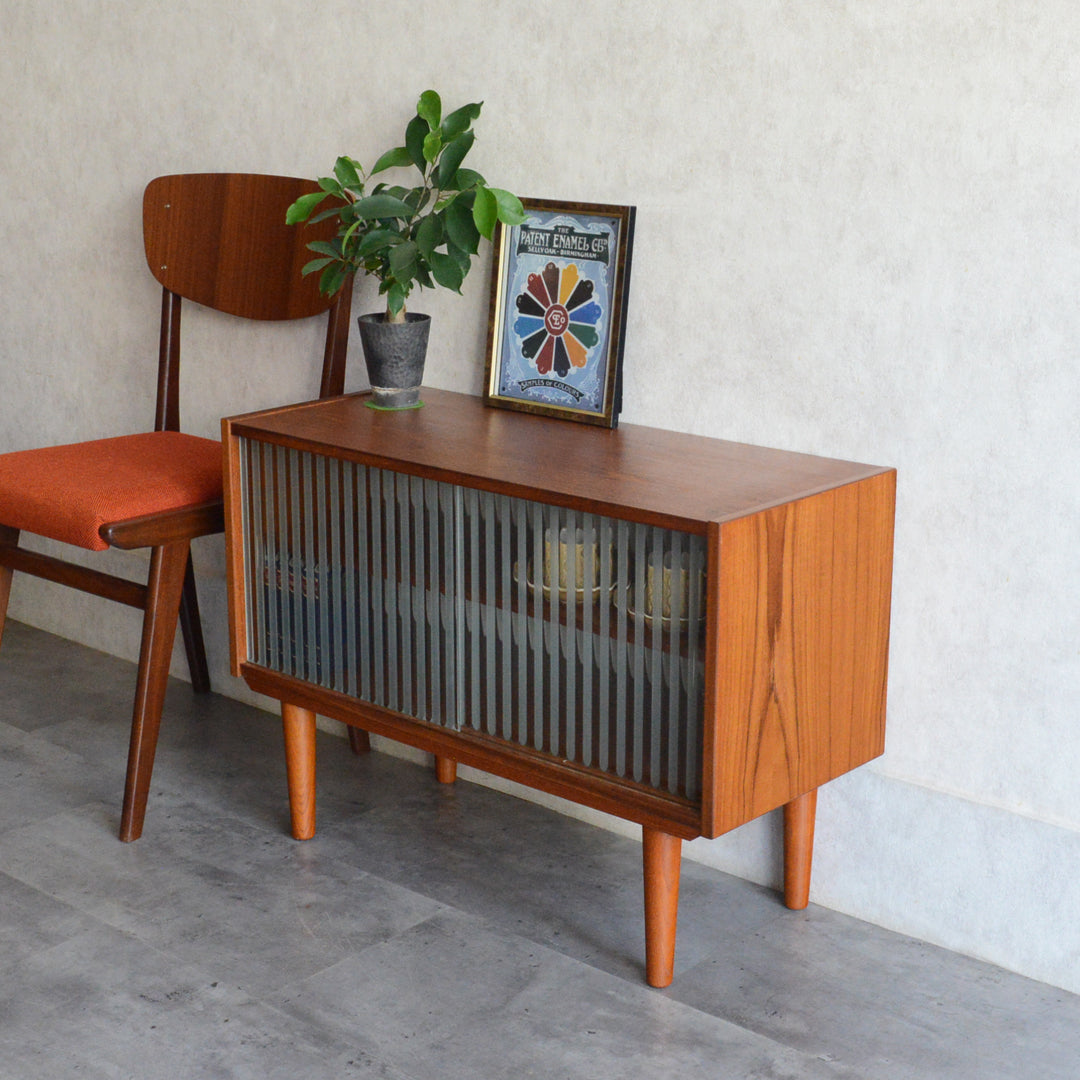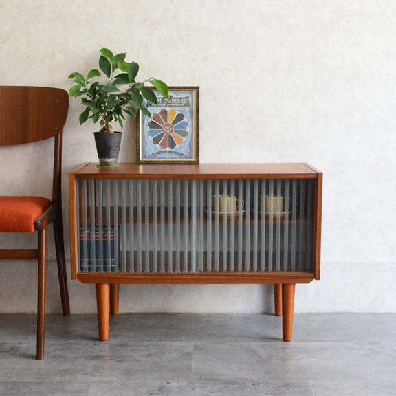 デンマーク ヴィンテージ チーク キャビネット6-77 (ストライプガラス戸付)
