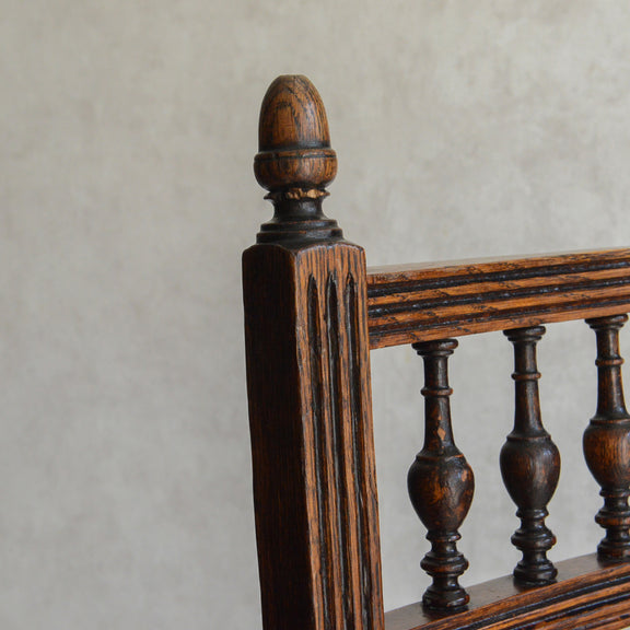 木を回転させて成形された柱が並ぶ繊細な背のデザインが印象的です。オブジェのような佇まいは置いているだけで絵になる存在です。