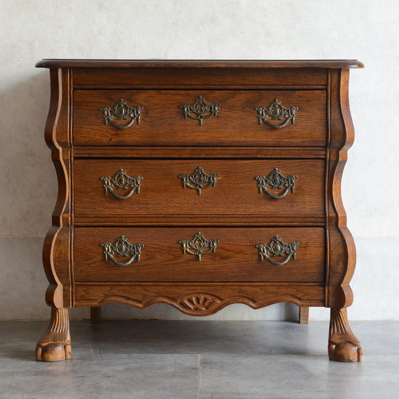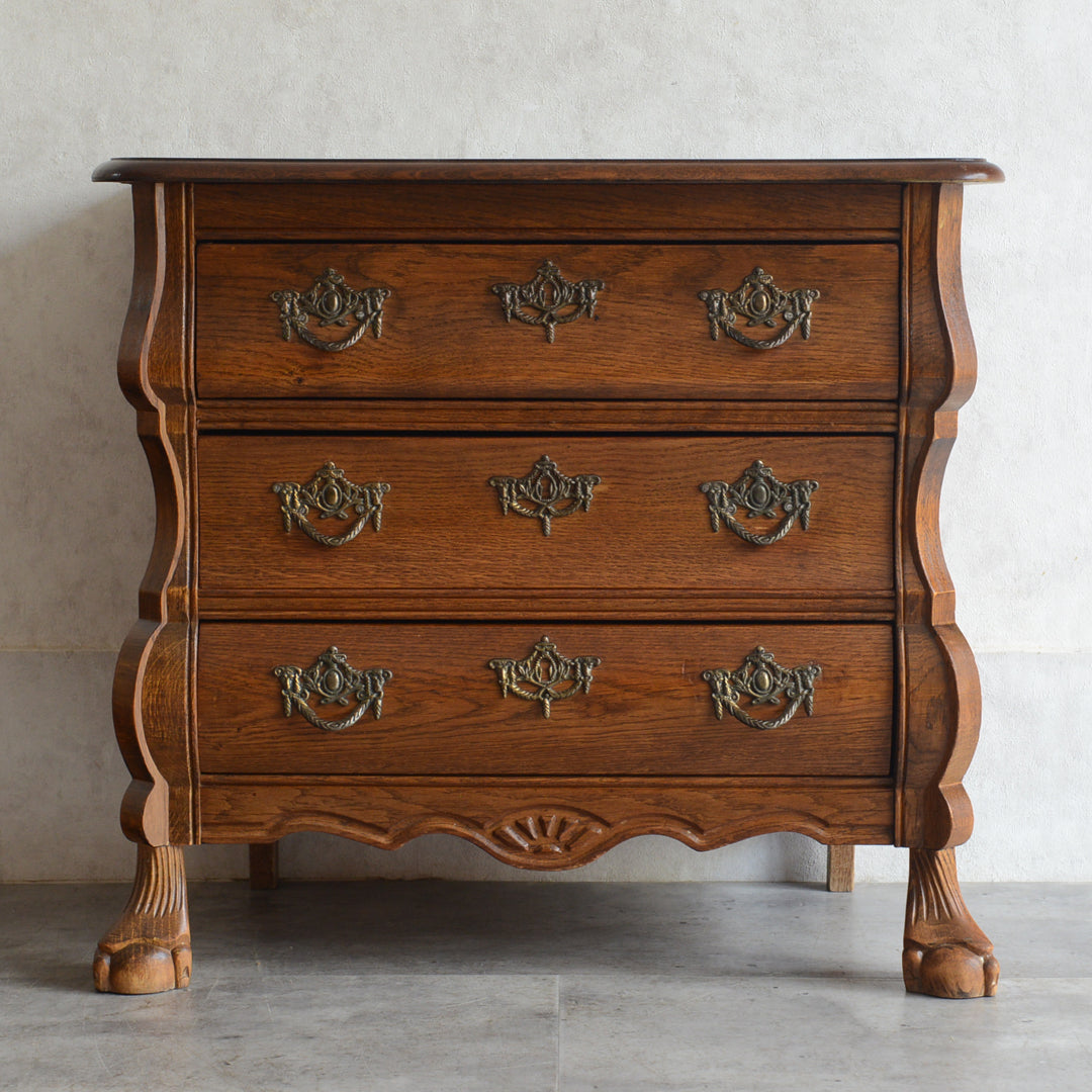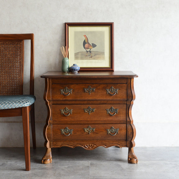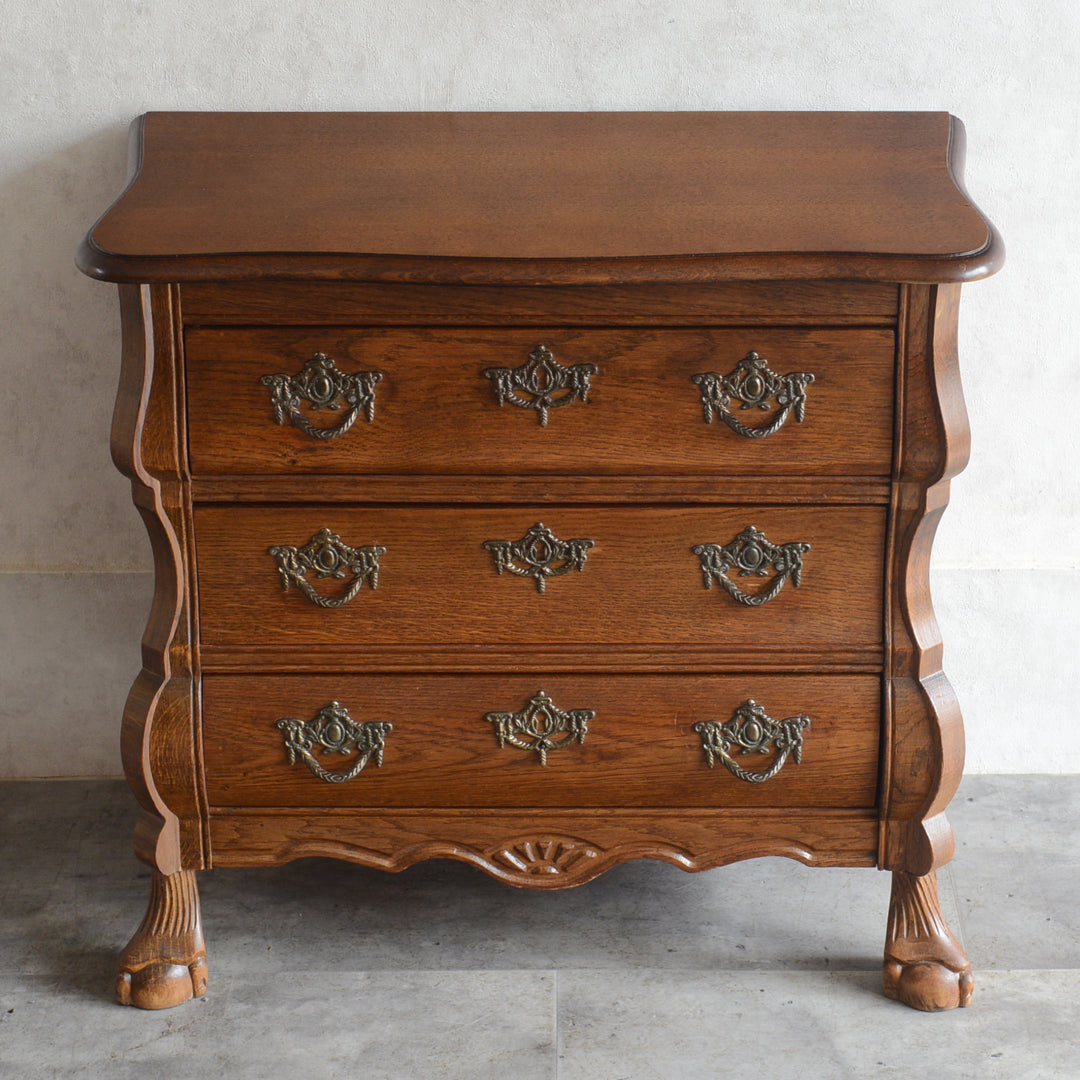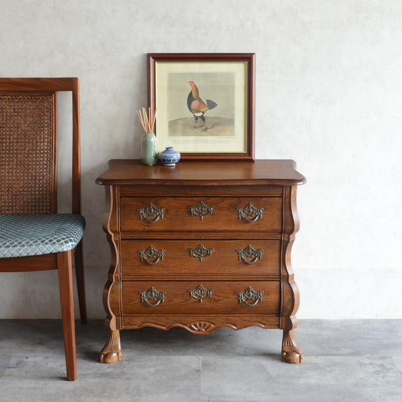 曲線を基調としたフォルム・幸運を呼ぶといわれるクロウ&ボウルの脚部・伝統的な金具把手、優雅で品のあるクラシックデザイン。