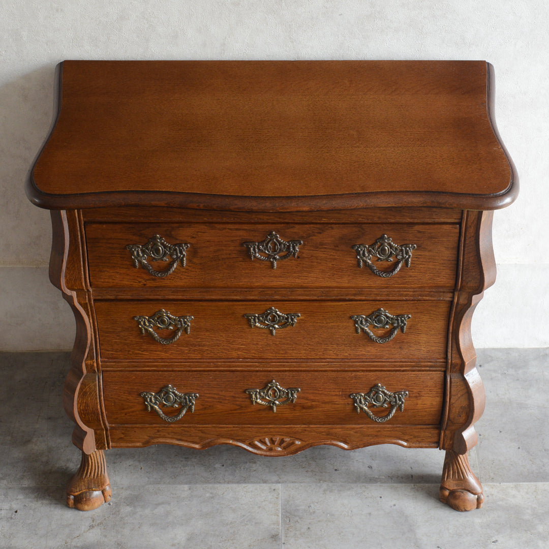 ベルギーからやって来たコンパクトなオーク材の3段チェスト。