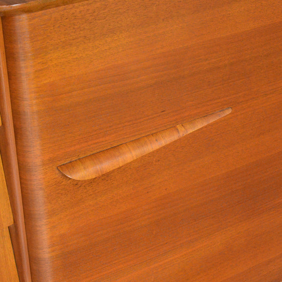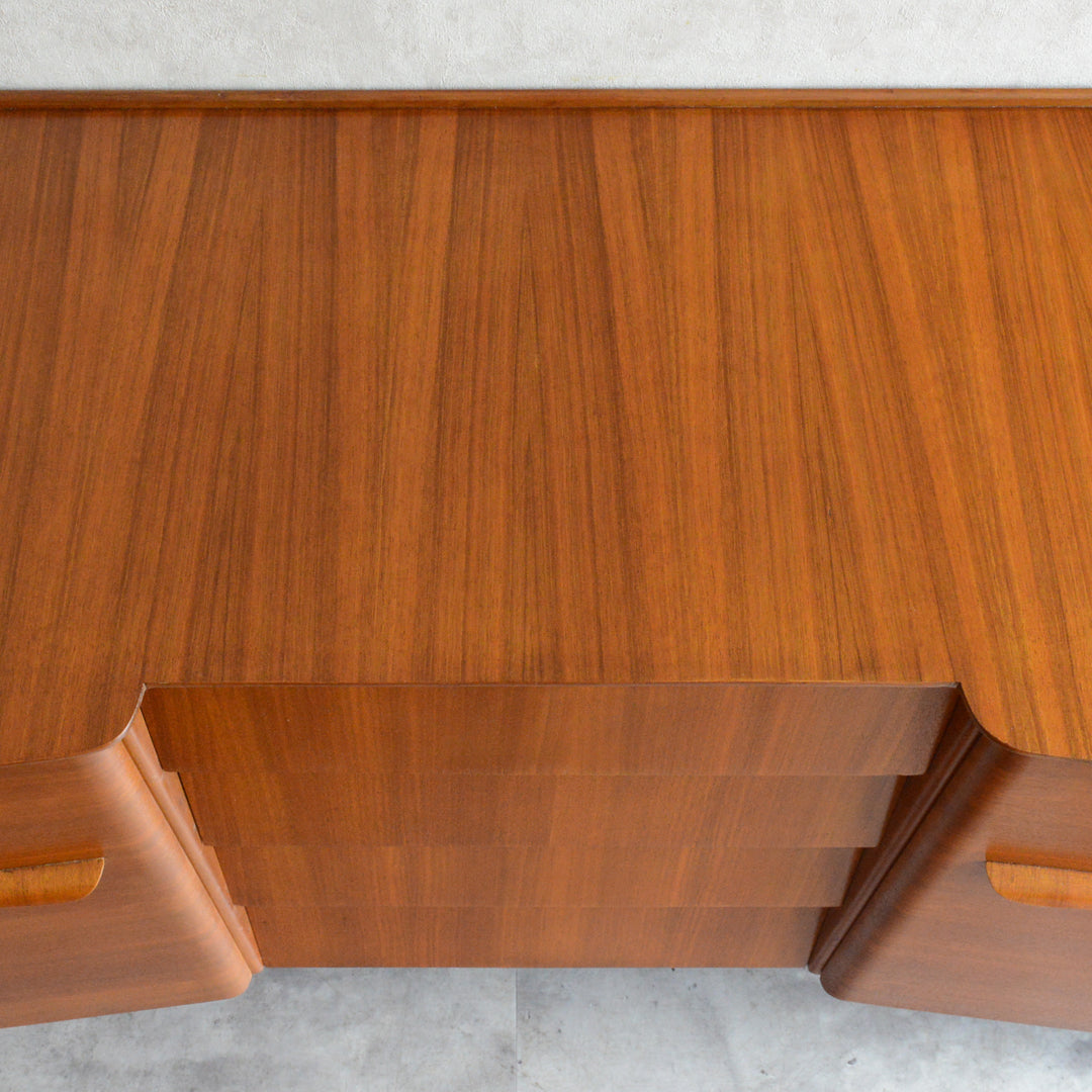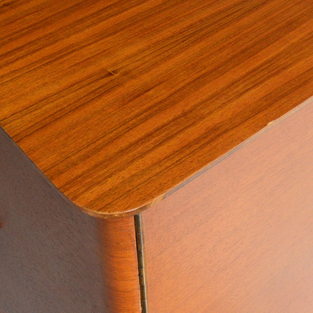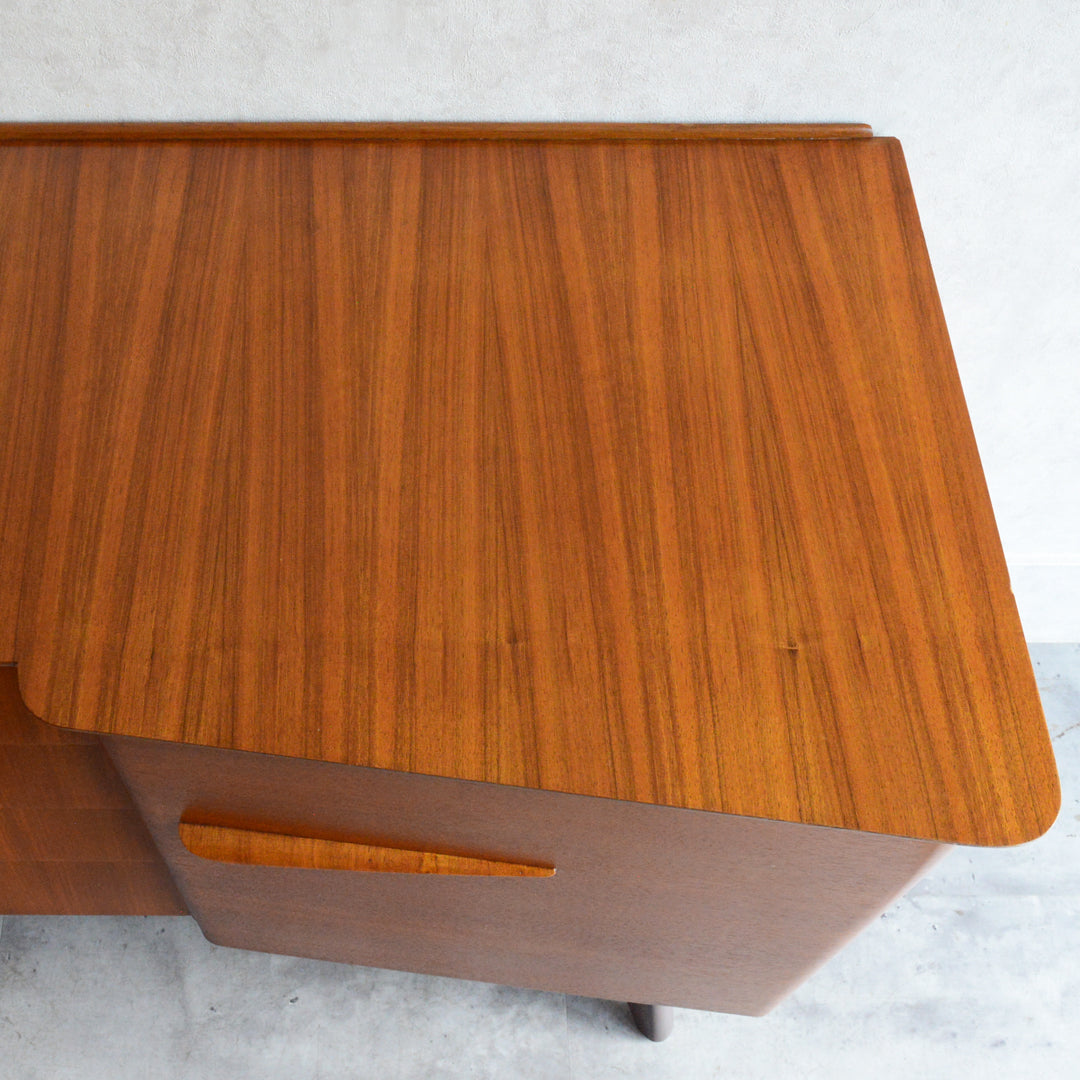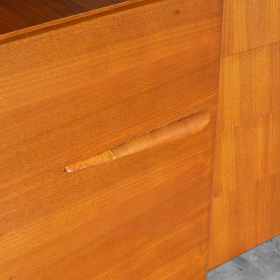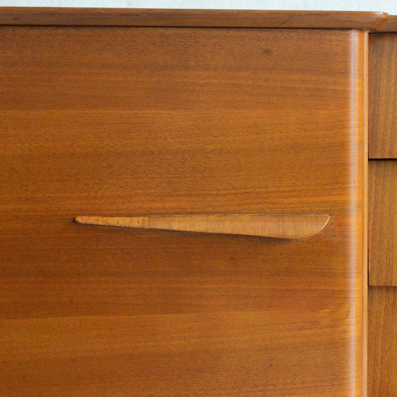 中央抽斗のスタイリッシュなデザインと扉の把手の曲線が印象的なサイドボード。