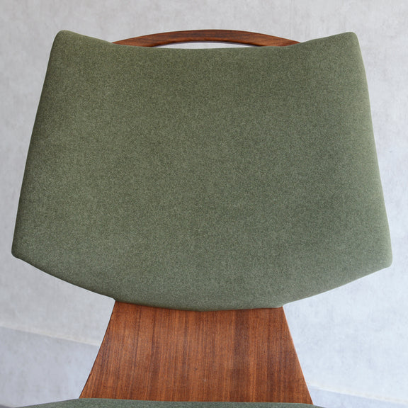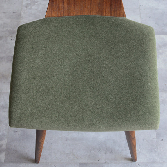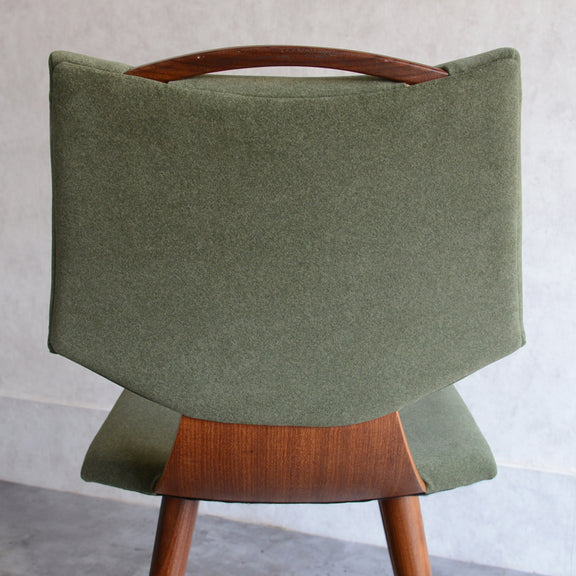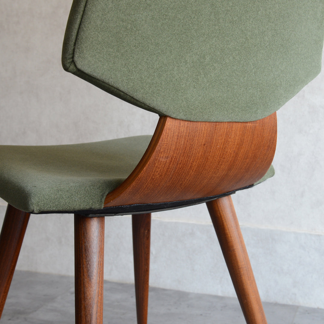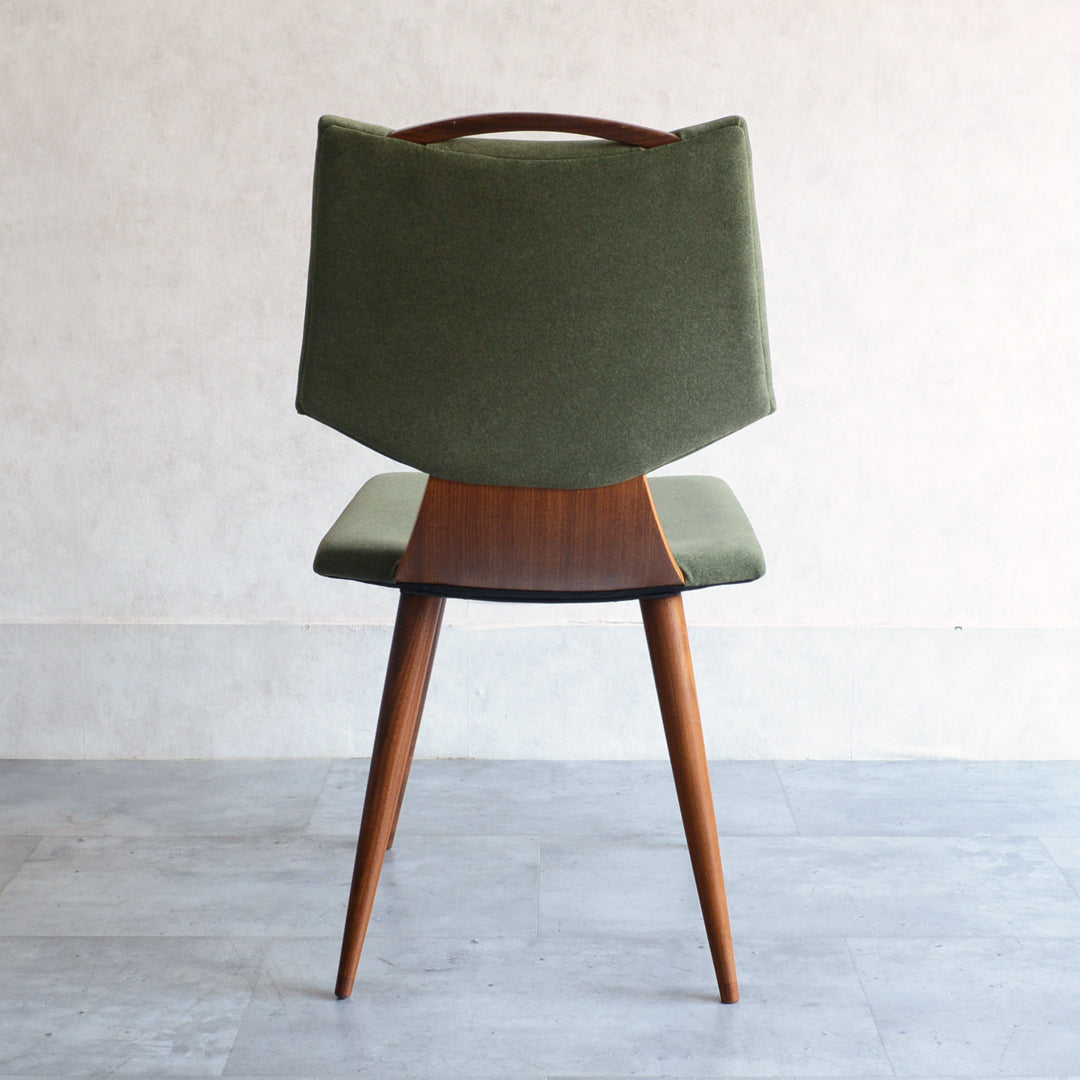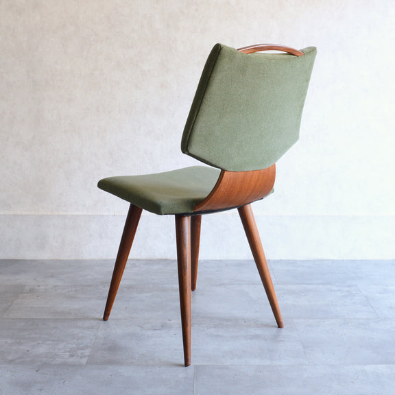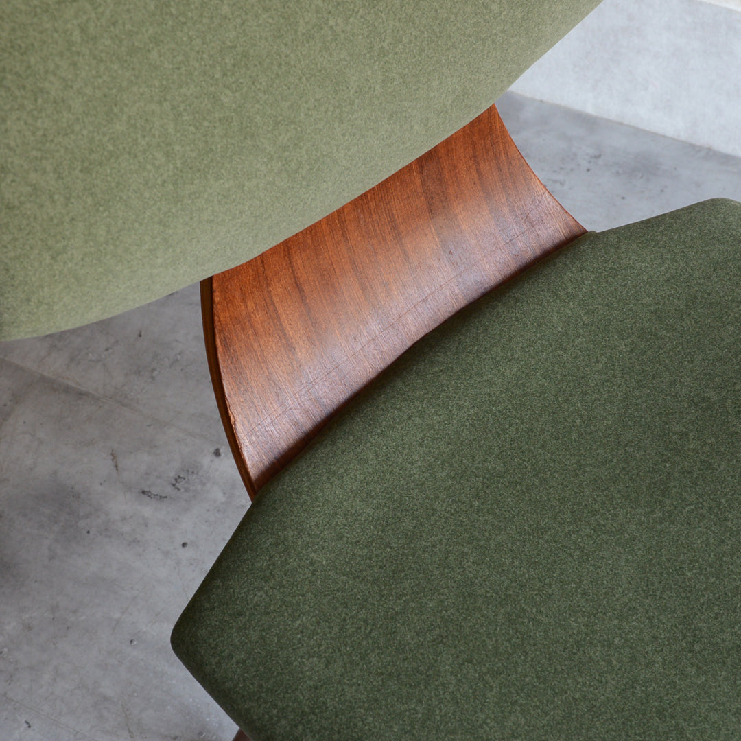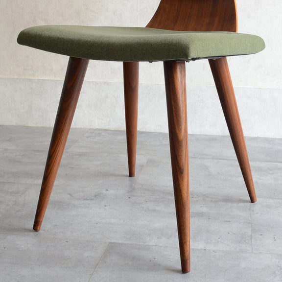 背板と座面を繋ぐ木部のカーブとテーパーの丸脚が印象的なモダンでスタイリッシュなチェアです。