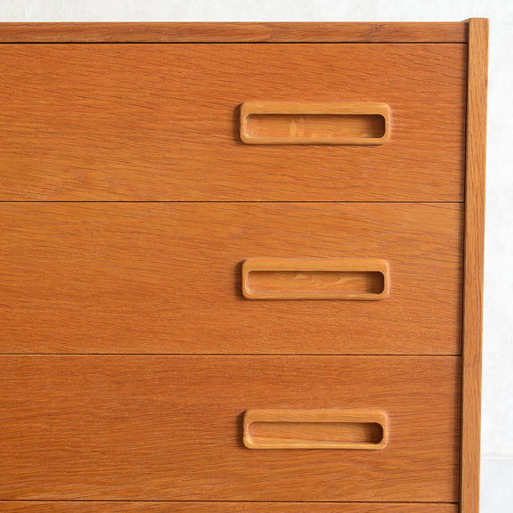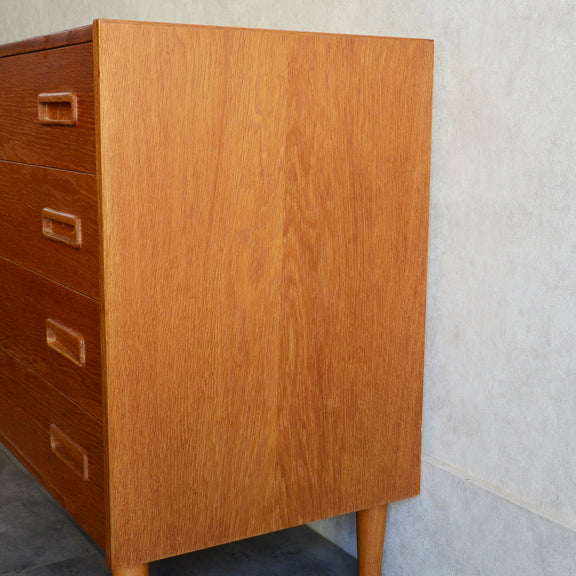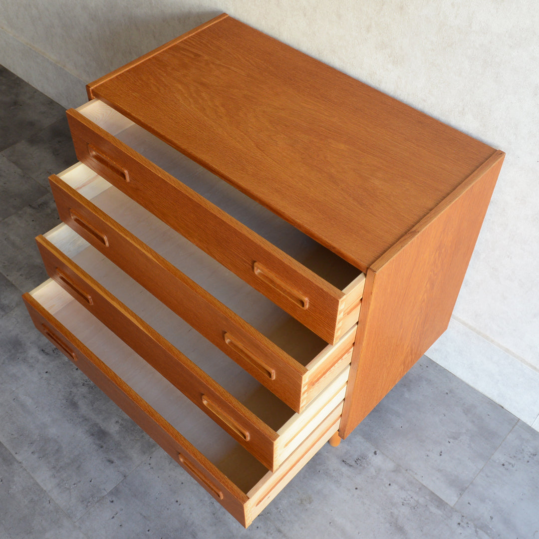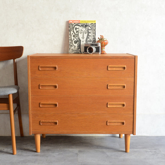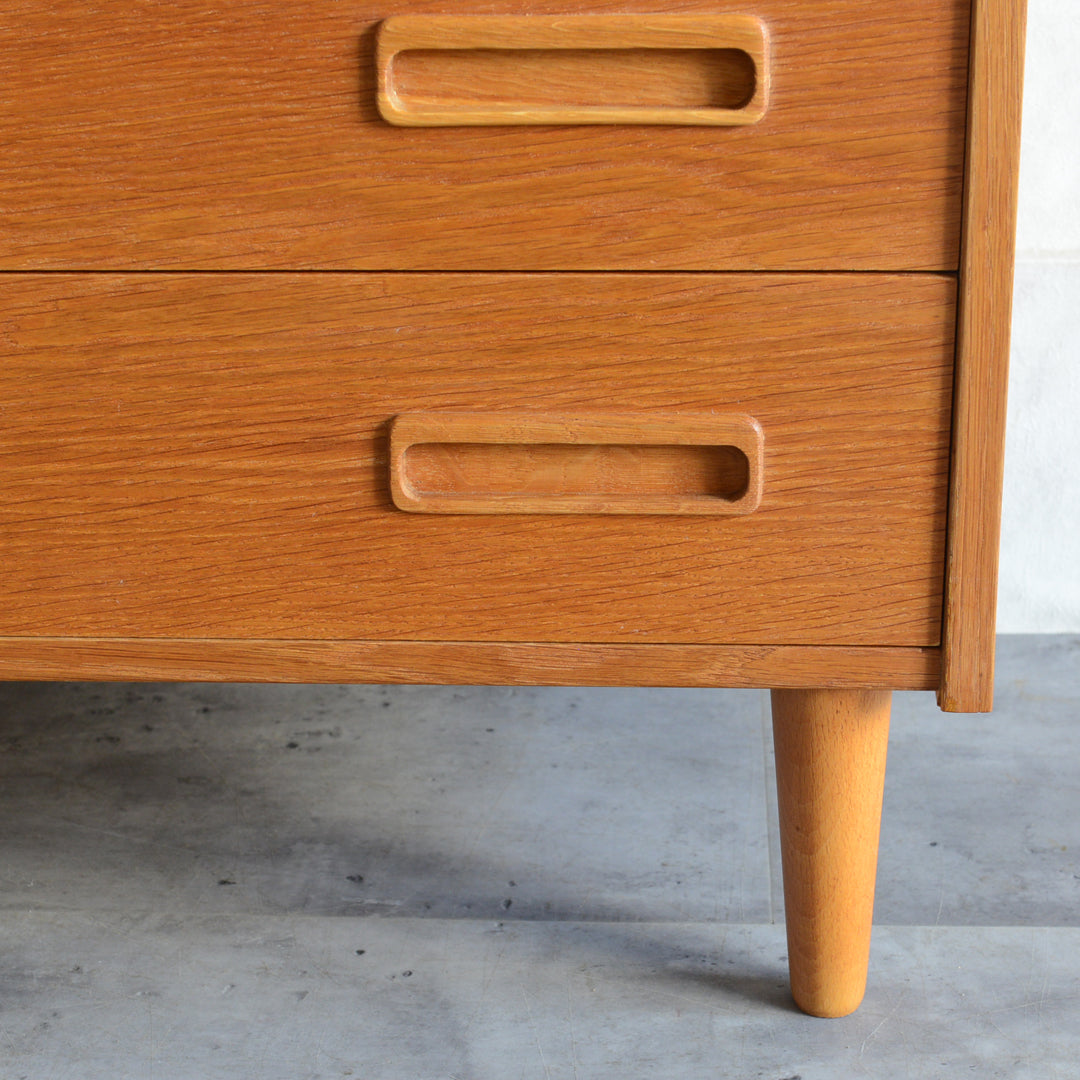 北欧デザインらしいブナの丸脚と、オークの手彫り把手がアクセントとなっています。