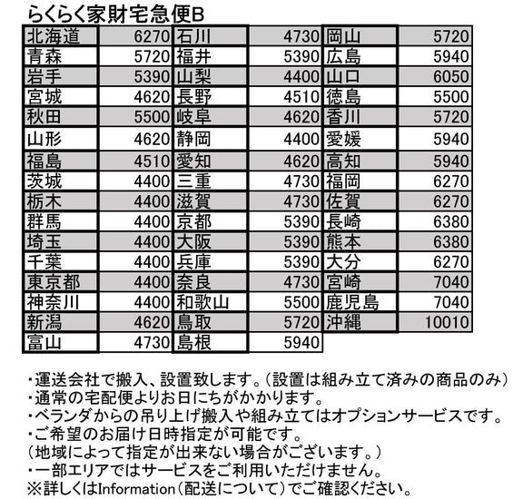 ・運送会社規定により家具(椅子を含む)は同梱扱いに出来ません。搬入設置は配送業者が致します。