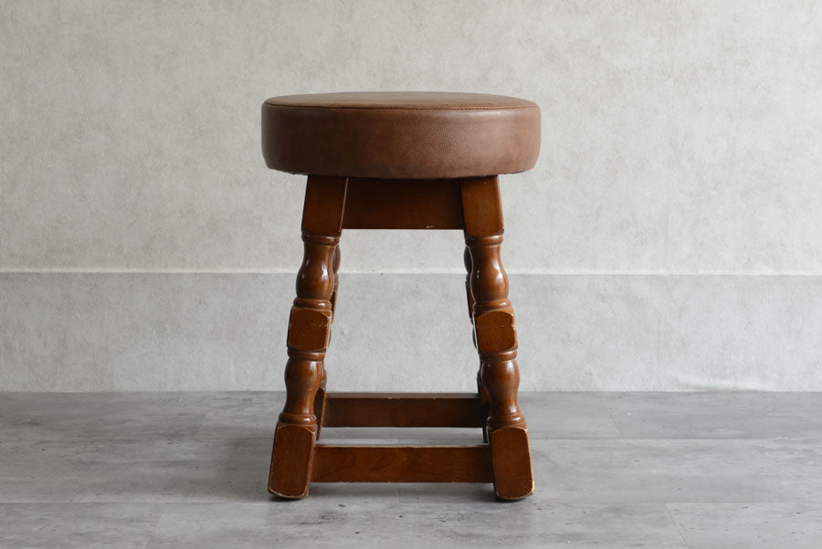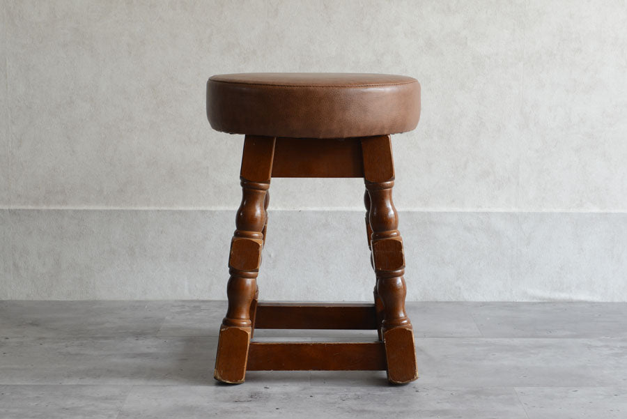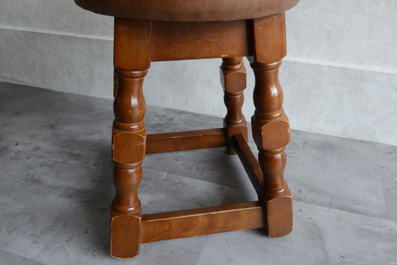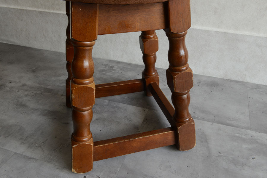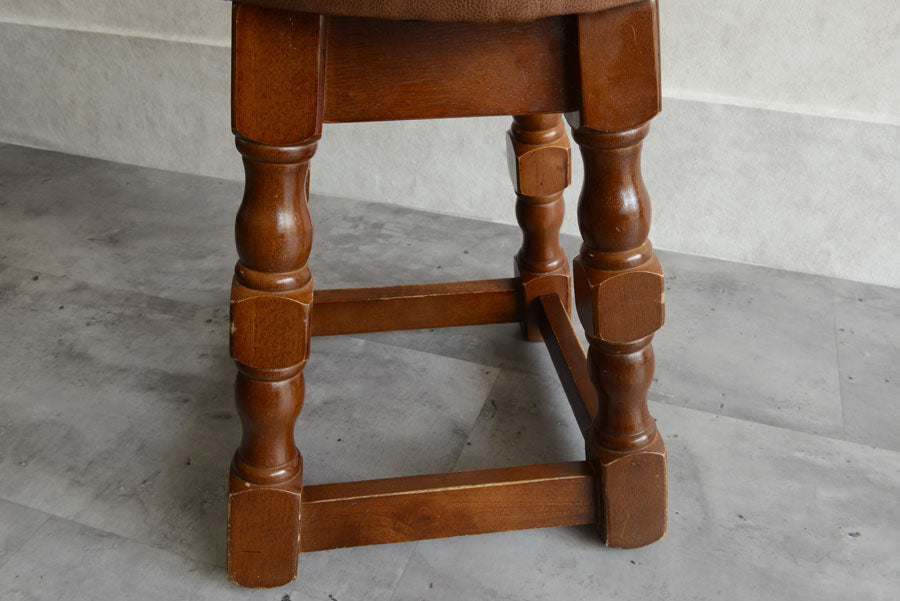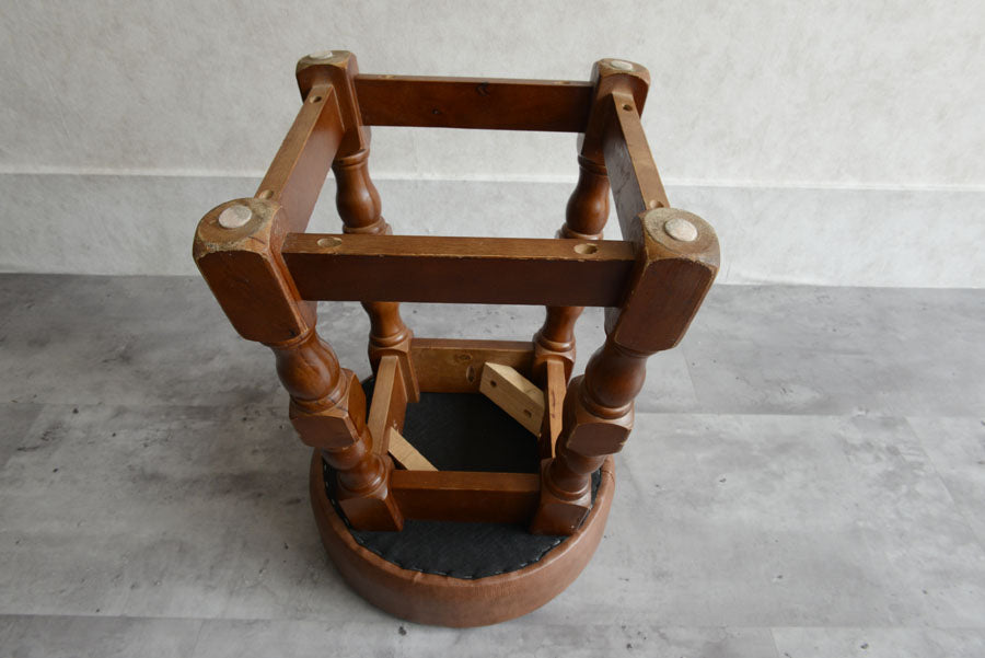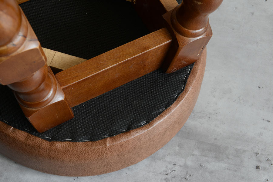 脚部は経年でヴィンテージ感たっぷり。レザー部分は張替え済みですので、座りごごちもOKです。