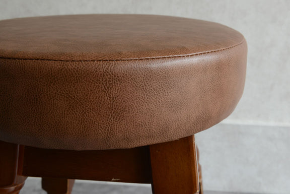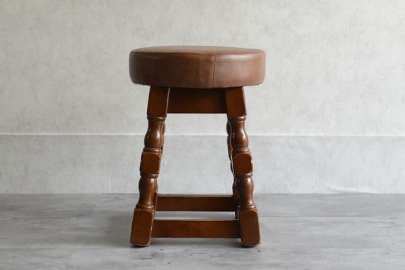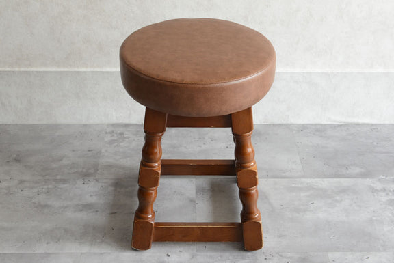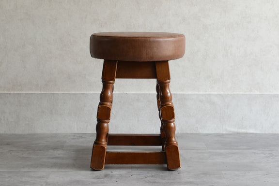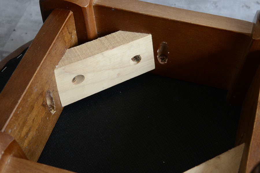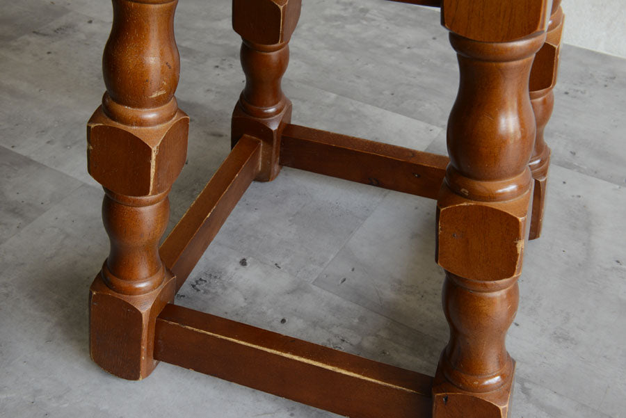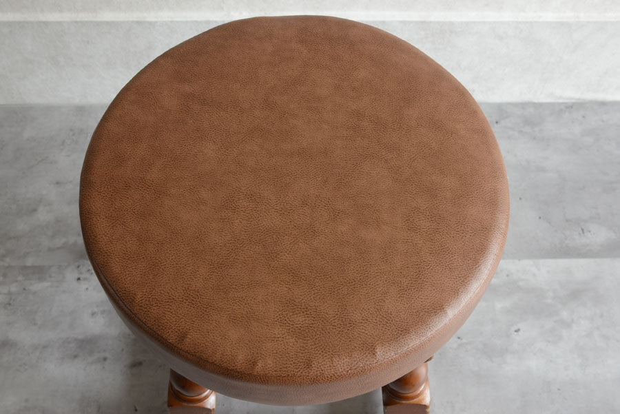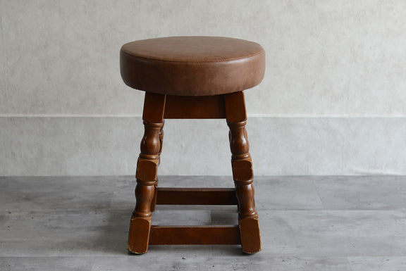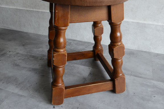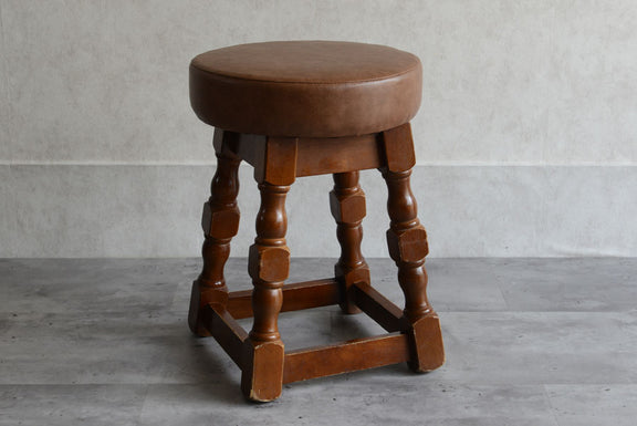 脚部は経年でヴィンテージ感たっぷり。レザー部分は張替え済みですので、座りごごちもOKです。