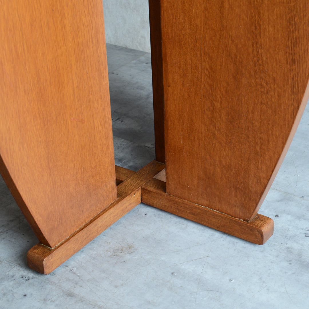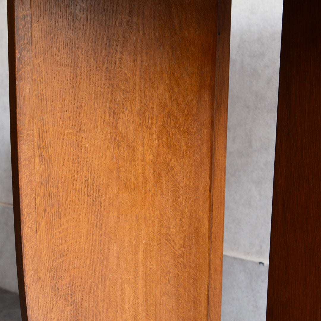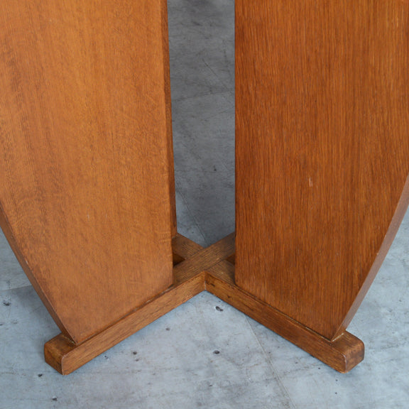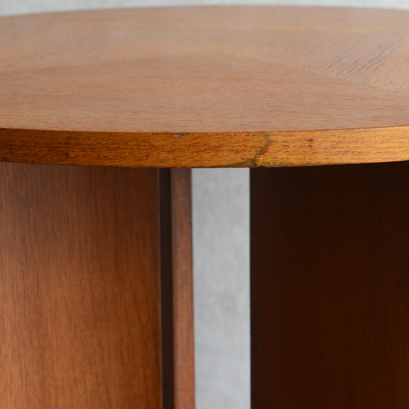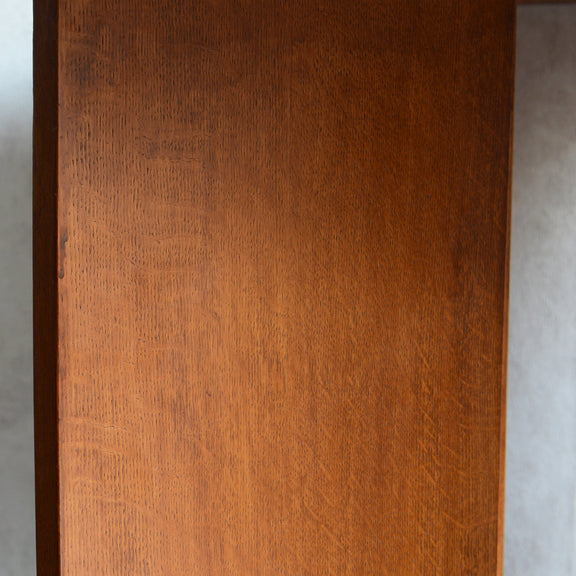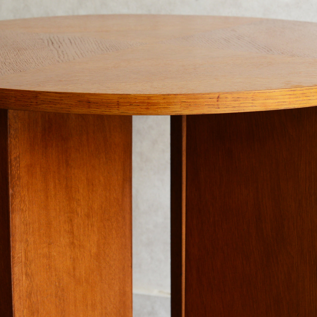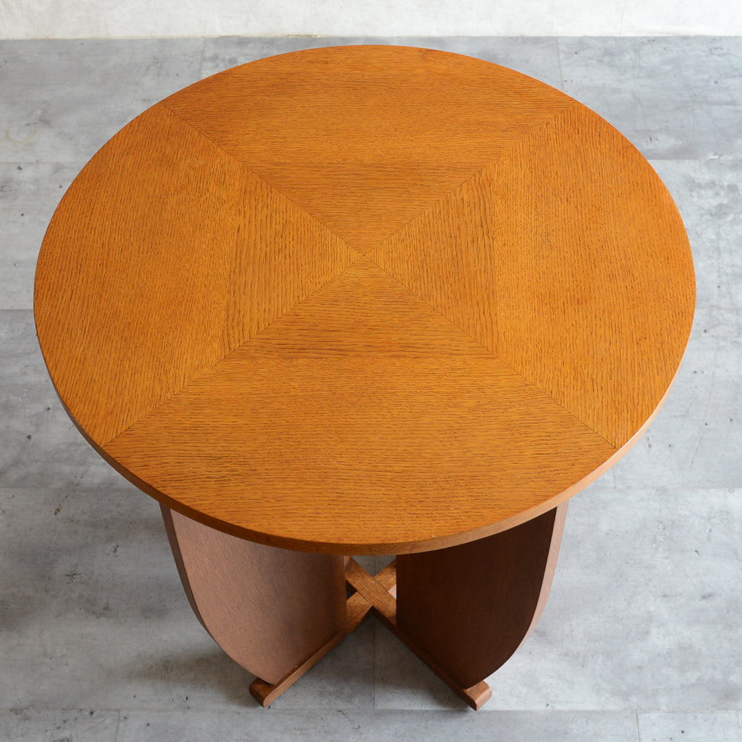 オーク材を組み合わせて幾何学模様に仕立てた天板の意匠にもイギリスミッドセンチュリーの職人技の高さを感じます。