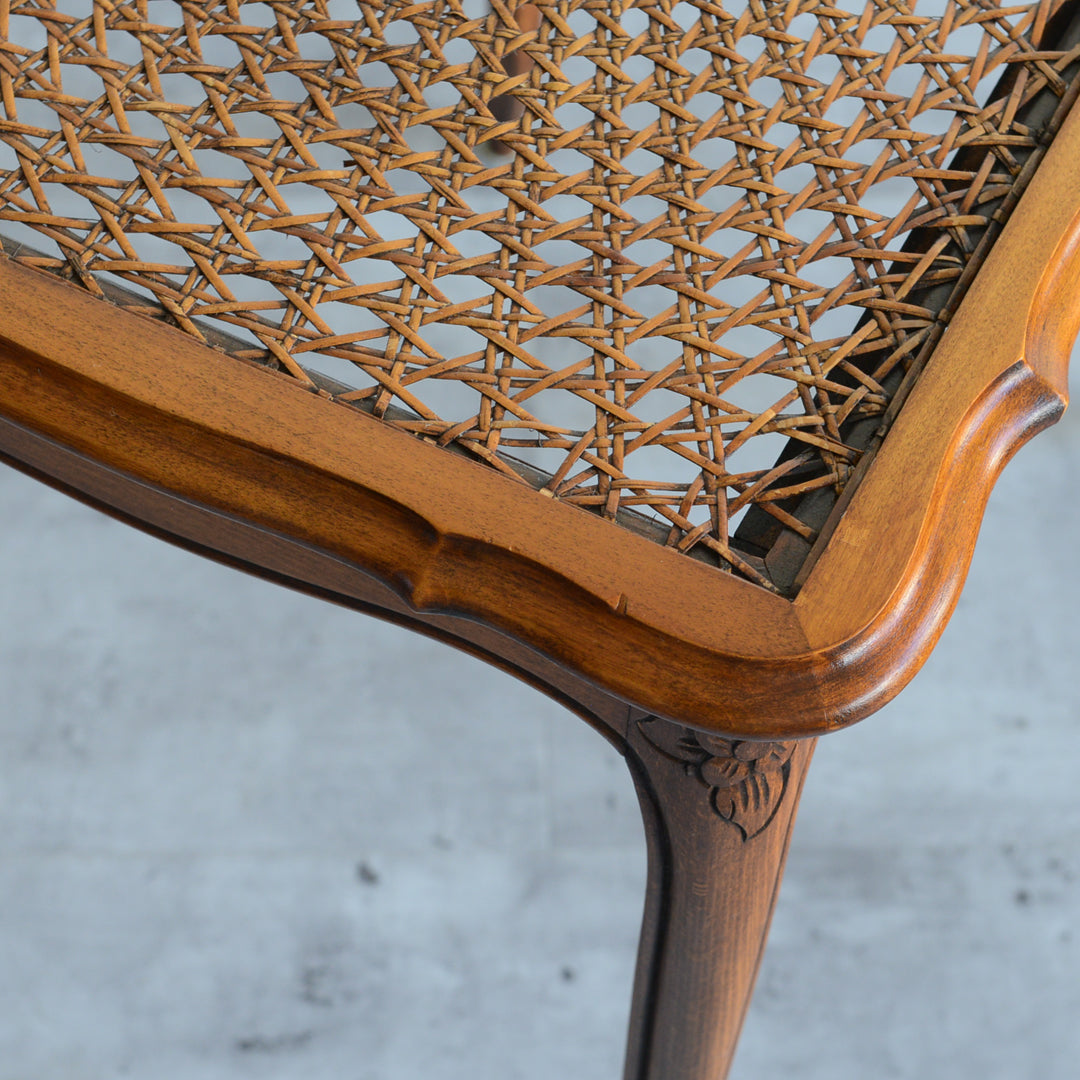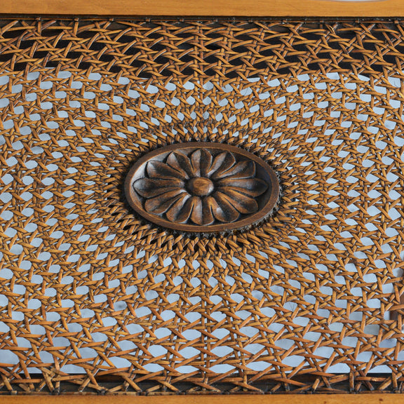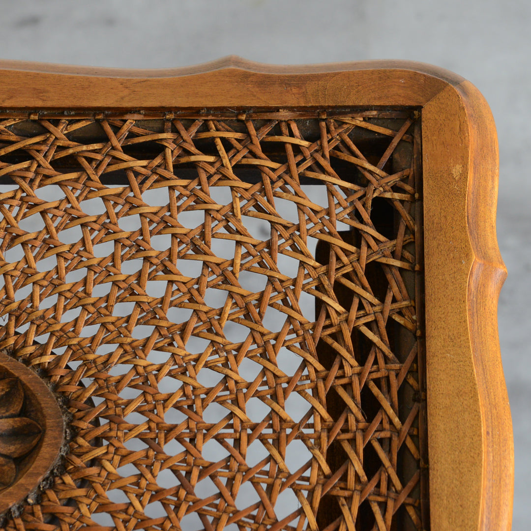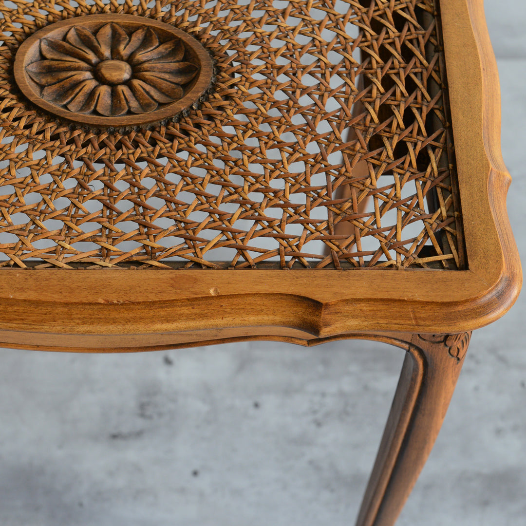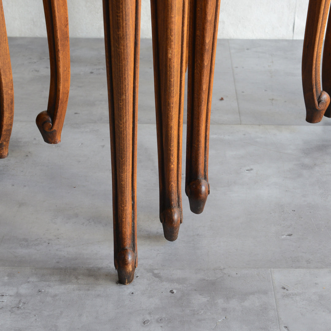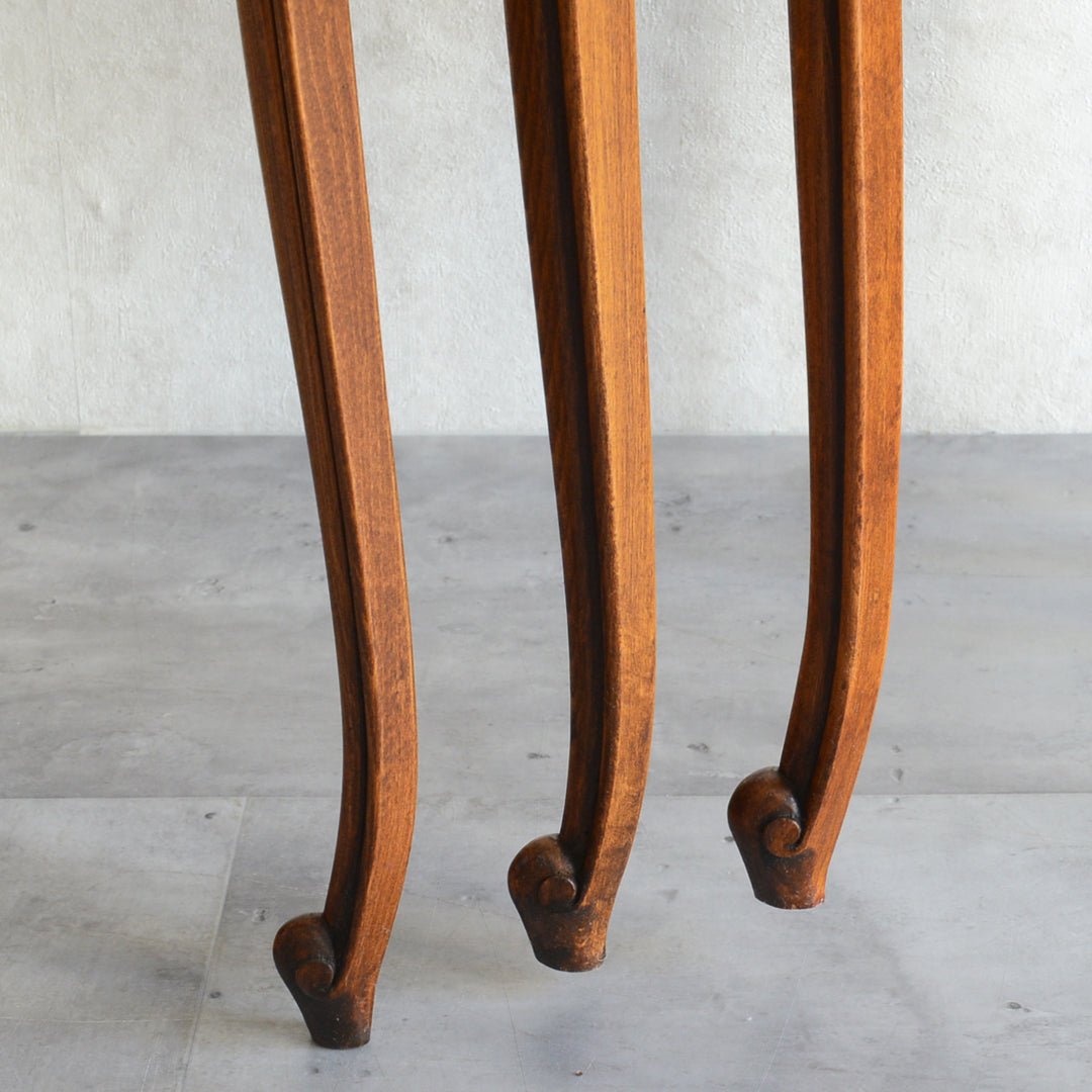 木彫の花とラタンの天板が、珍しいネストテーブルです。