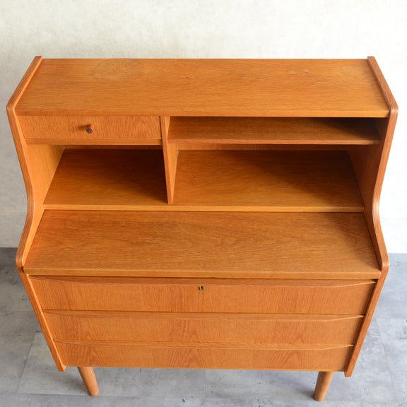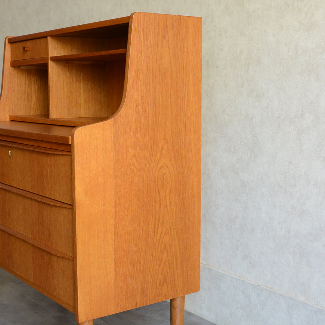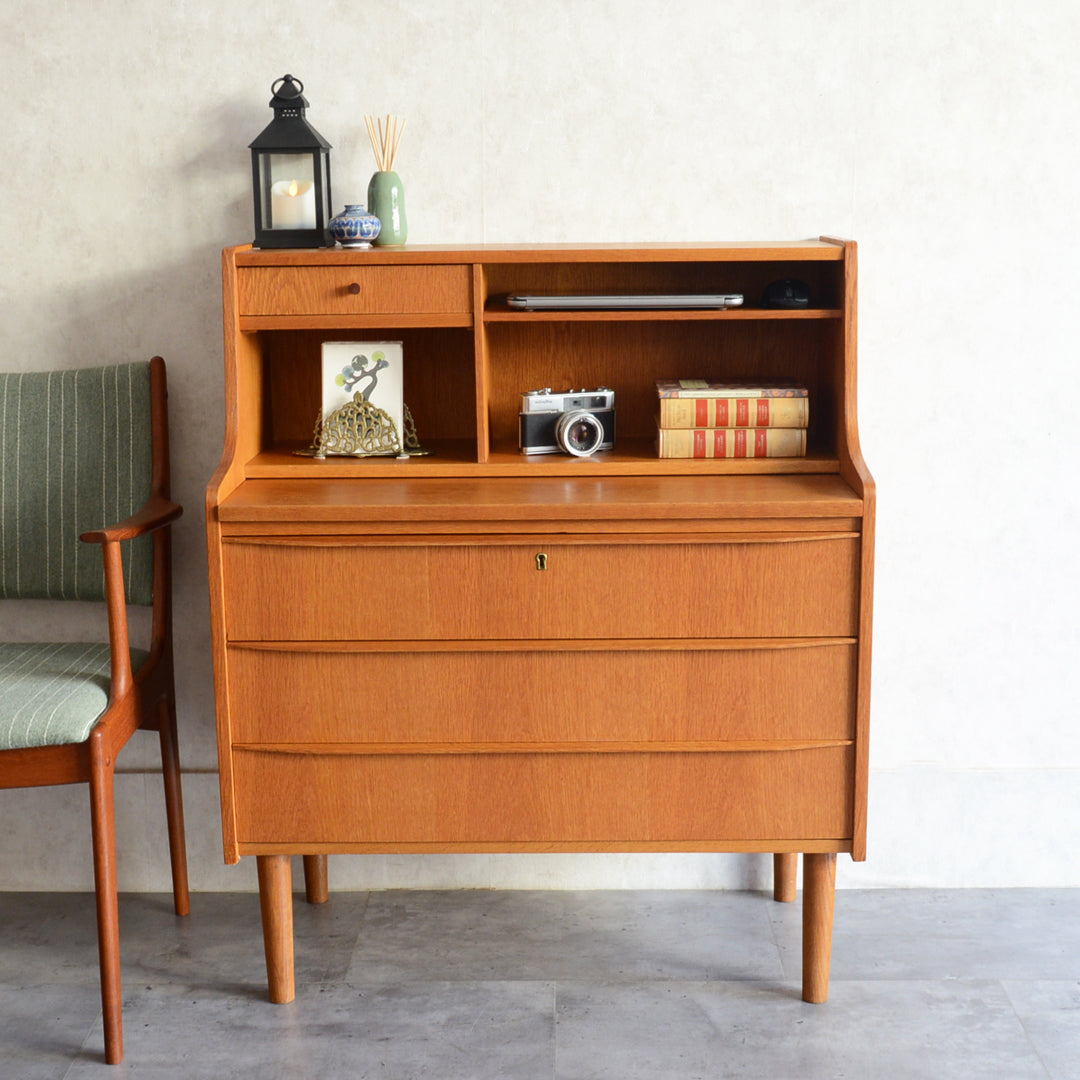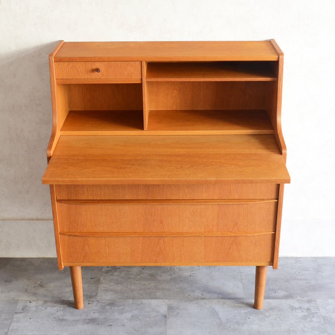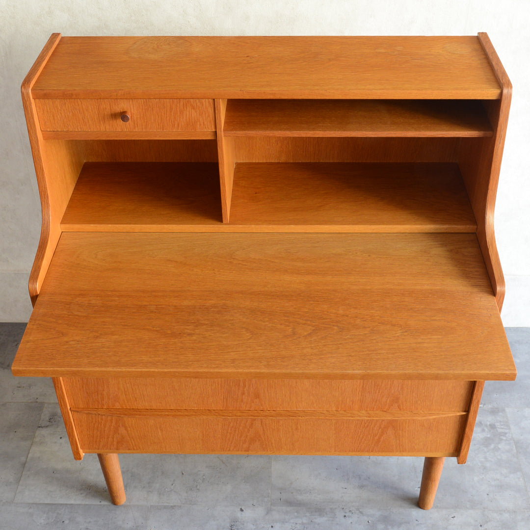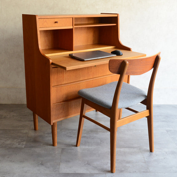北欧のビューローは机の天板を倒すのでは無く、スライド式に手前に引くタイプが多くみられます。