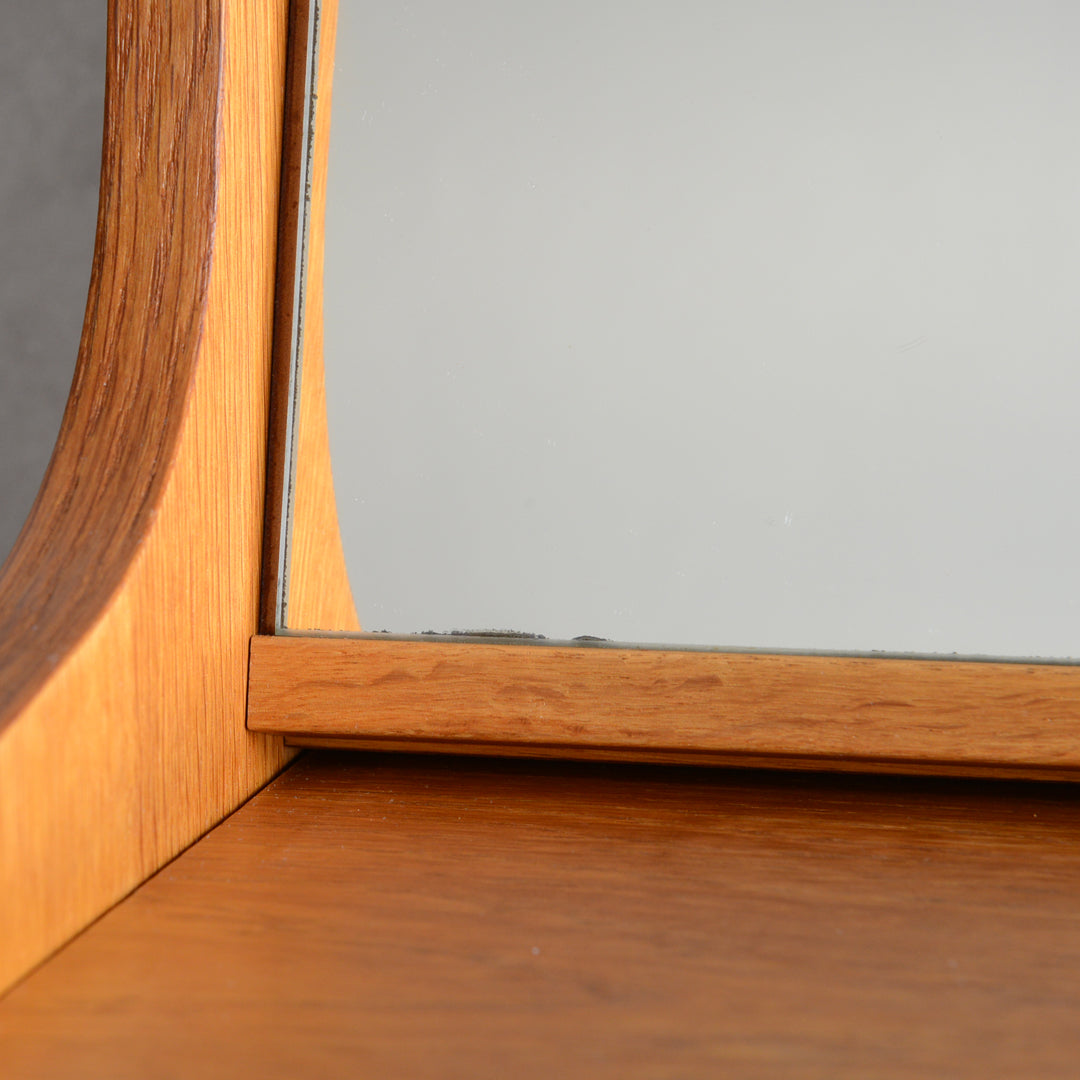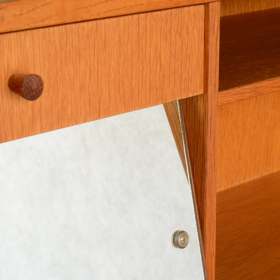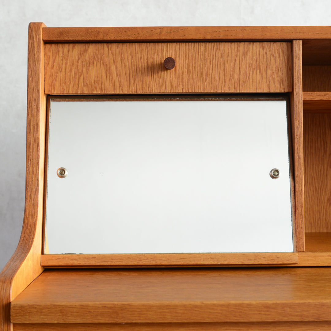 また、左の棚上にはミラーが隠されており、棚の中に化粧品やアクセサリーを置いておくとメイクや身支度にも便利にお使い頂けます。