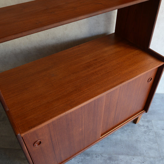 生活感のある日用品はすっきりと木扉付キャビネットに収納する事が出来ます。