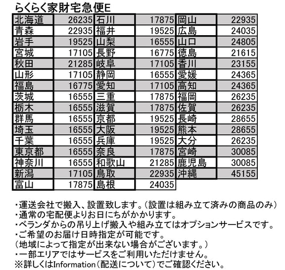 ・運送会社規定により家具(椅子を含む)は同梱扱いに出来ません。搬入設置は配送業者が致します。