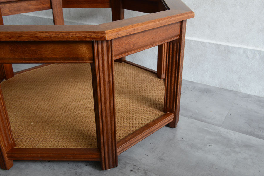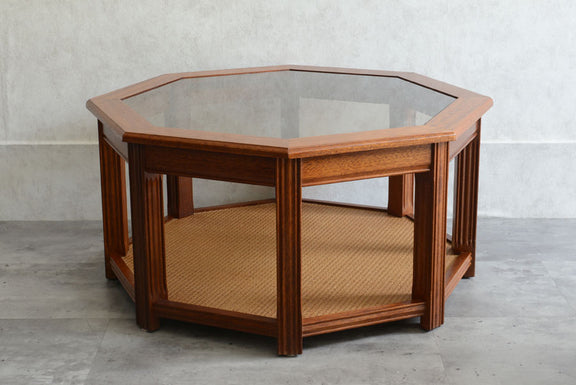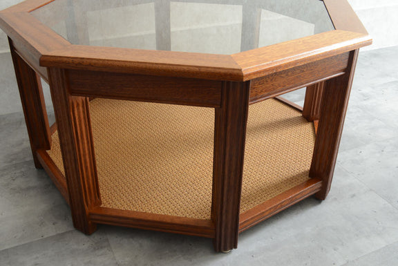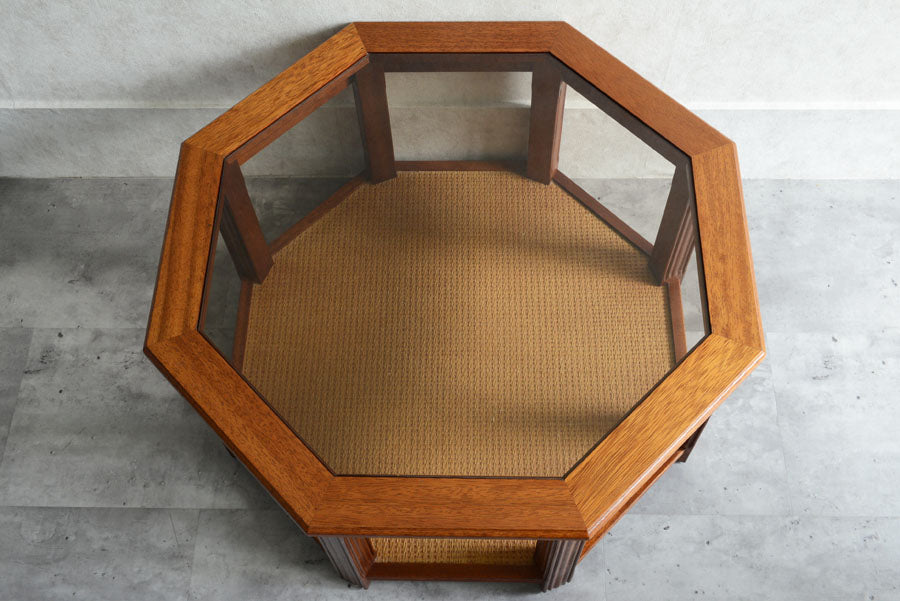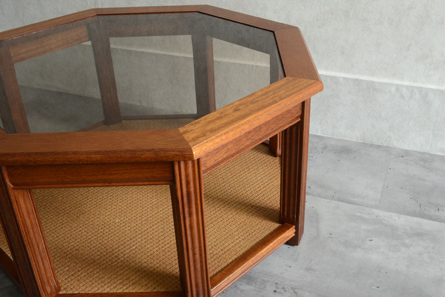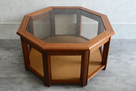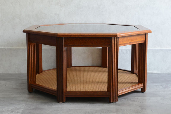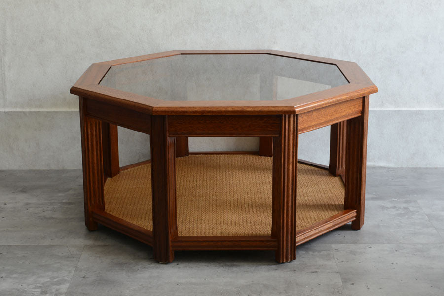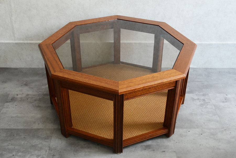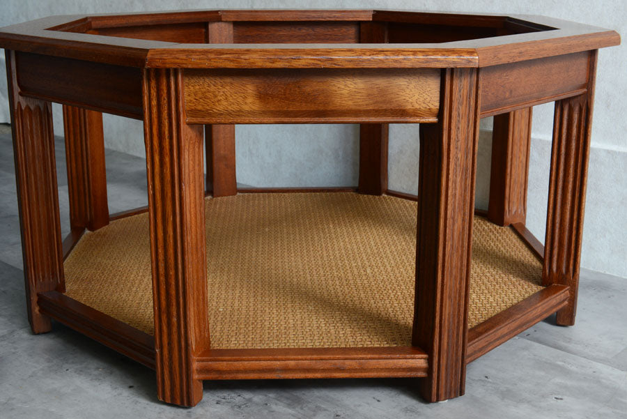 スタイリッシュな八角形で、テーブル下がラタンのレアなデザインです。
