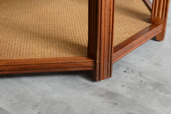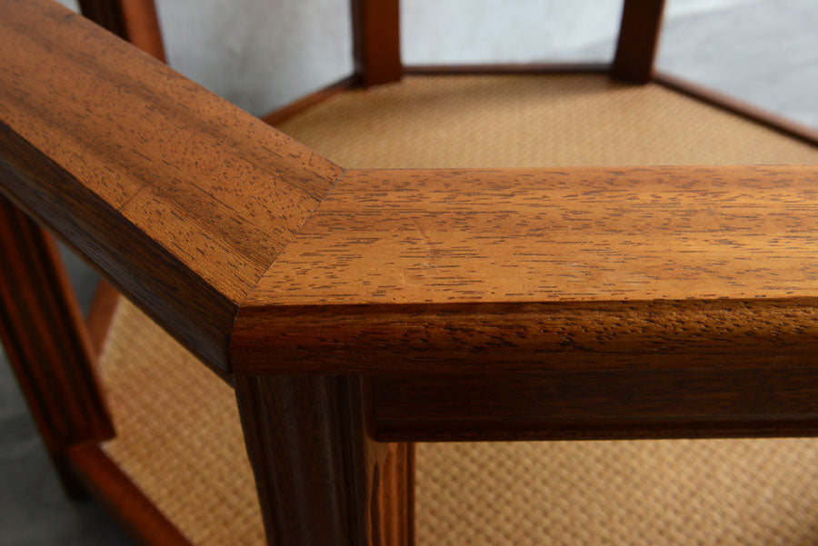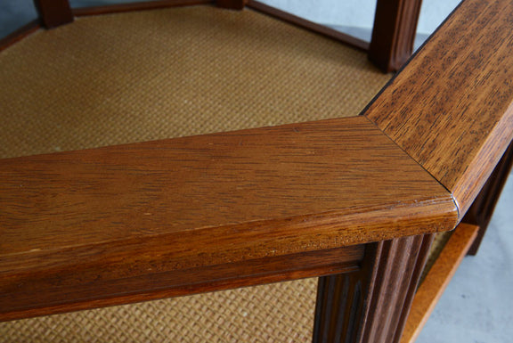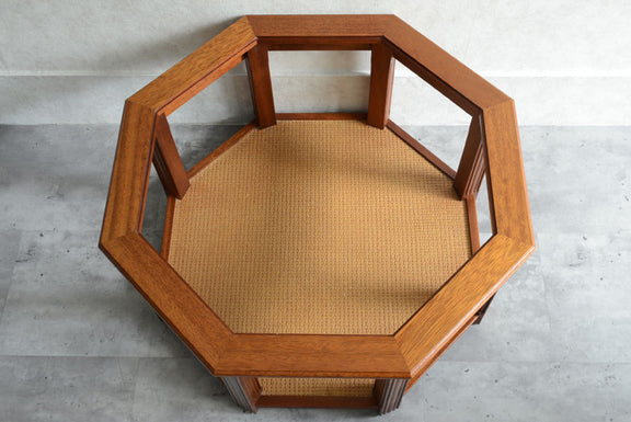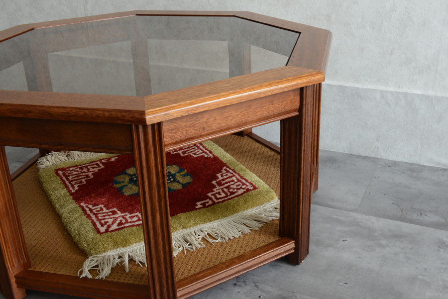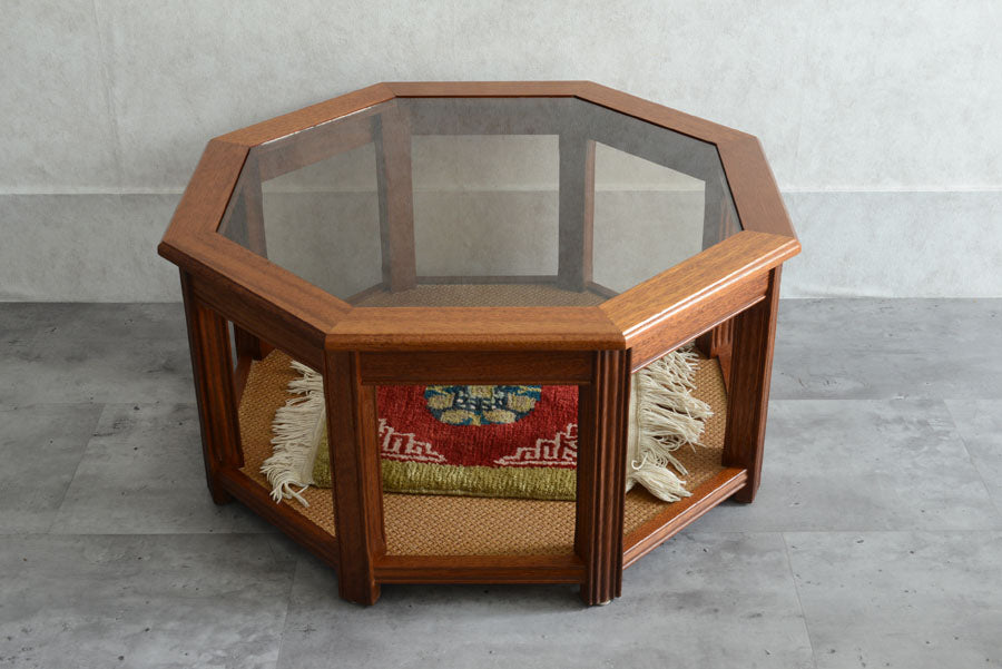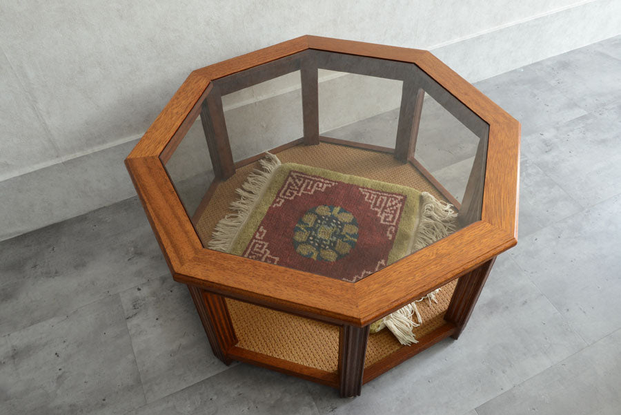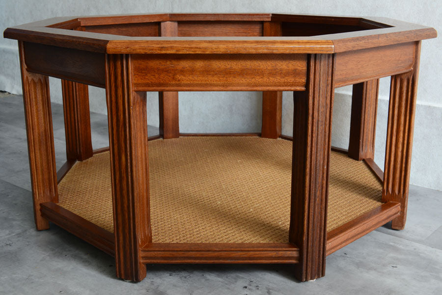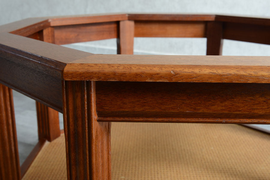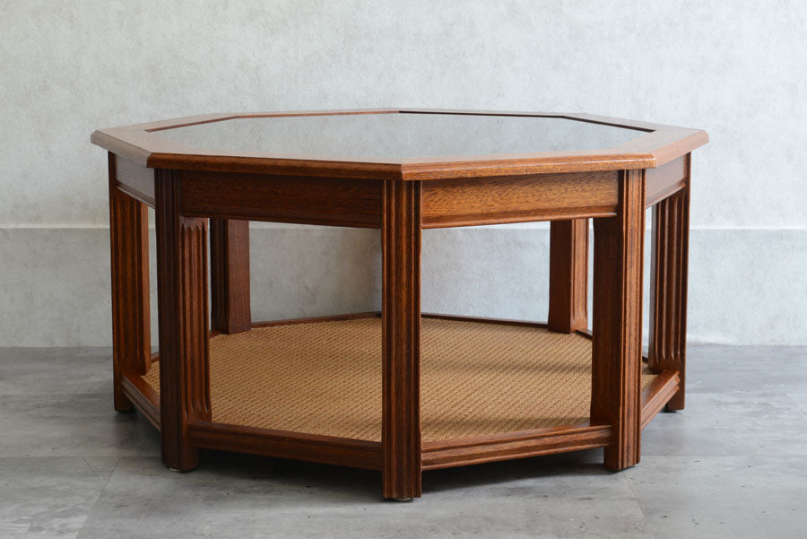 スタイリッシュな八角形で、テーブル下がラタンのレアなデザインです。