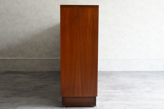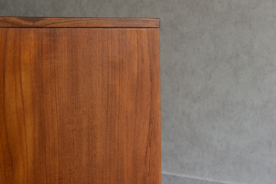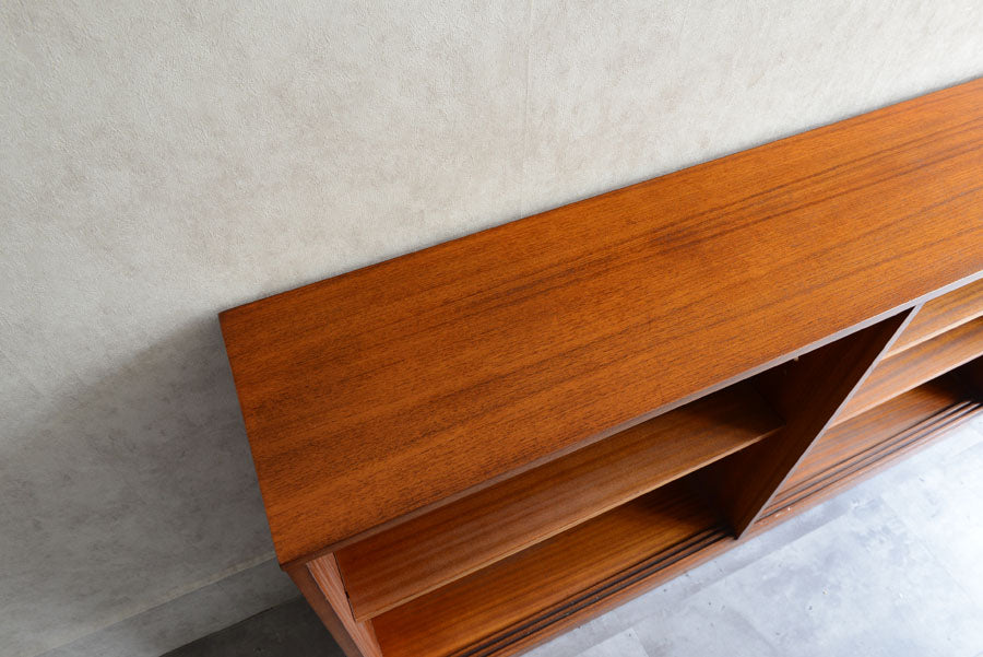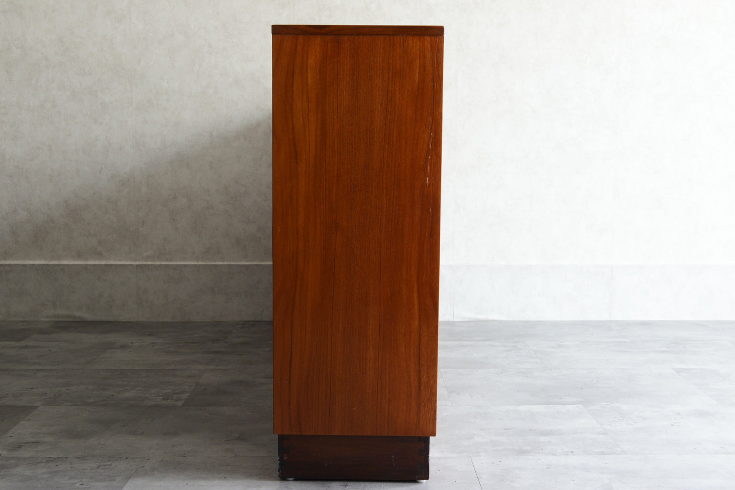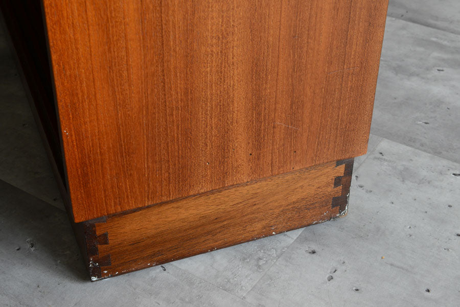 チークの質が良く艶があり、棚板等の造りも丁寧なキャビネットです。