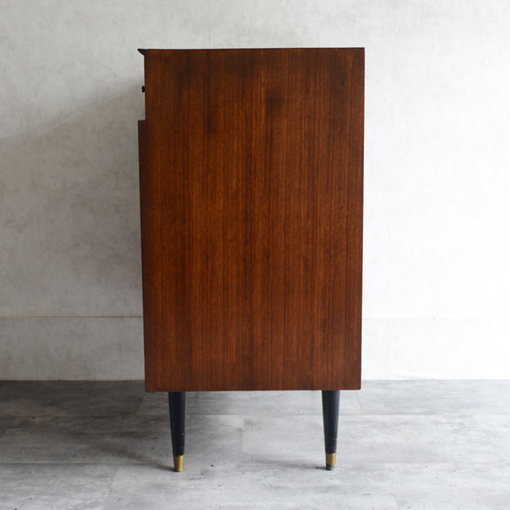 上段のみ把手が異なるミッドセンチュリーらしい個性的なデザインですが、全体的にはヴィンテージ感溢れるスタイリッシュな佇まいです。