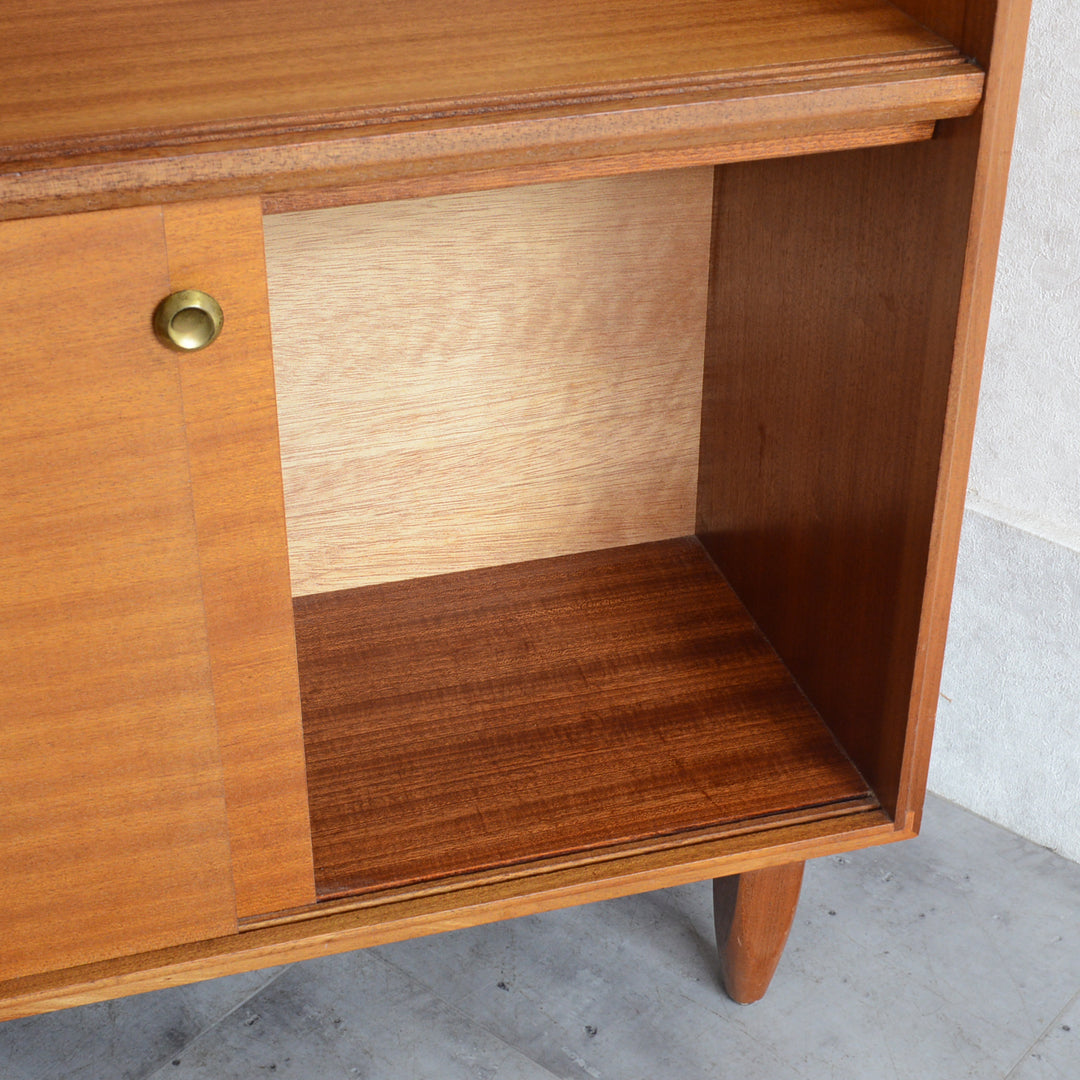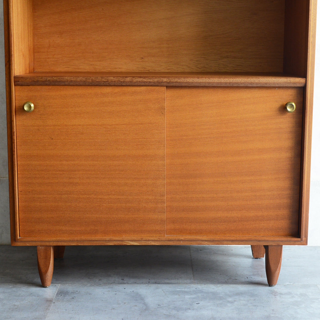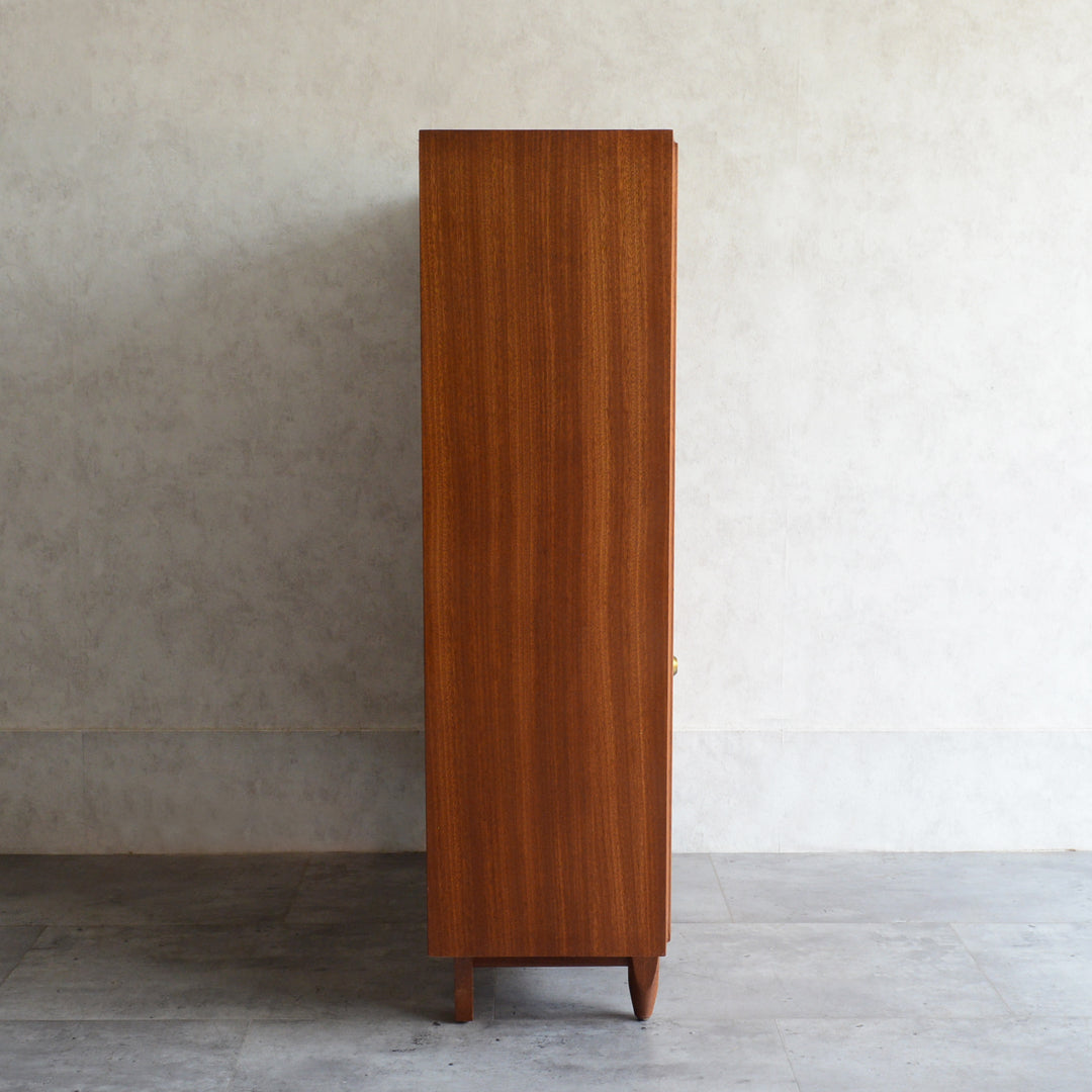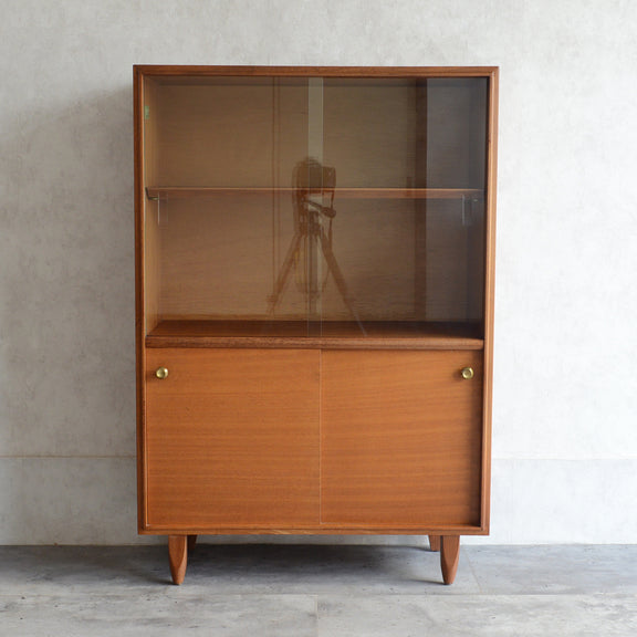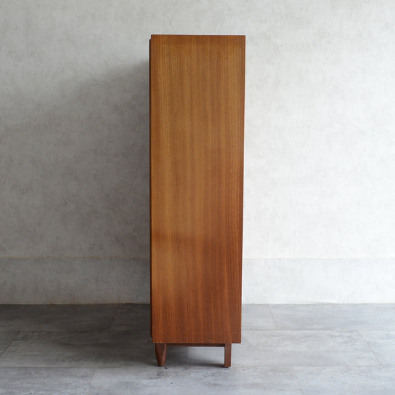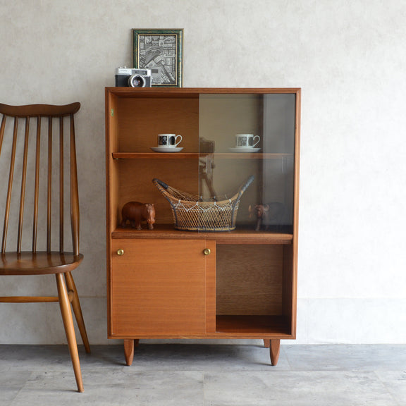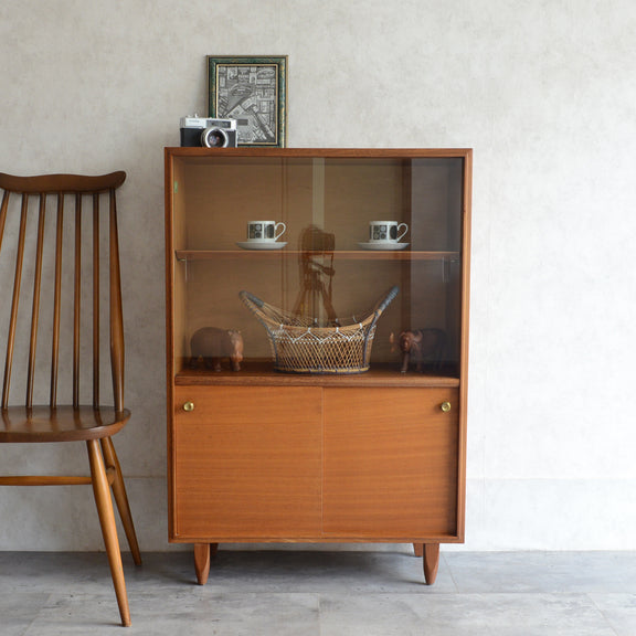 英国ミッドセンチュリー期のインテリアメーカー BEAVER & TAPLEY LTD(ビーバー&タプレイ)により1960年代に製造された、ミッドセンチュリーらしい脚付のコンパクトなチークガラスキャビネットになります。
