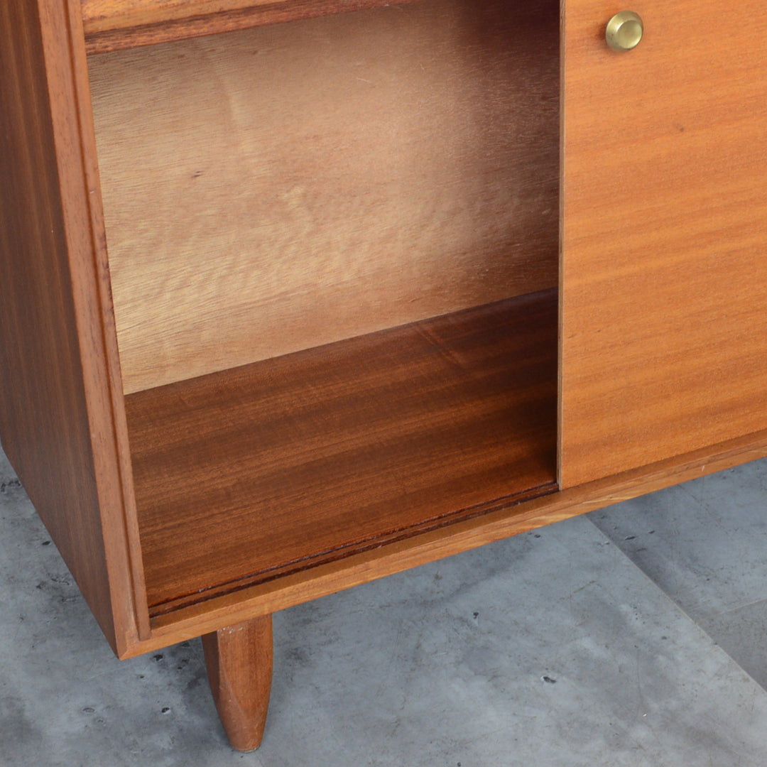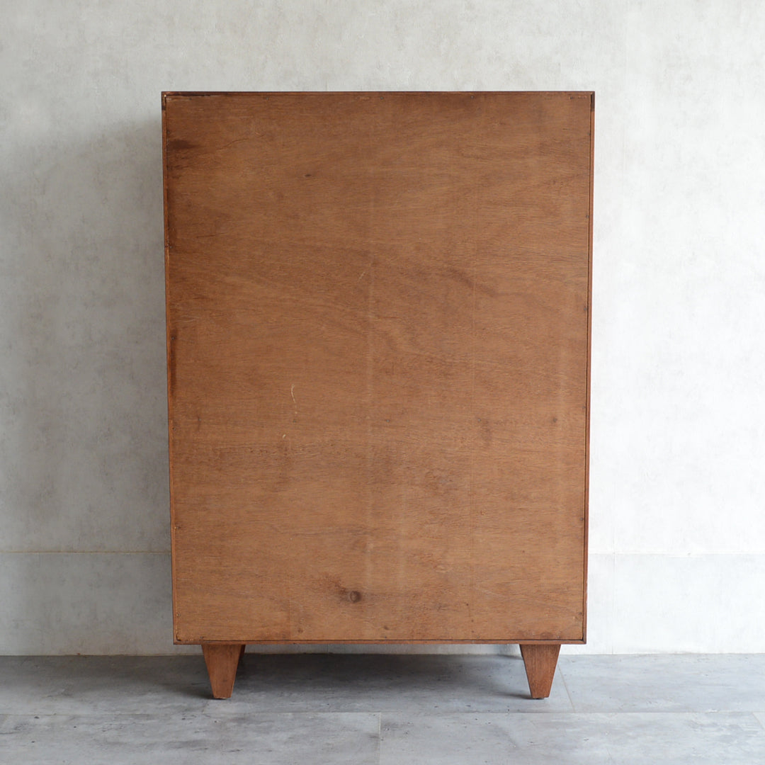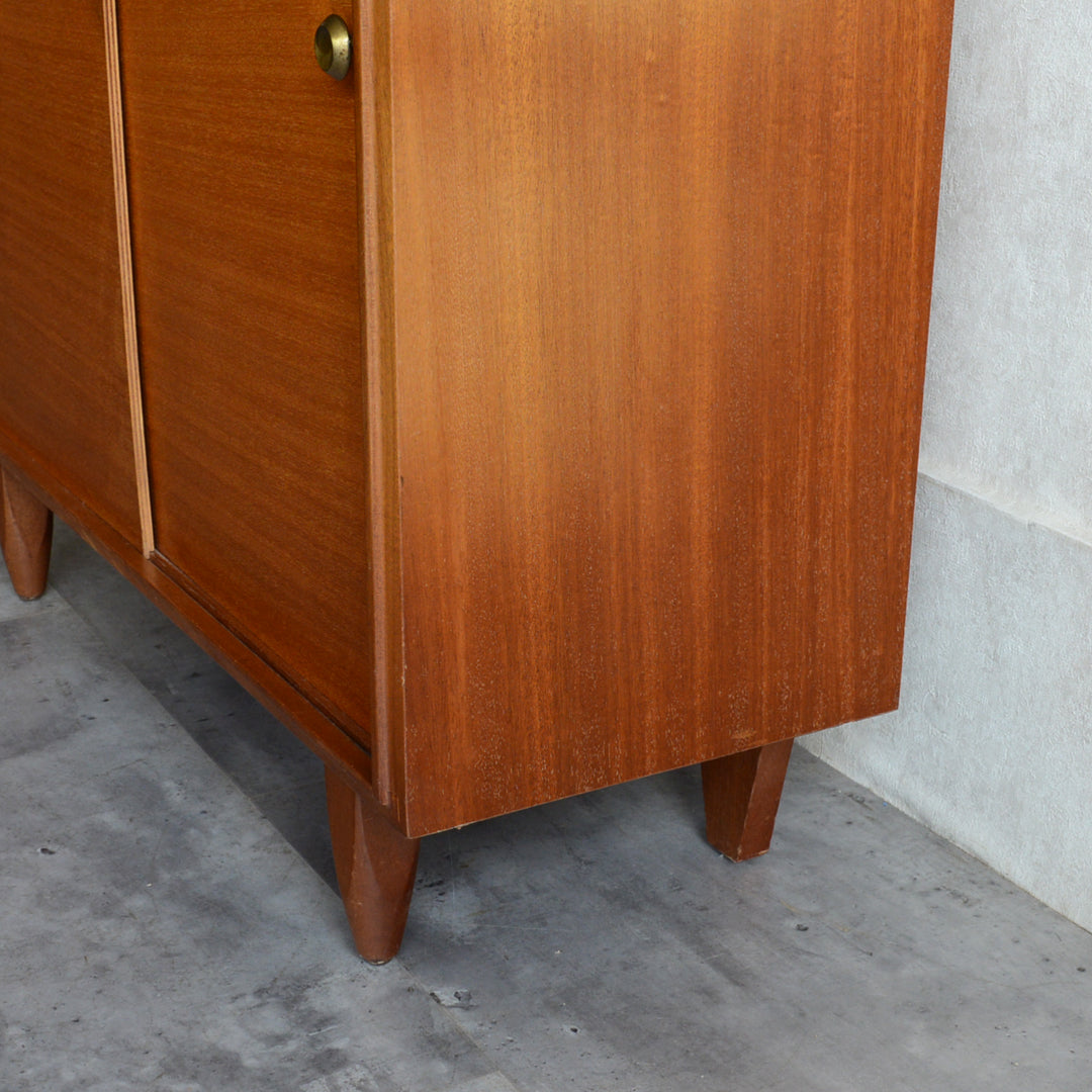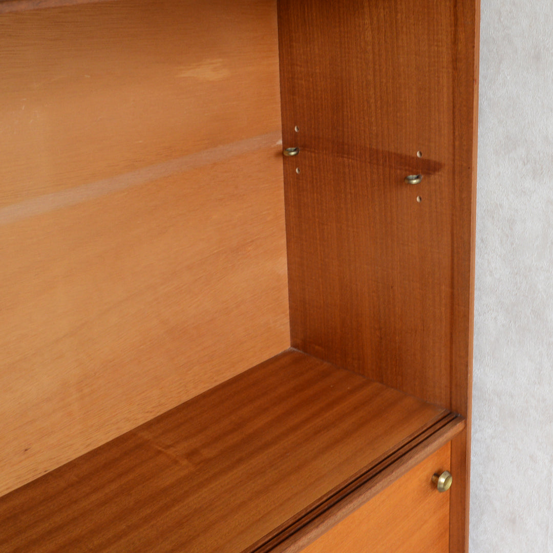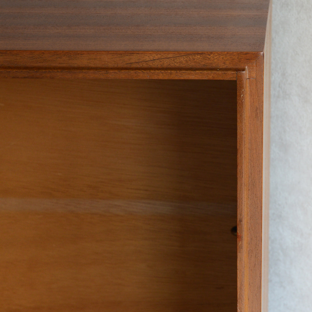 英国ミッドセンチュリー期のインテリアメーカー BEAVER & TAPLEY LTD(ビーバー&タプレイ)により1960年代に製造された、ミッドセンチュリーらしい脚付のコンパクトなチークガラスキャビネットになります。