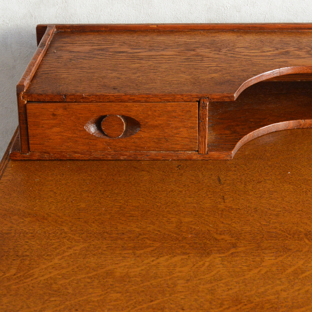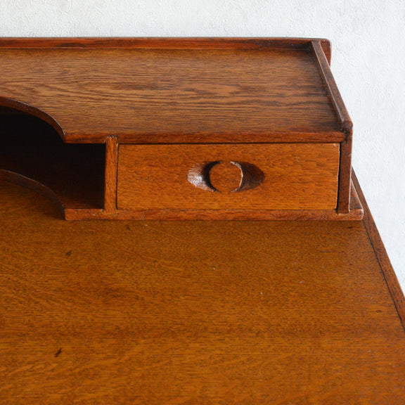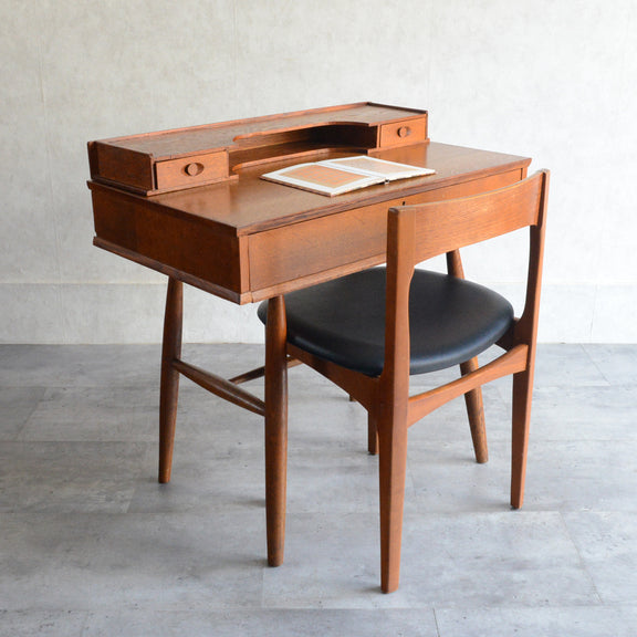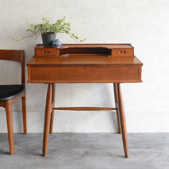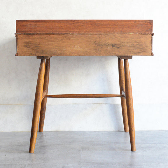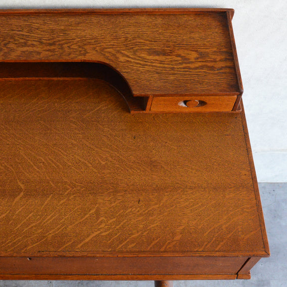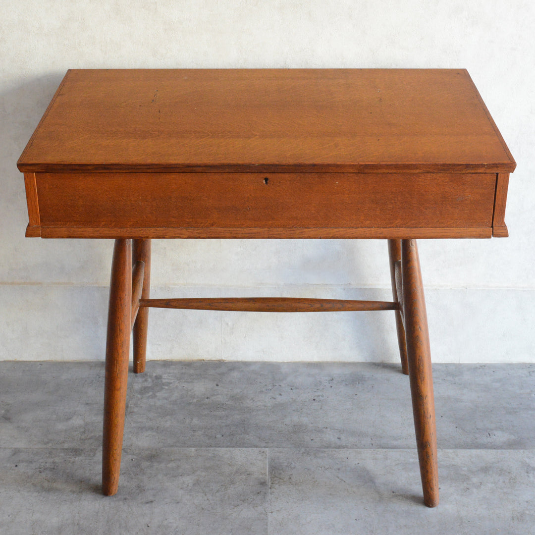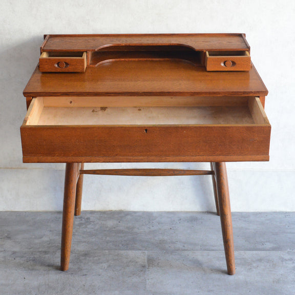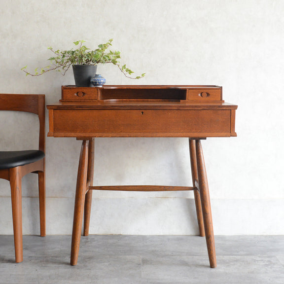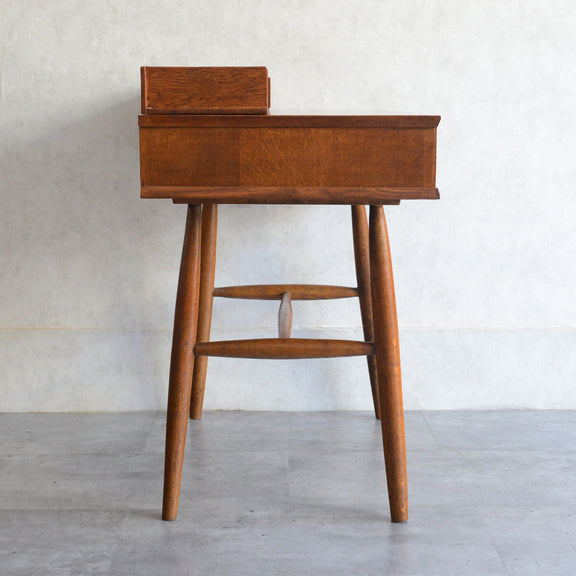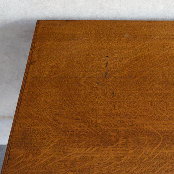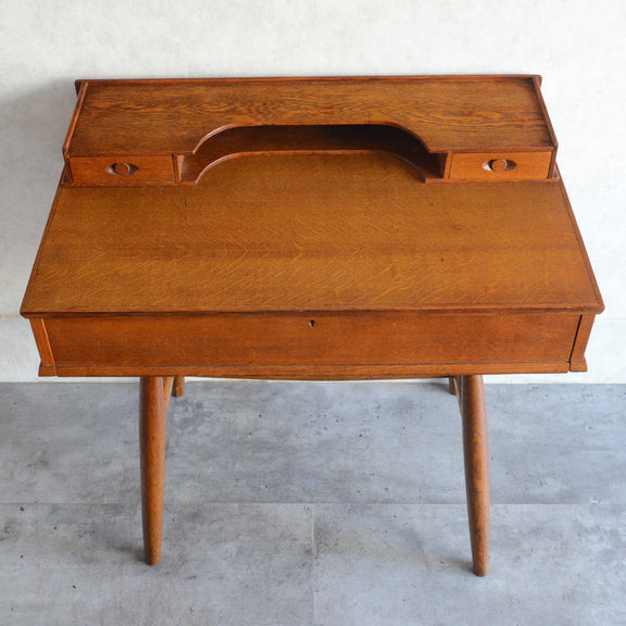 オーク材特有の虎斑の木目が美しいヴィンテージ感溢れるデスク。すらりと伸びた脚部がシンプルで抜け感がある佇まい。