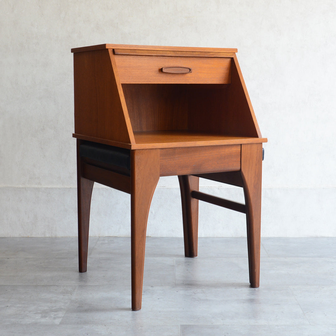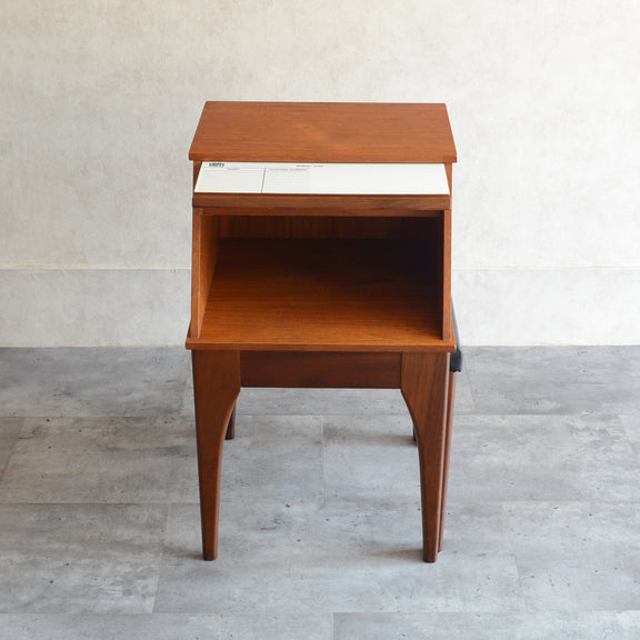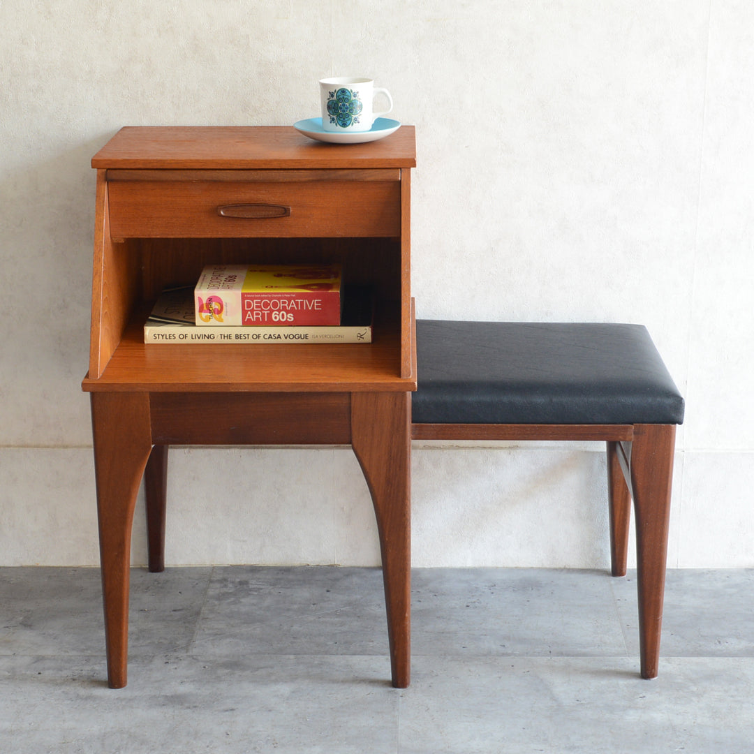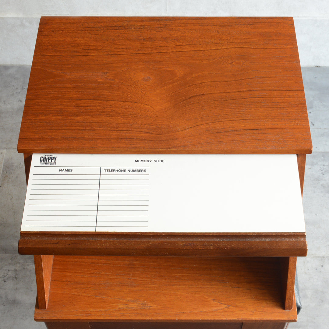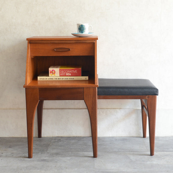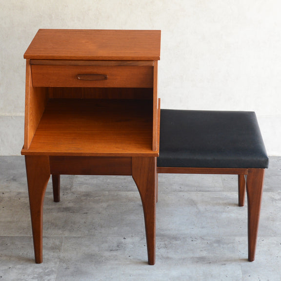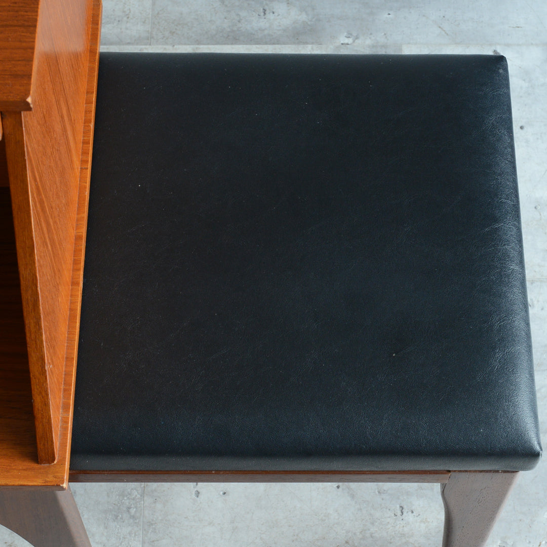 ミッドセンチュリーに流行した、天板に固定電話を置いてベンチに座りながら電話をする為のレトロな家具です。座面部分は押し込むだけで本体に収納可能です。