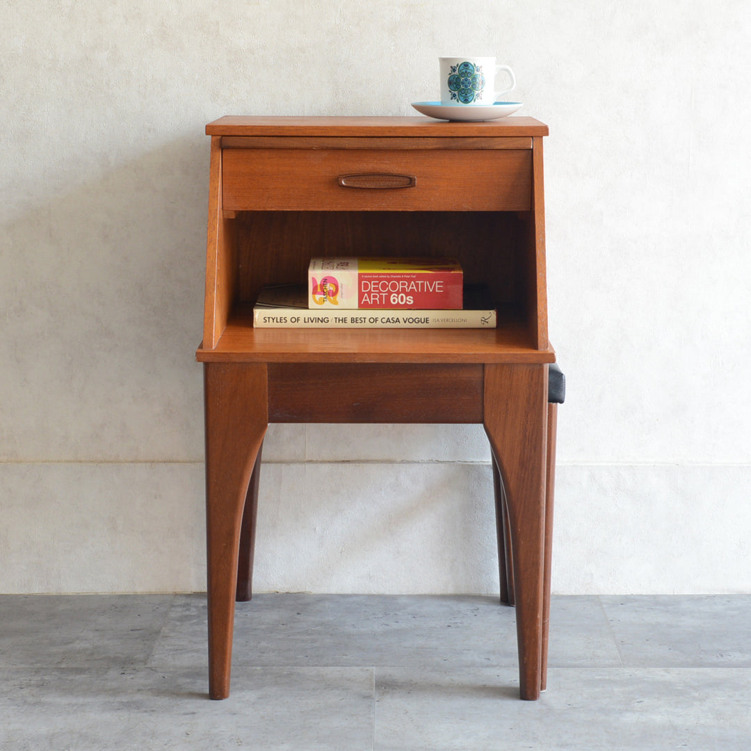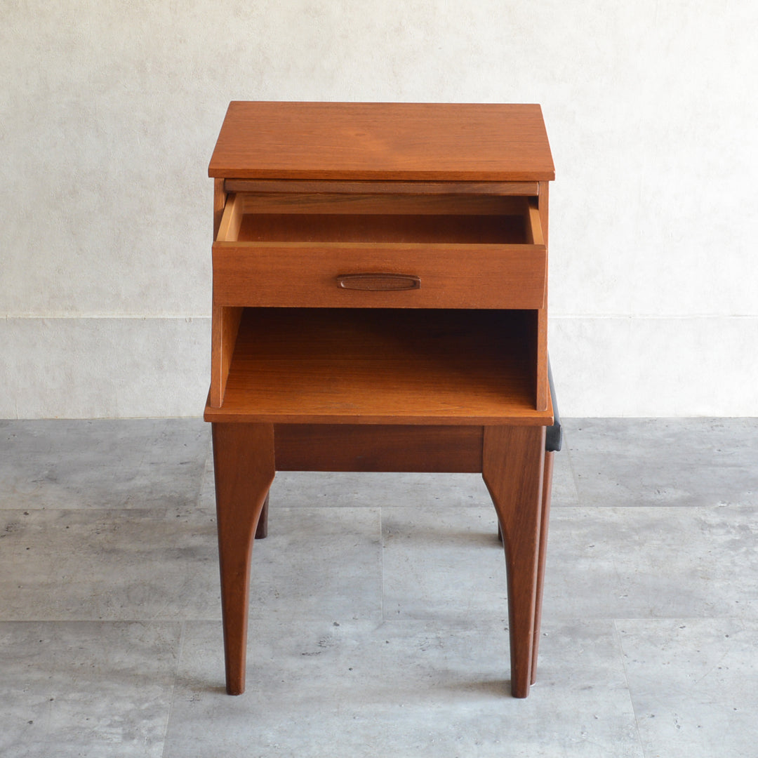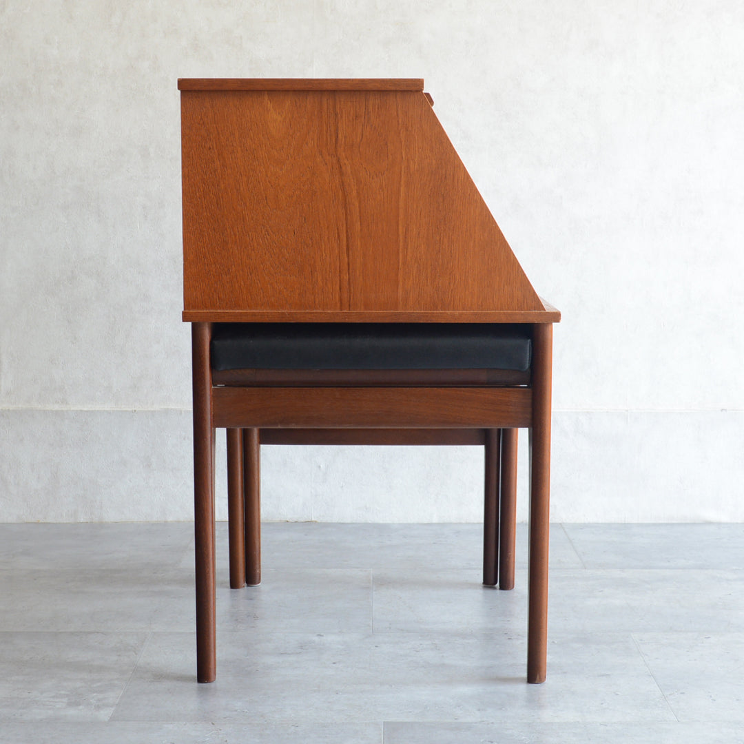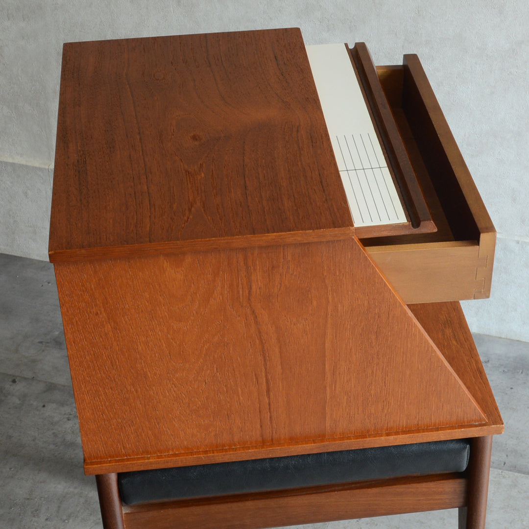 ミッドセンチュリーに流行した、天板に固定電話を置いてベンチに座りながら電話をする為のレトロな家具です。座面部分は押し込むだけで本体に収納可能です。