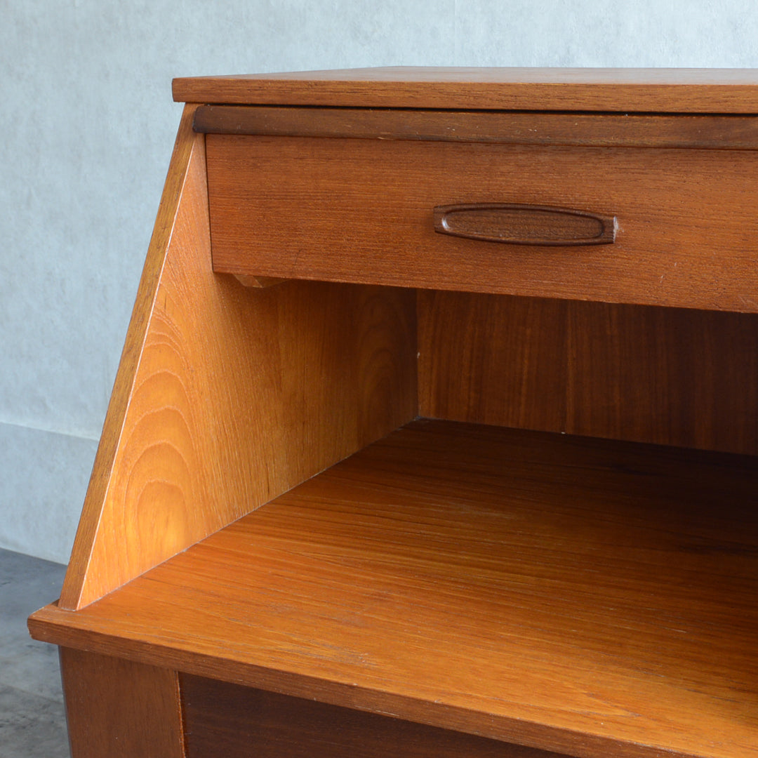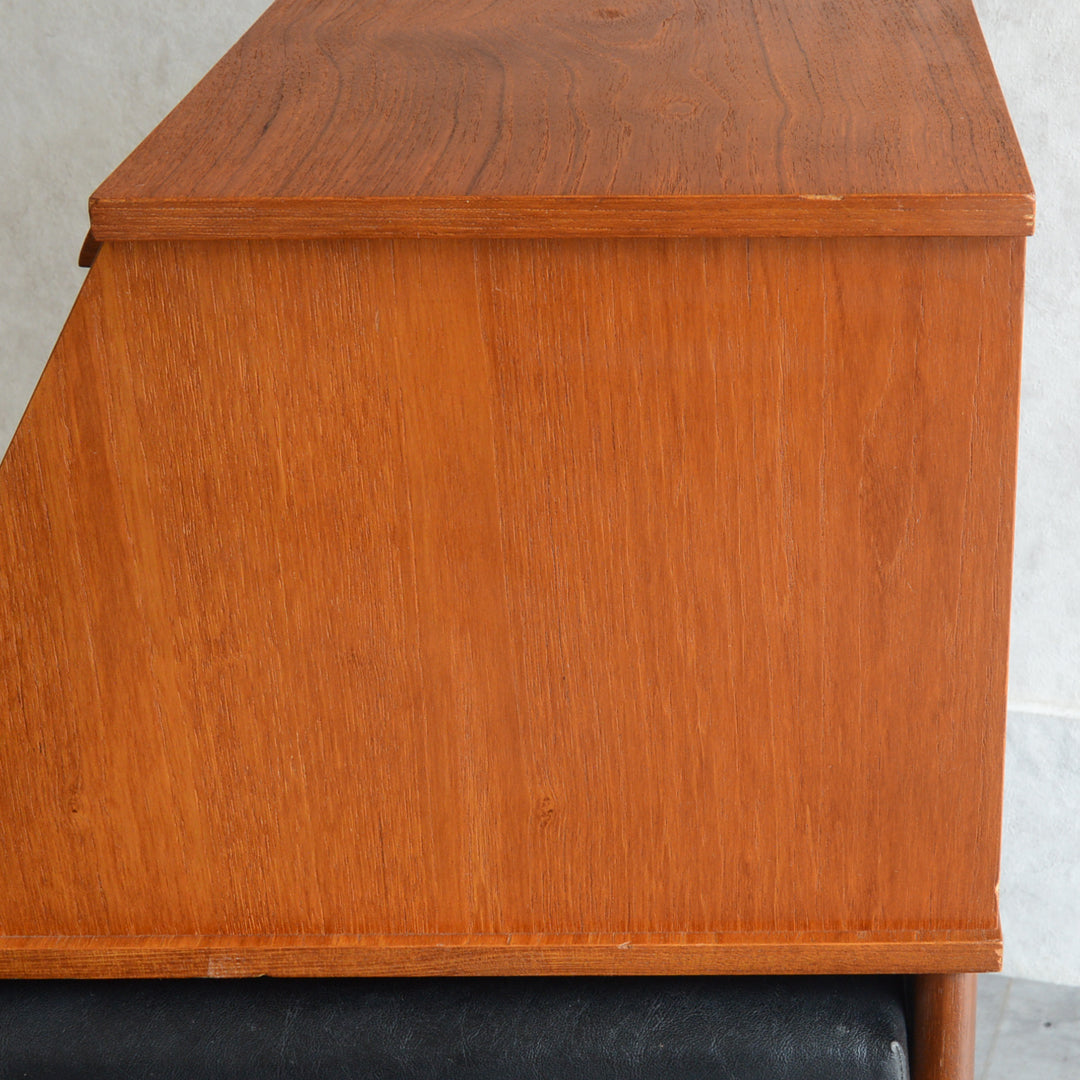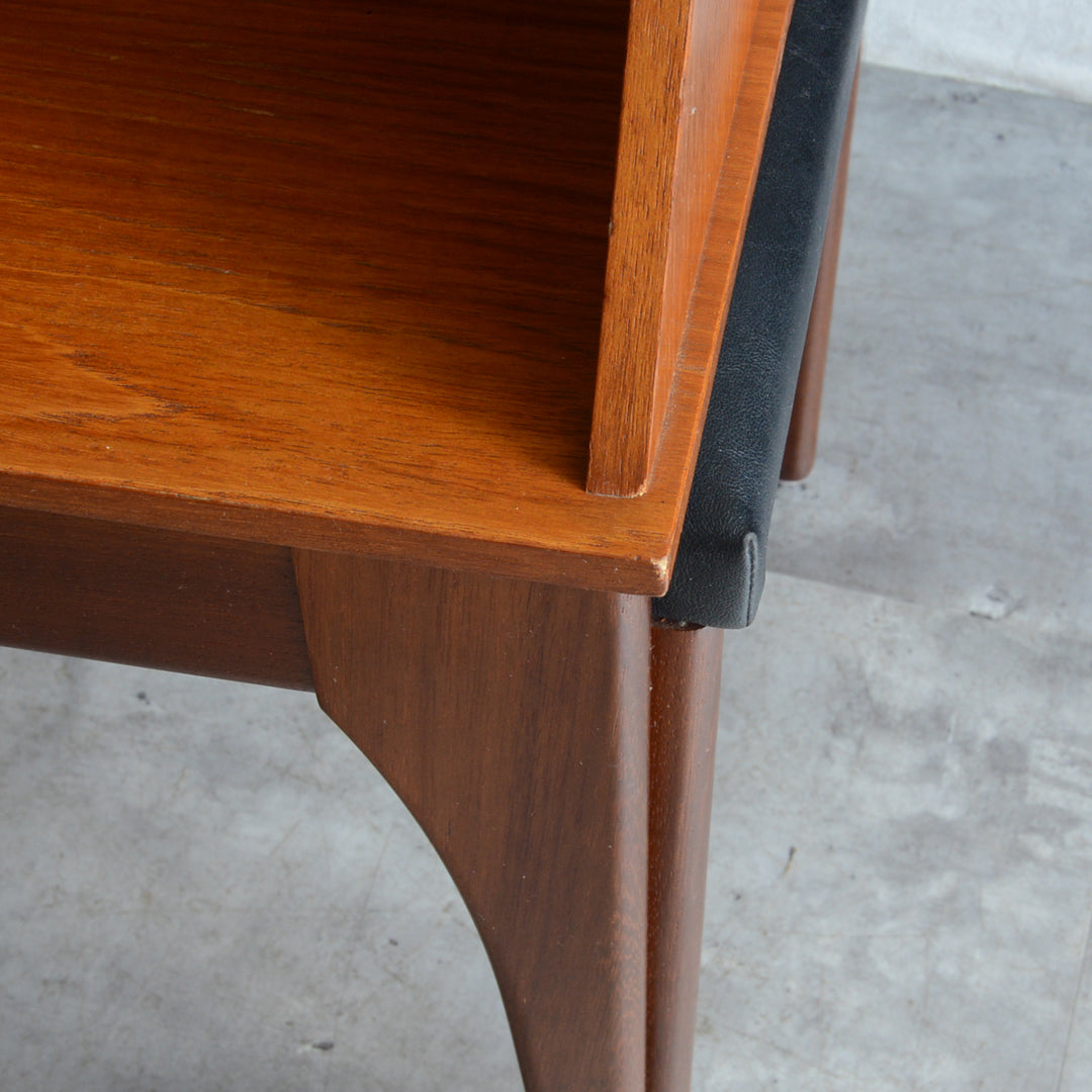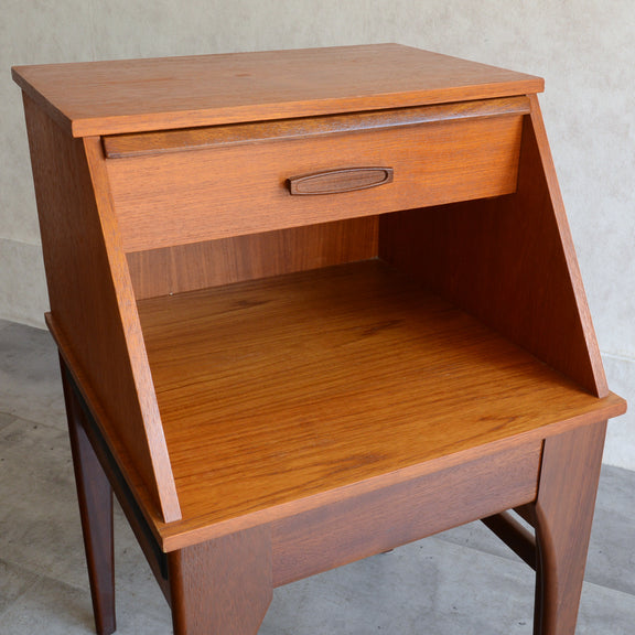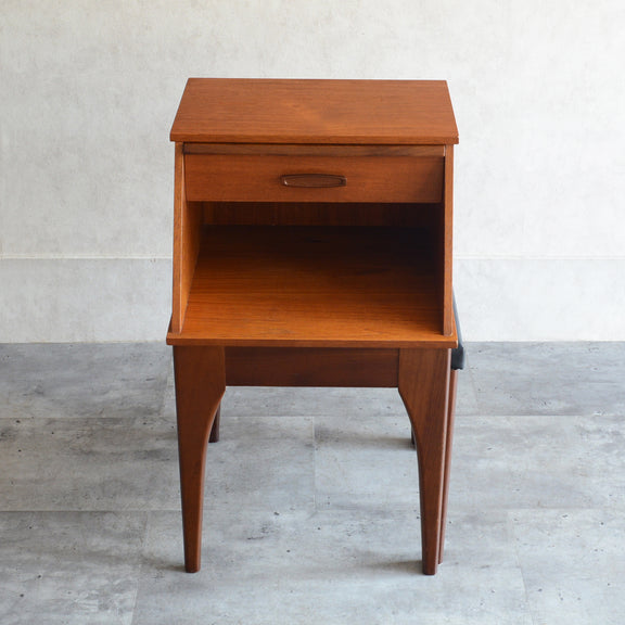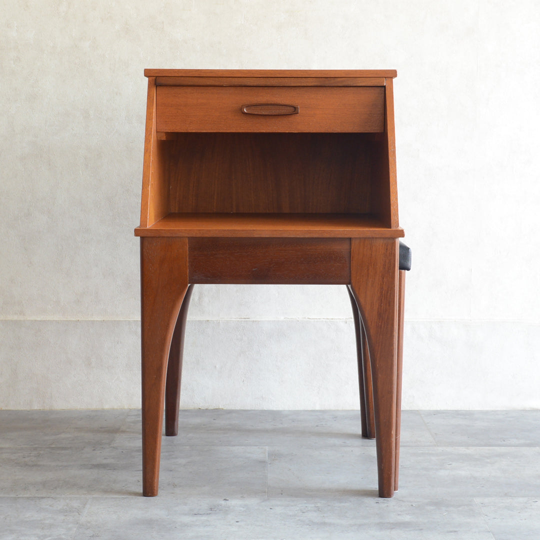 ミッドセンチュリーに流行した、天板に固定電話を置いてベンチに座りながら電話をする為のレトロな家具です。座面部分は押し込むだけで本体に収納可能です。