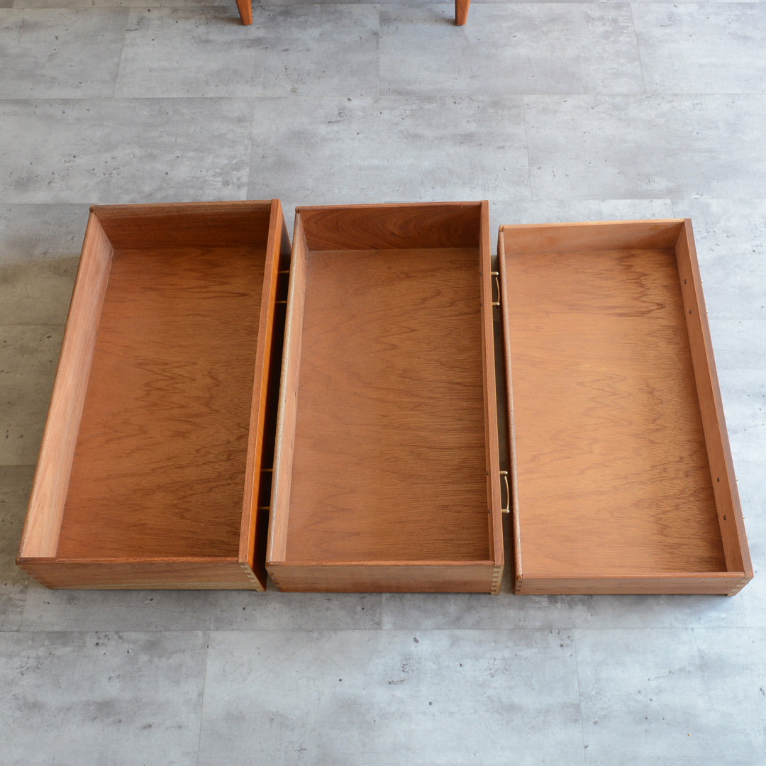 トーラ材の特徴的な縞の杢目が美しく、リビングに置きたくなる様なスタイリッシュなチェストです。