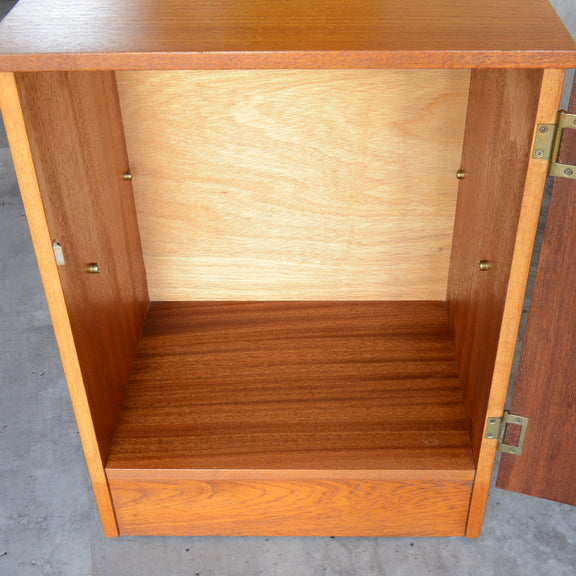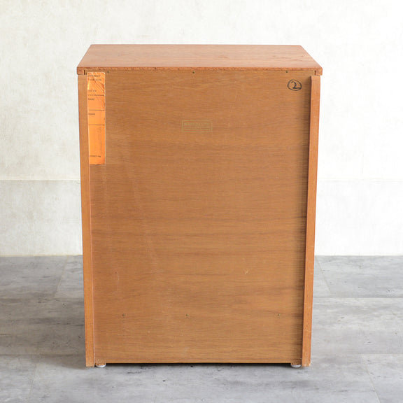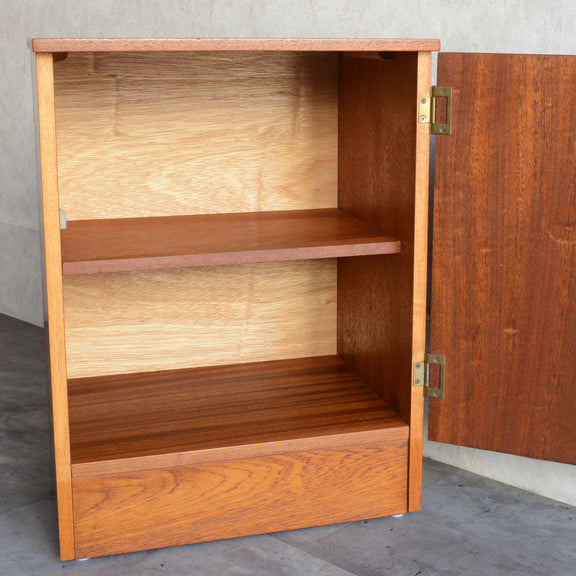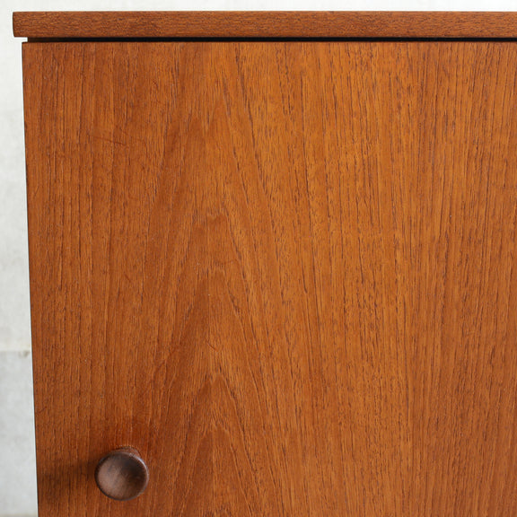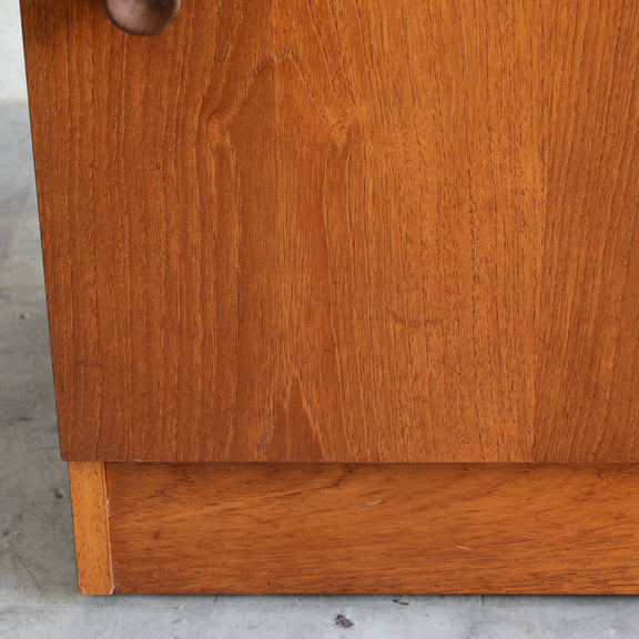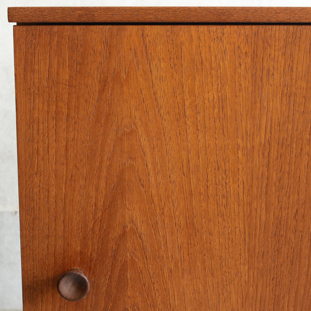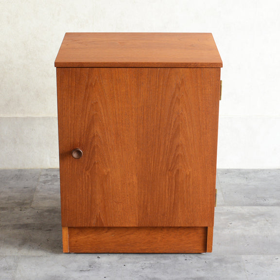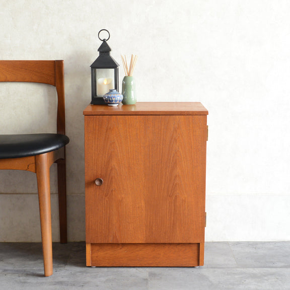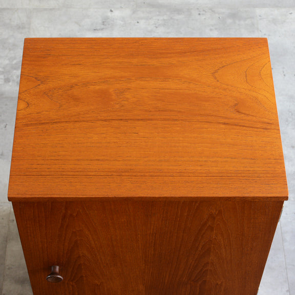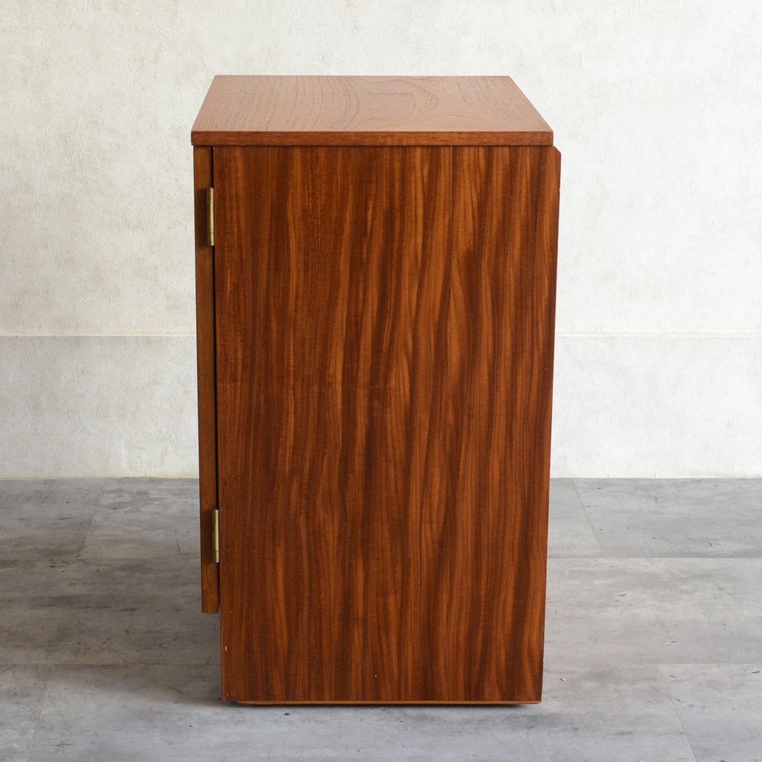 ヴィンテージチークの木目が特に美しく、シンプルなデザインながらも存在感ある佇まいのキャビネット。ナイトテーブルとしてもお勧めです。
