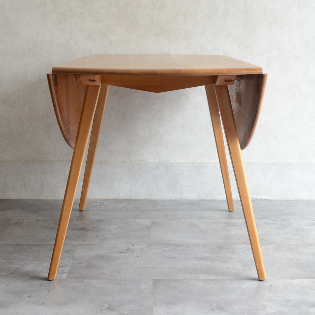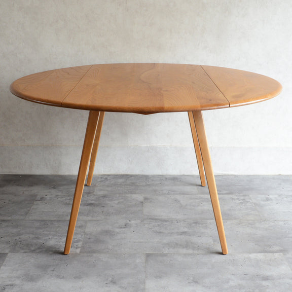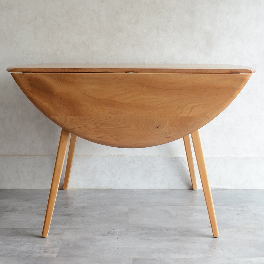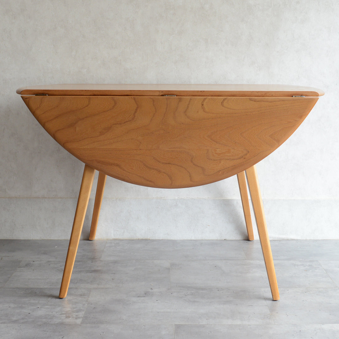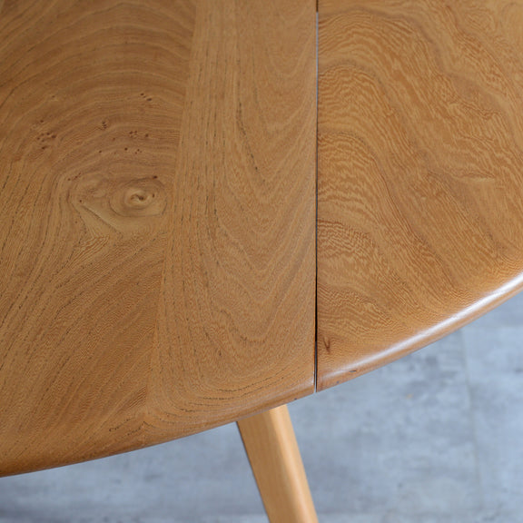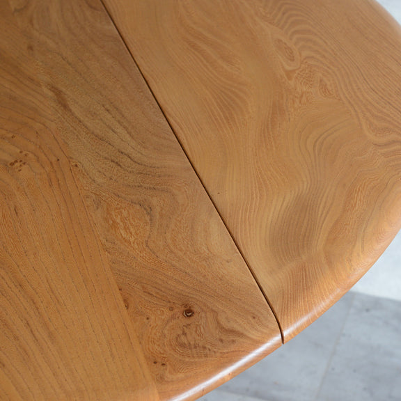 <剥離再塗装済>のエルムの天板の杢目が非常に美しい、アーコール1番人気のダイニングテーブル