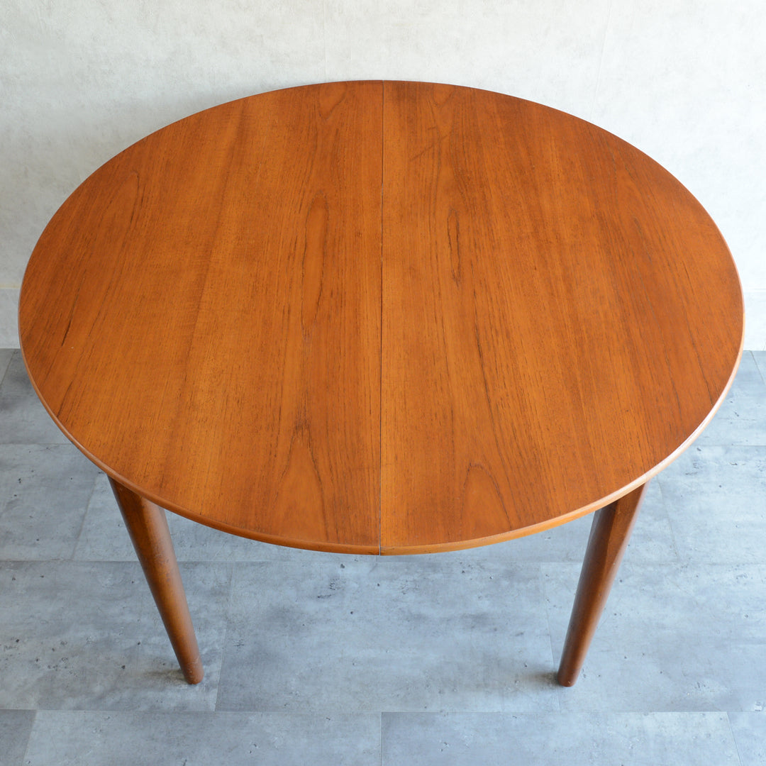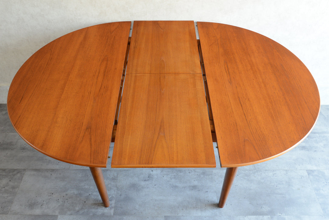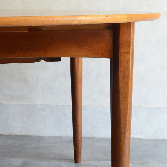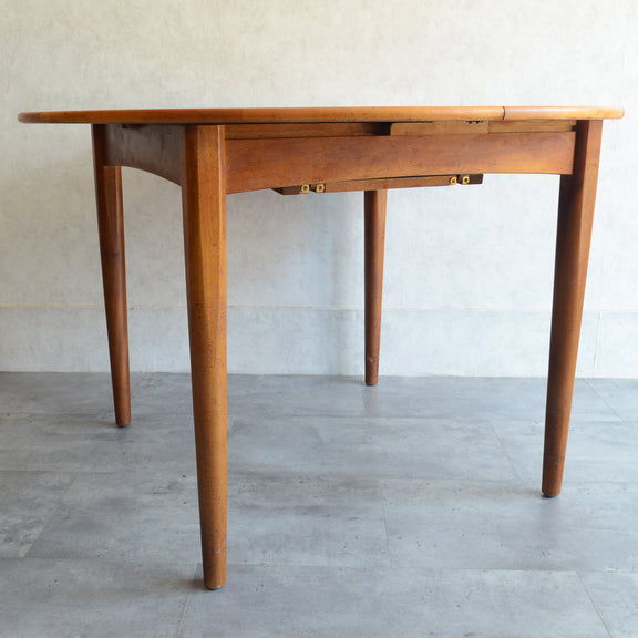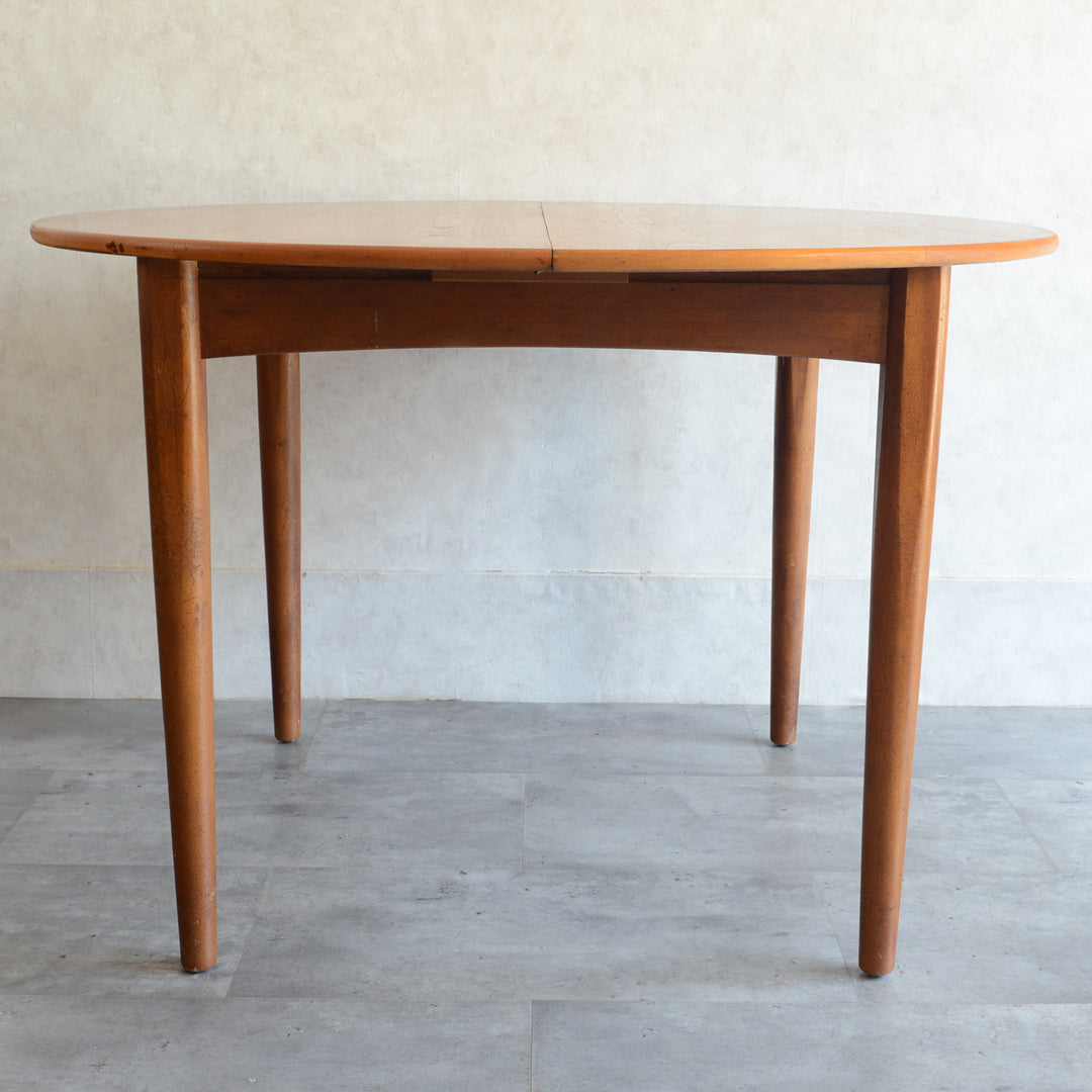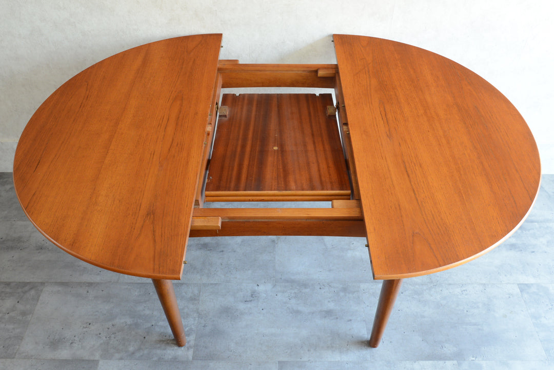 G-PLAN(ジープラン)等と同じ様式で、天板の両端を引き中央に収納されている天板を引き出すと、幅が108cmから145.5cmとなる伸長式ダイニングテーブル。