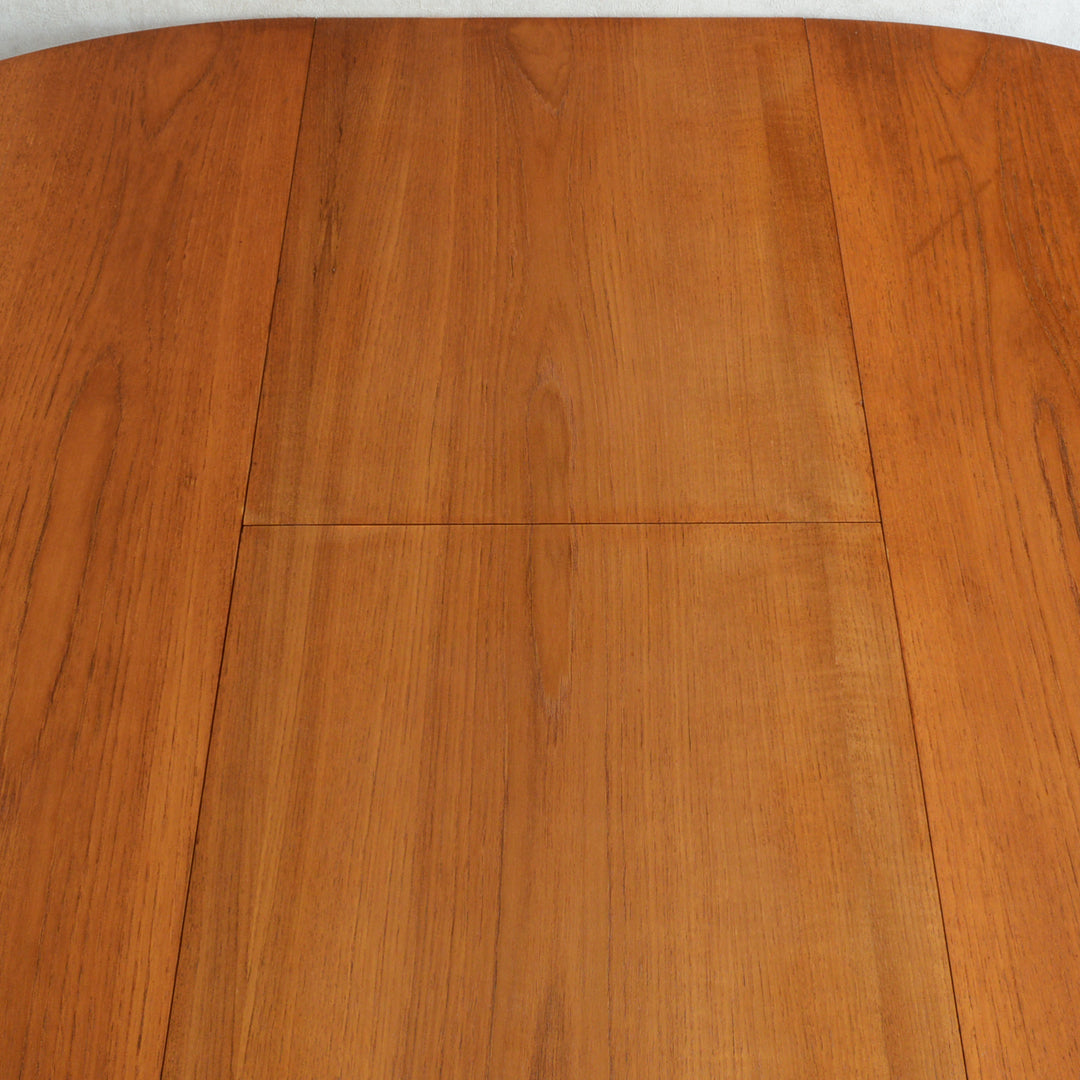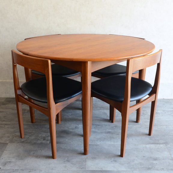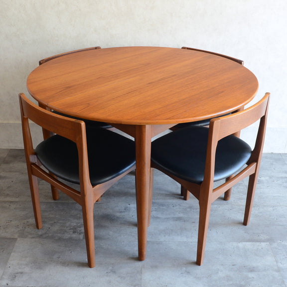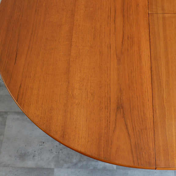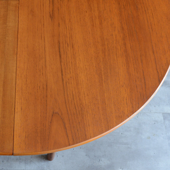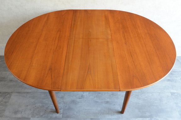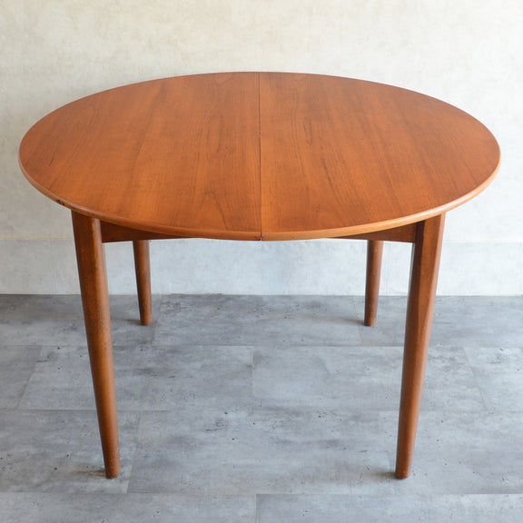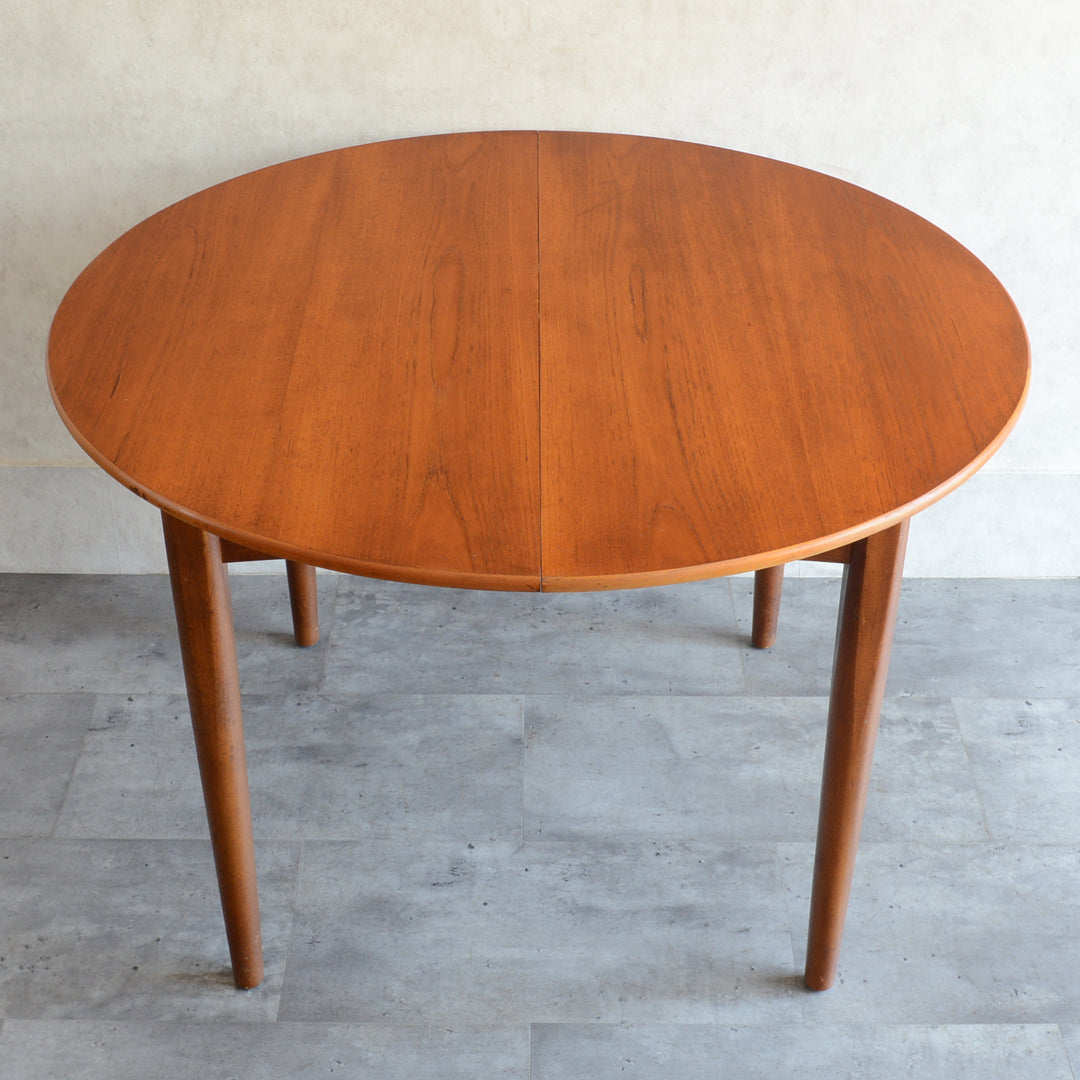 G-PLAN(ジープラン)等と同じ様式で、天板の両端を引き中央に収納されている天板を引き出すと、幅が108cmから145.5cmとなる伸長式ダイニングテーブル。