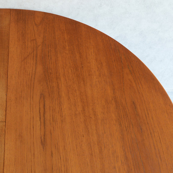 ミッドセンチュリーのラウンドテーブルのデザインは各ブランドで少しずつテイストが異なります。Jentiqueは天板縁に施されたアールやチーク材の脚部のデザインが絶妙なバランスを保ち、柔らかくシンプルな印象を与えます。