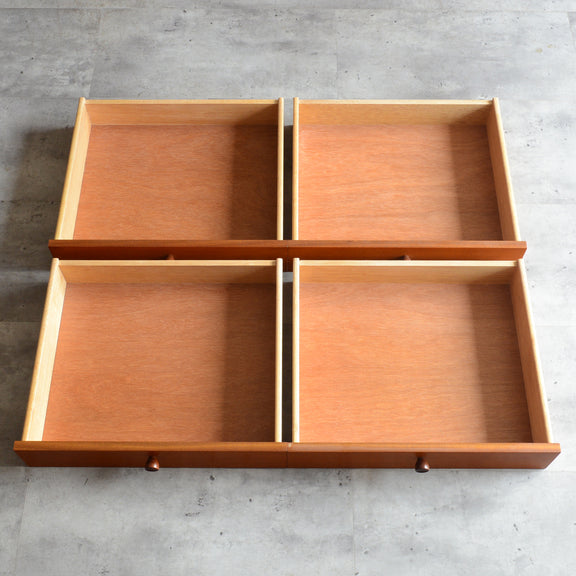 Nathanの代名詞ともいえる十字扉に、チークを彫り出した丁寧な造りの把手の抽斗が4つ。