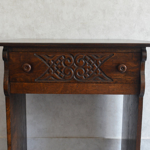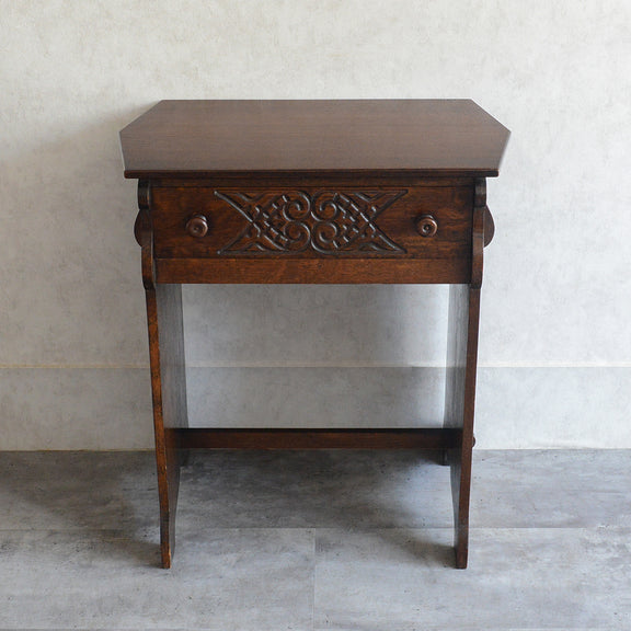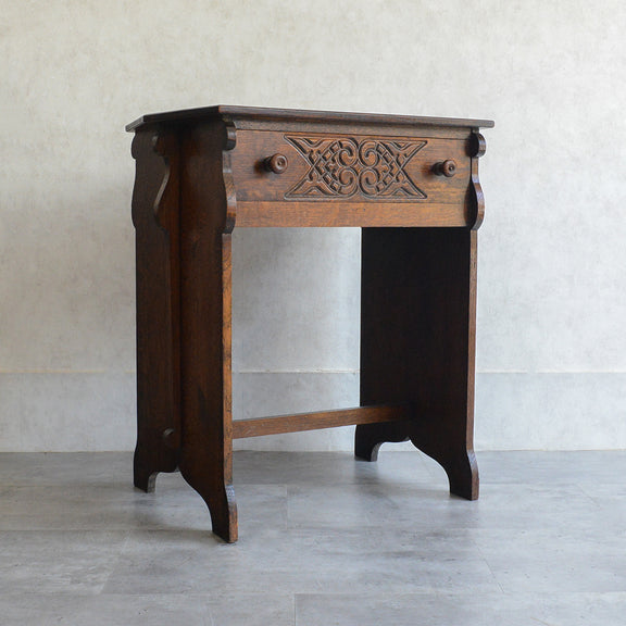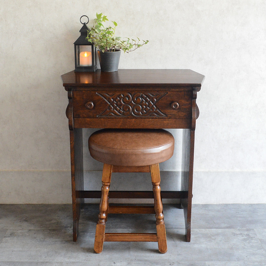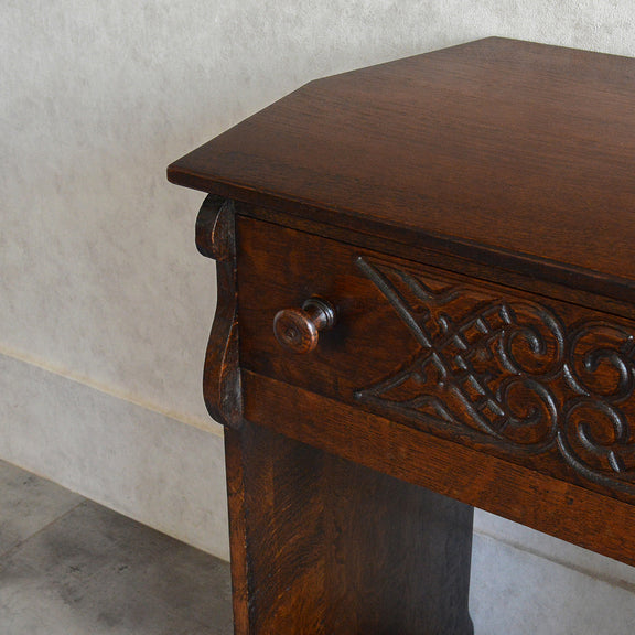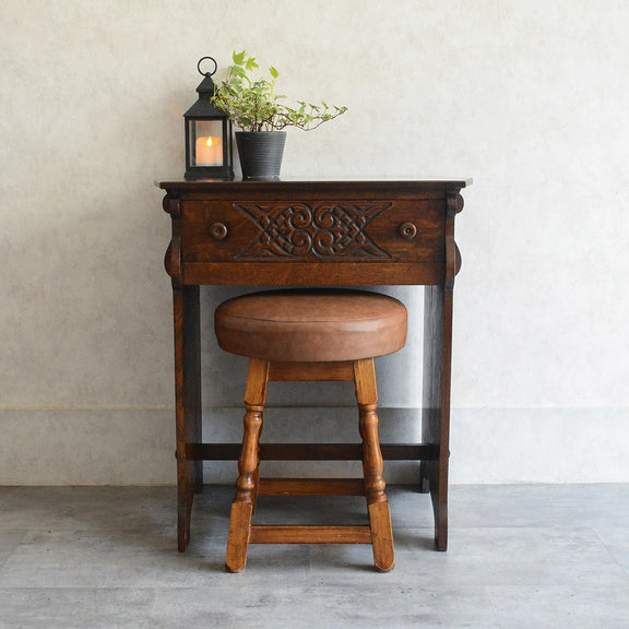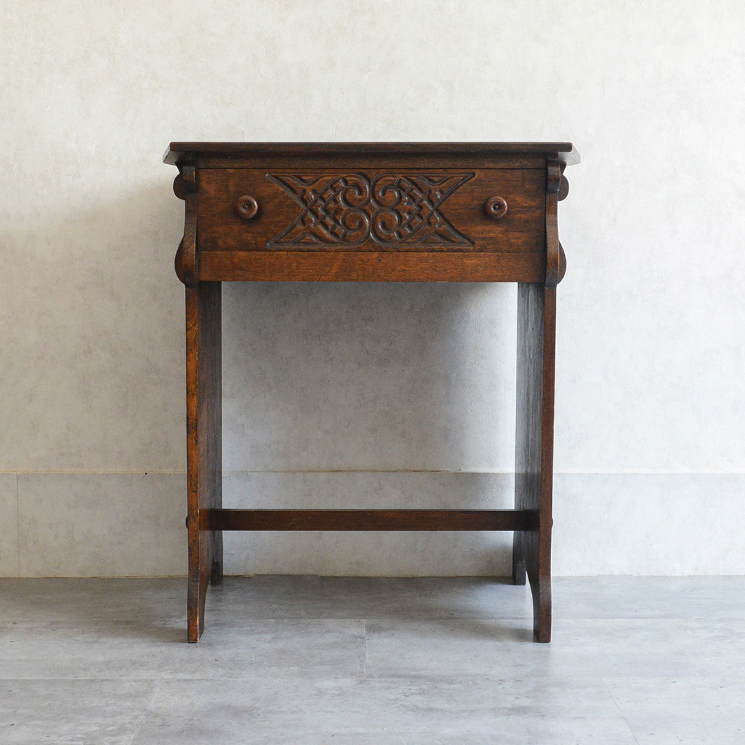 抽斗を備えたコンパクトなデスクとしても活用できそうなサイズ感のコンソールテーブル。コンソールテーブルは窓下や壁際に付ける飾り棚で、アンティーク家具に多く見受けられます。