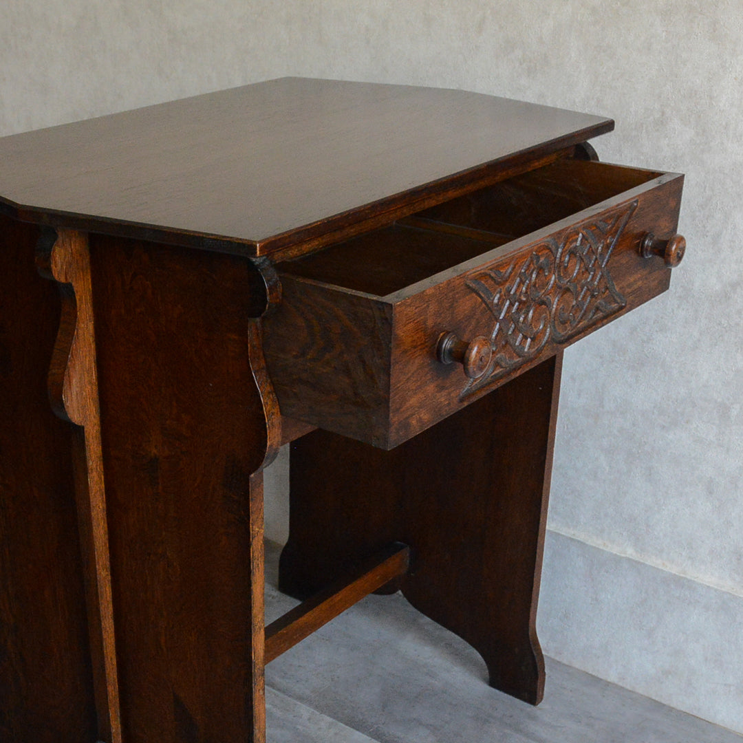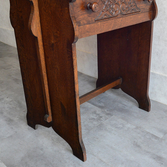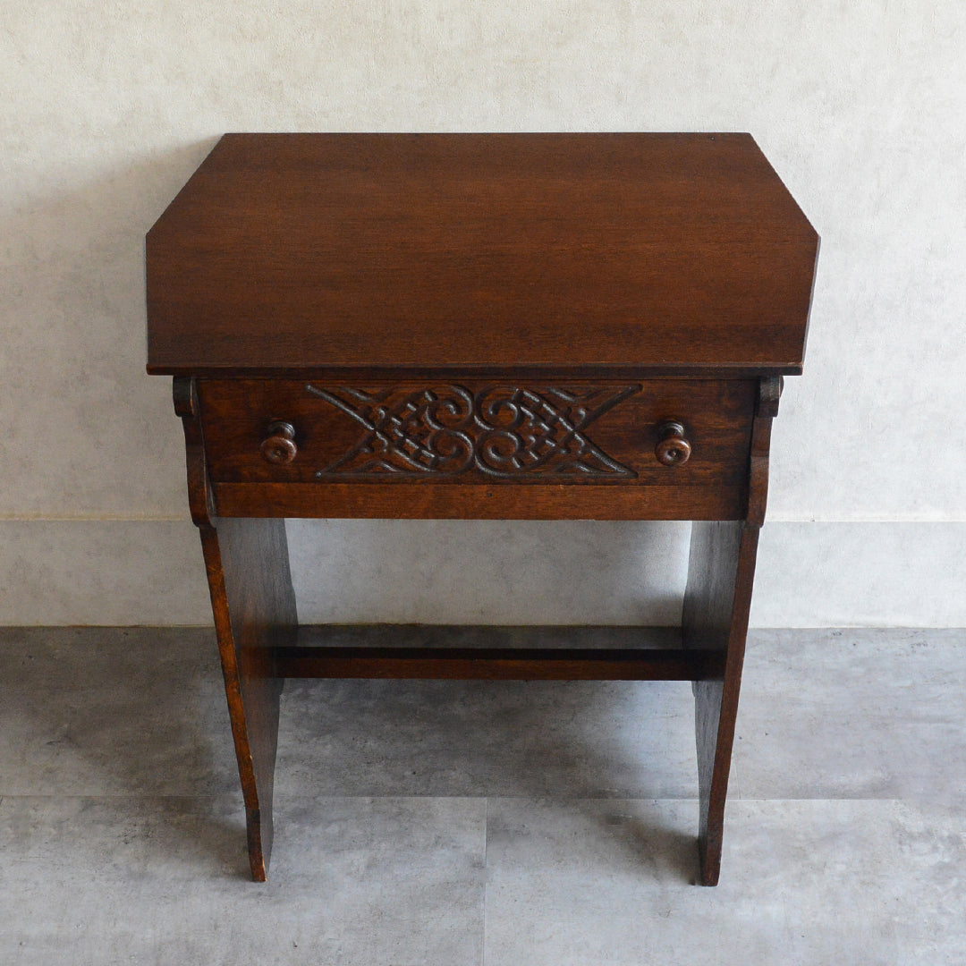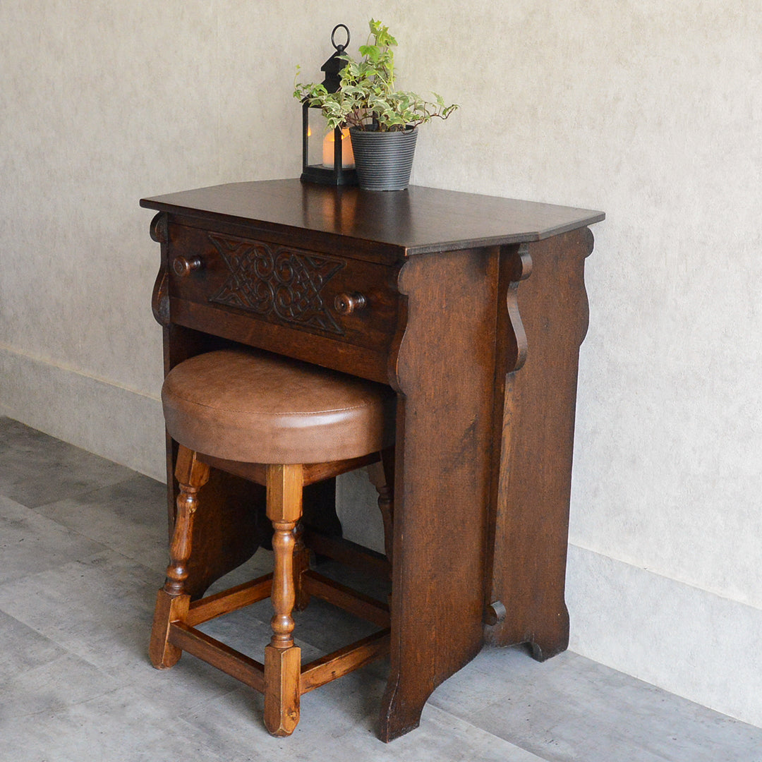 抽斗を備えたコンパクトなデスクとしても活用できそうなサイズ感のコンソールテーブル。コンソールテーブルは窓下や壁際に付ける飾り棚で、アンティーク家具に多く見受けられます。