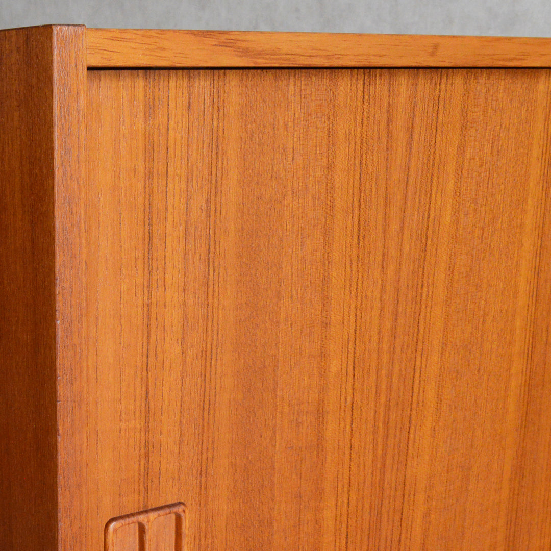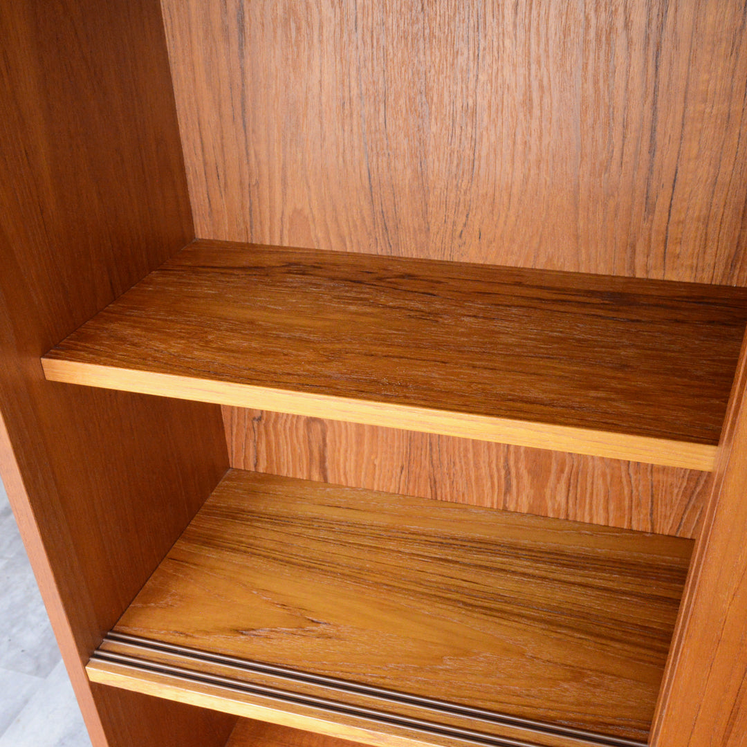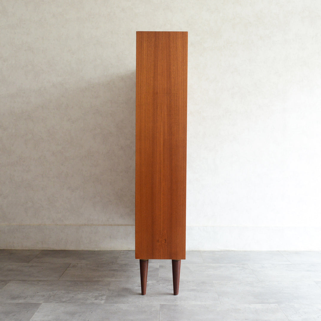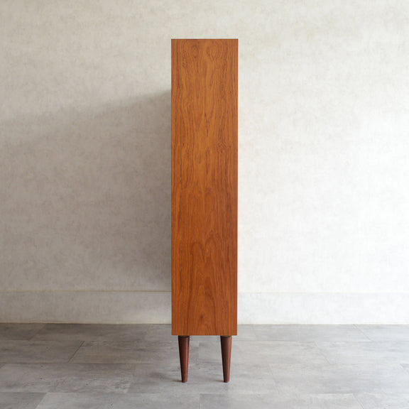 ヴィンテージチークの深い色合いの木目が美しい3段シェルフ。左下のグリーンの書類仕切り板がデザインのアクセントとなっています。(A4ファイル収納可能)
