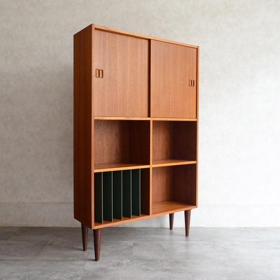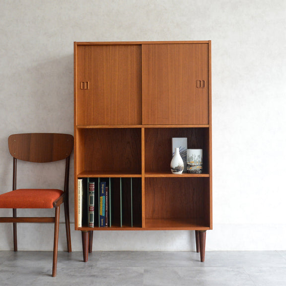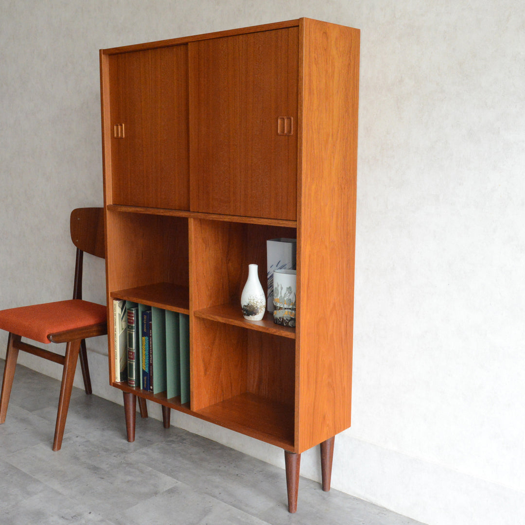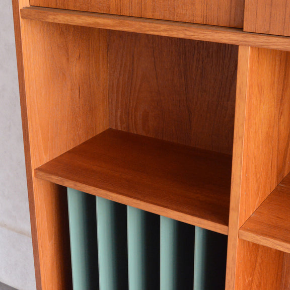 上段の木製扉部分は横方向にスライドで開くタイプなので、奥行がコンパクトなスぺースにも設置可能です。