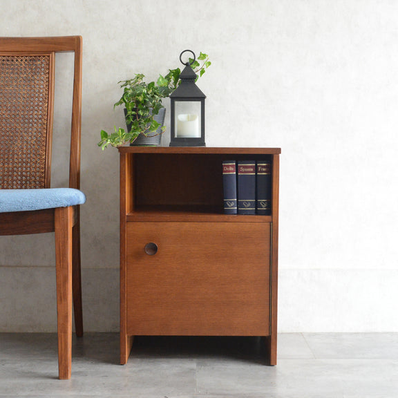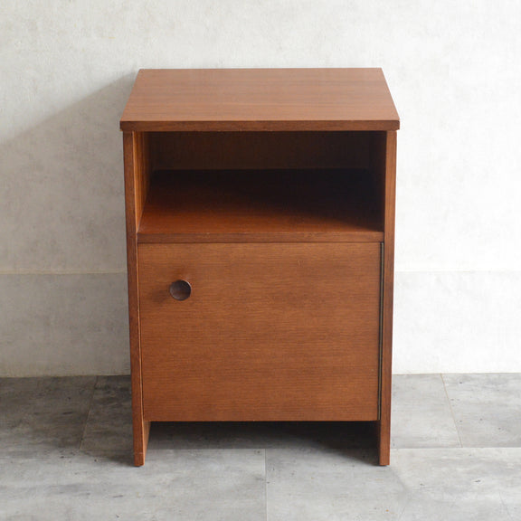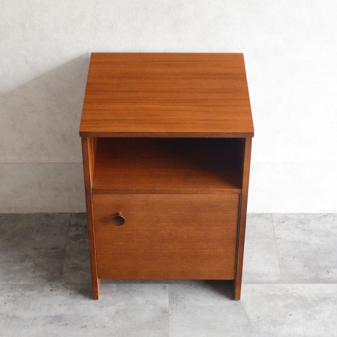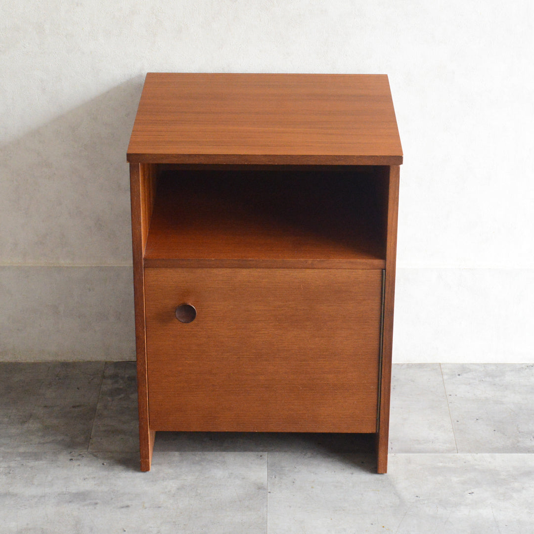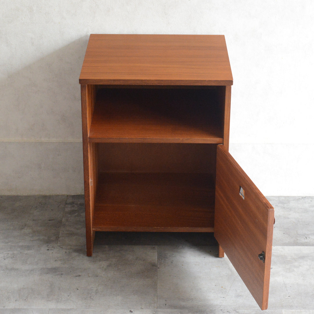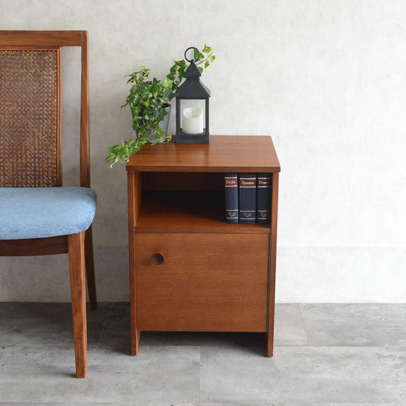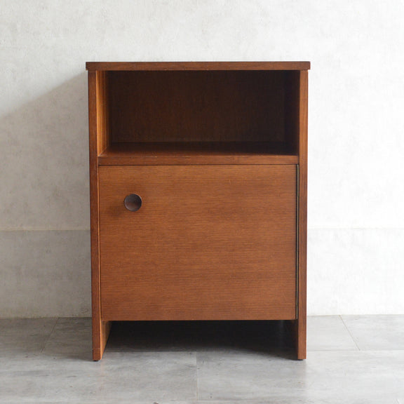 ヴィンテージチークの木目が美しく、シンプルなデザインながらも存在感ある佇まいのキャビネット。