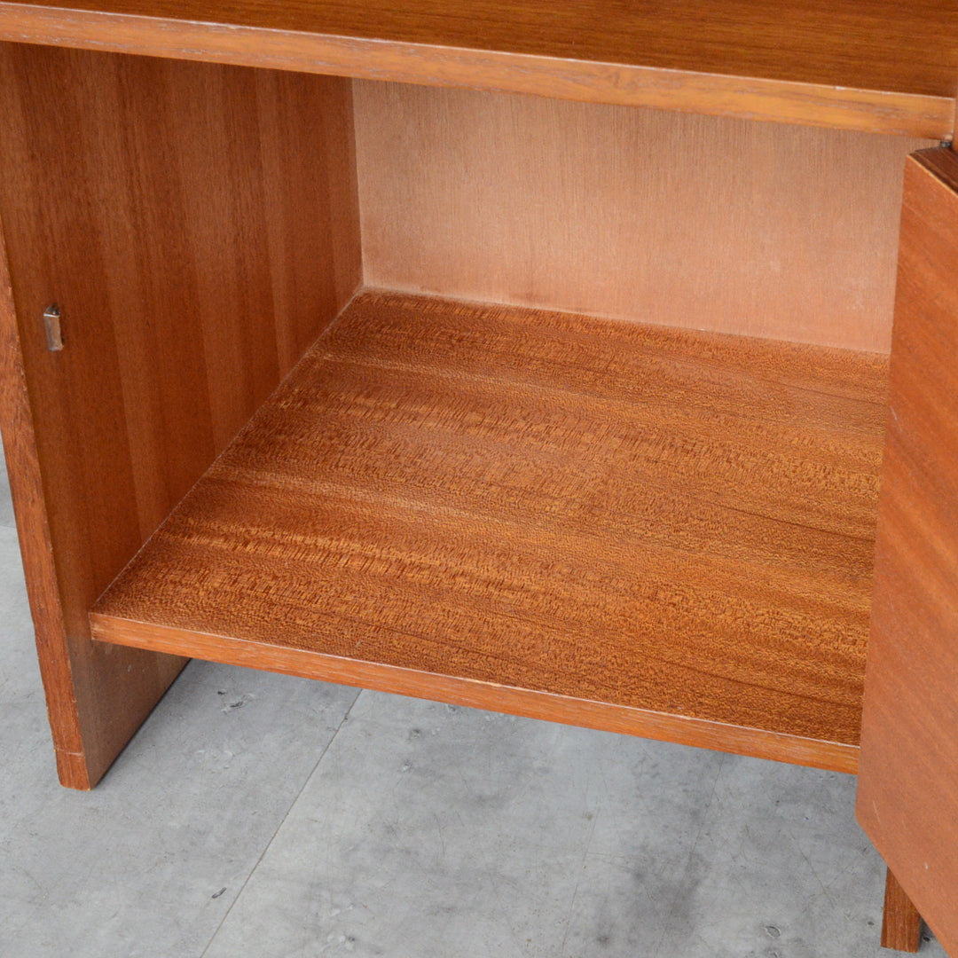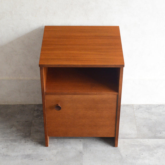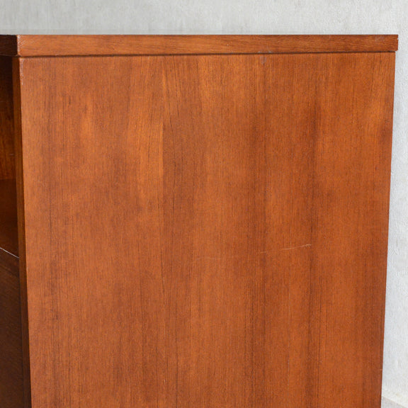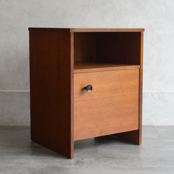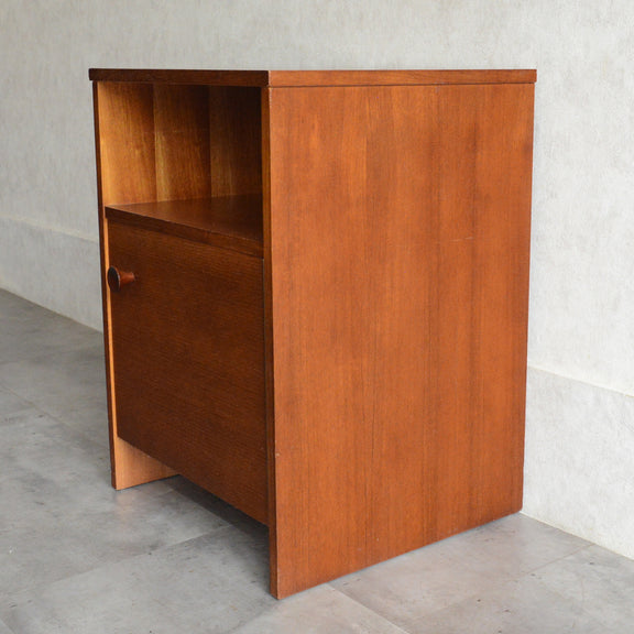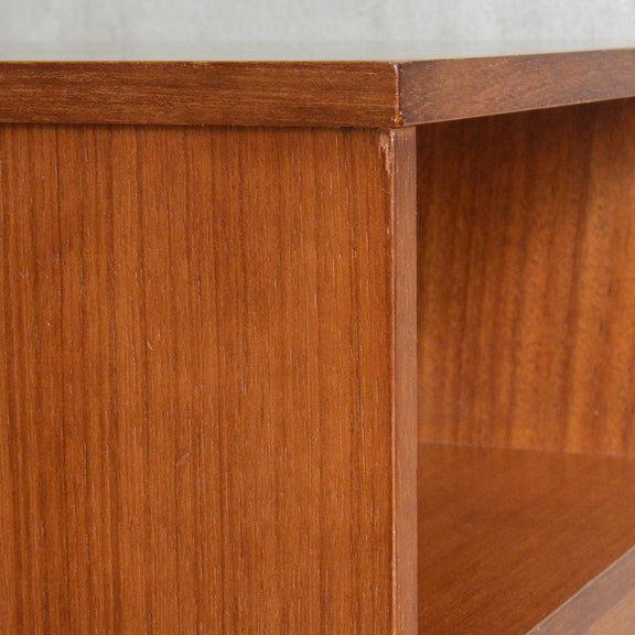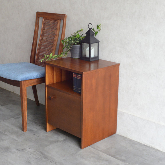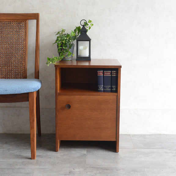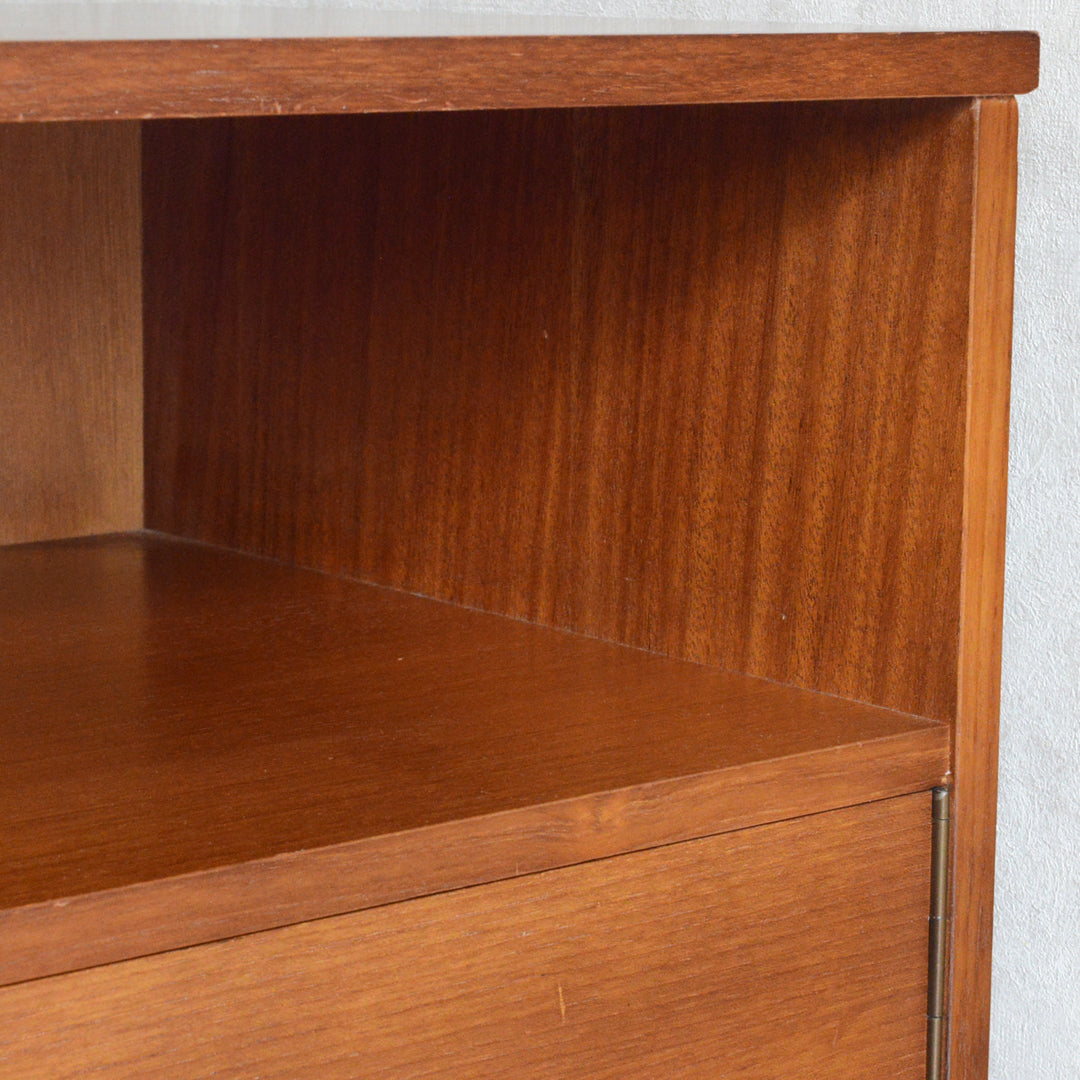 ヴィンテージチークの木目が美しく、シンプルなデザインながらも存在感ある佇まいのキャビネット。