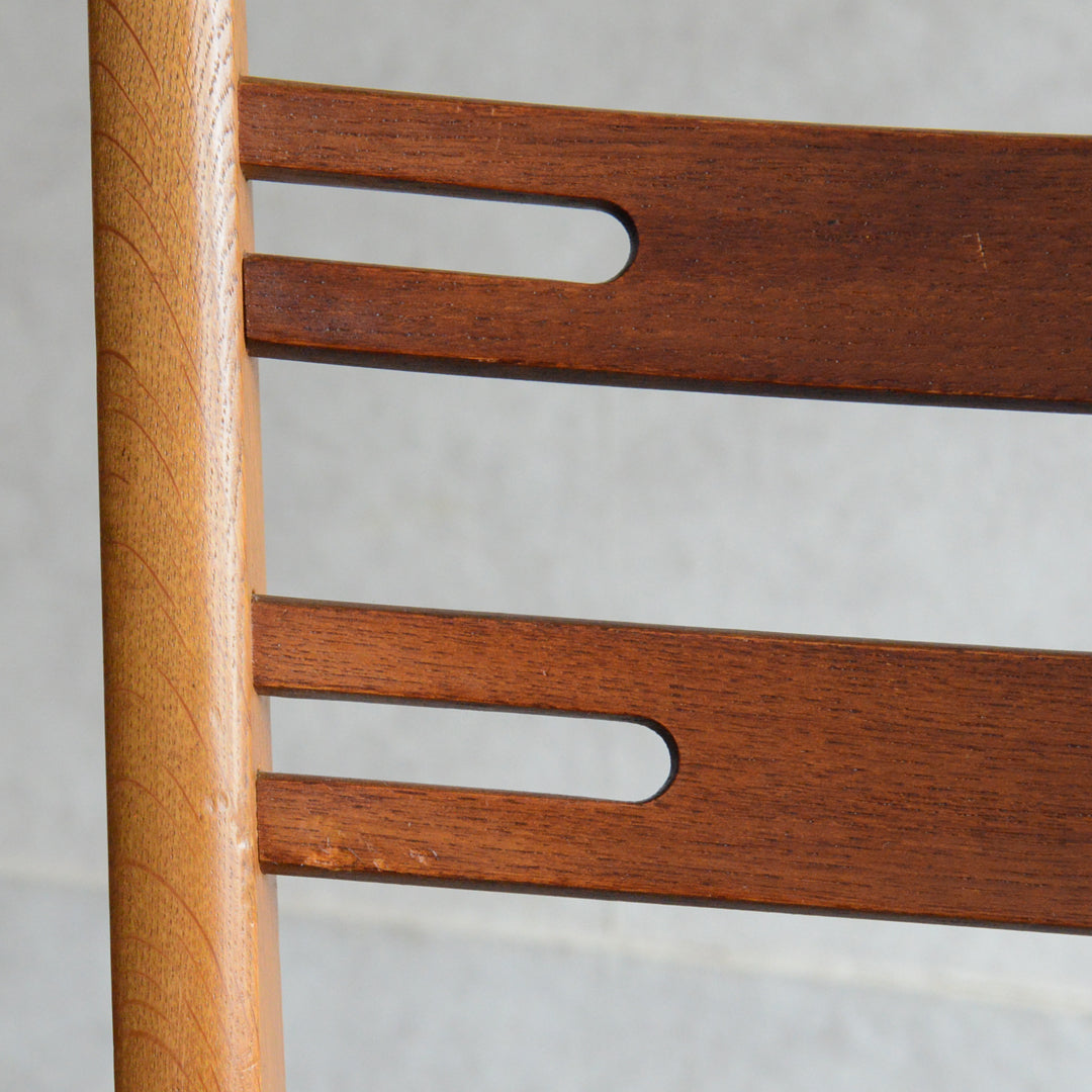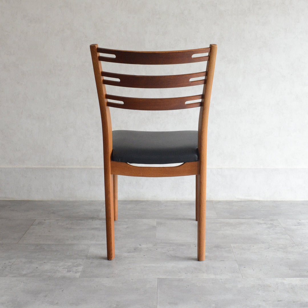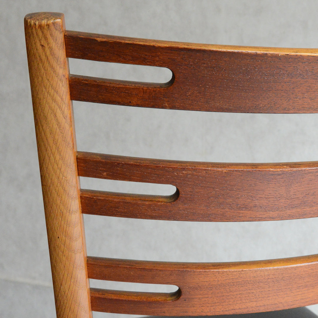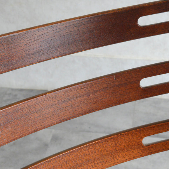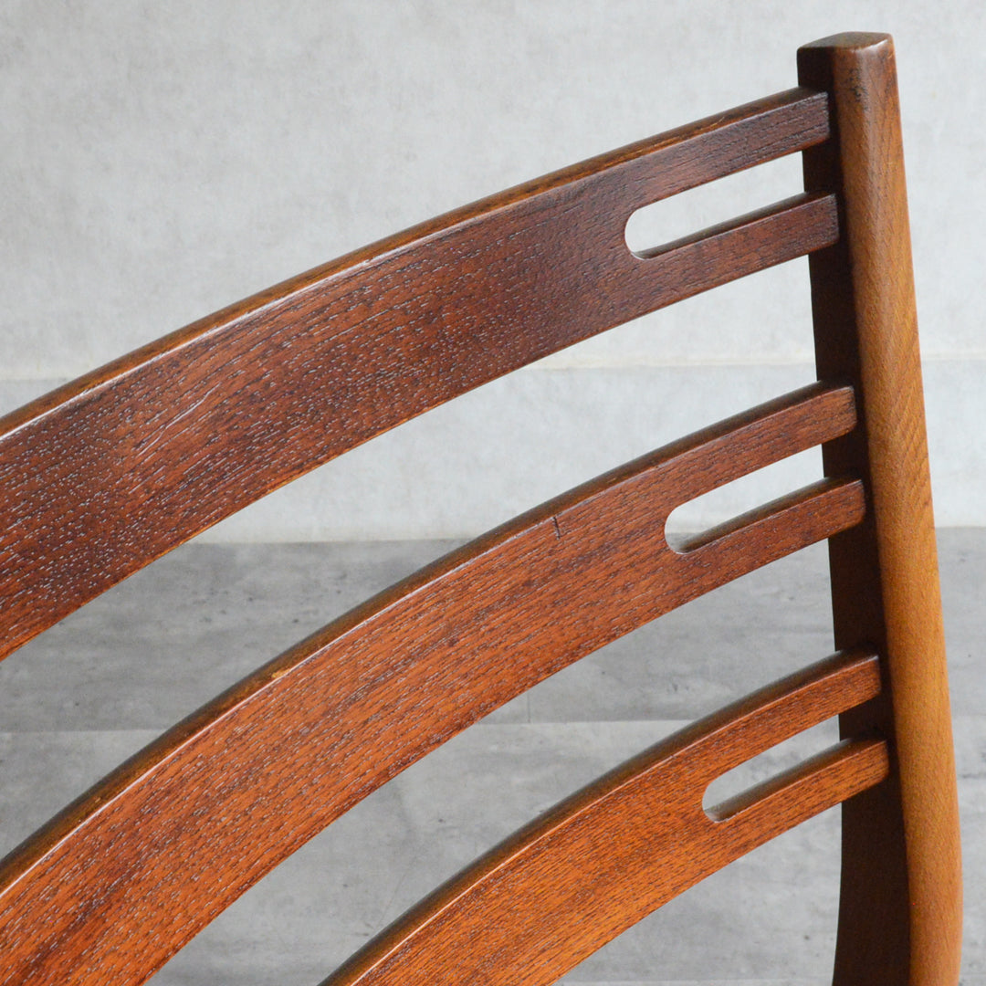 こちらのチェアもチークとオークを組み合わせた背もたれが魅力的で、ゆったりした掛心地になる様にカーブを描いています。