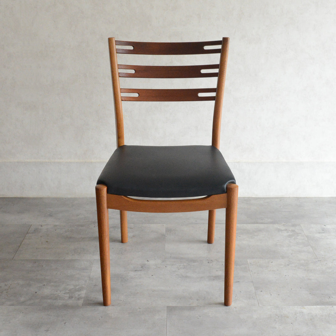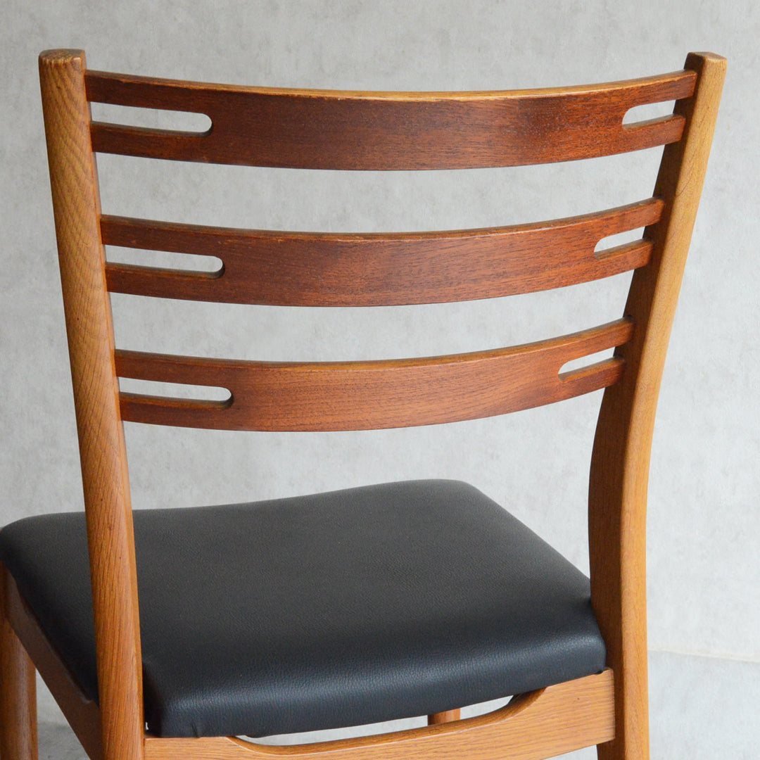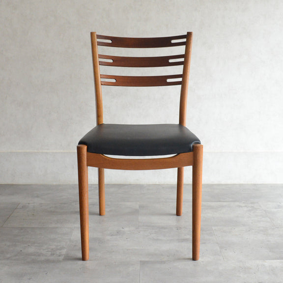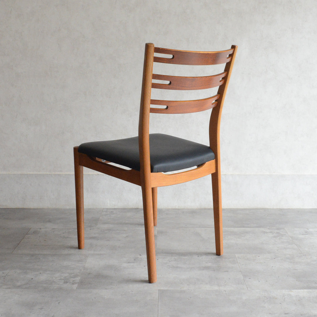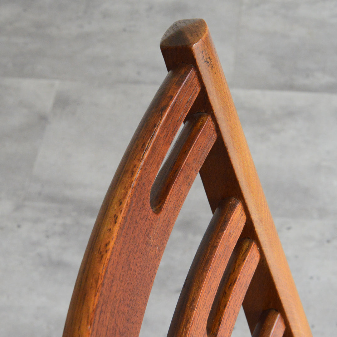こちらのチェアもチークとオークを組み合わせた背もたれが魅力的で、ゆったりした掛心地になる様にカーブを描いています。